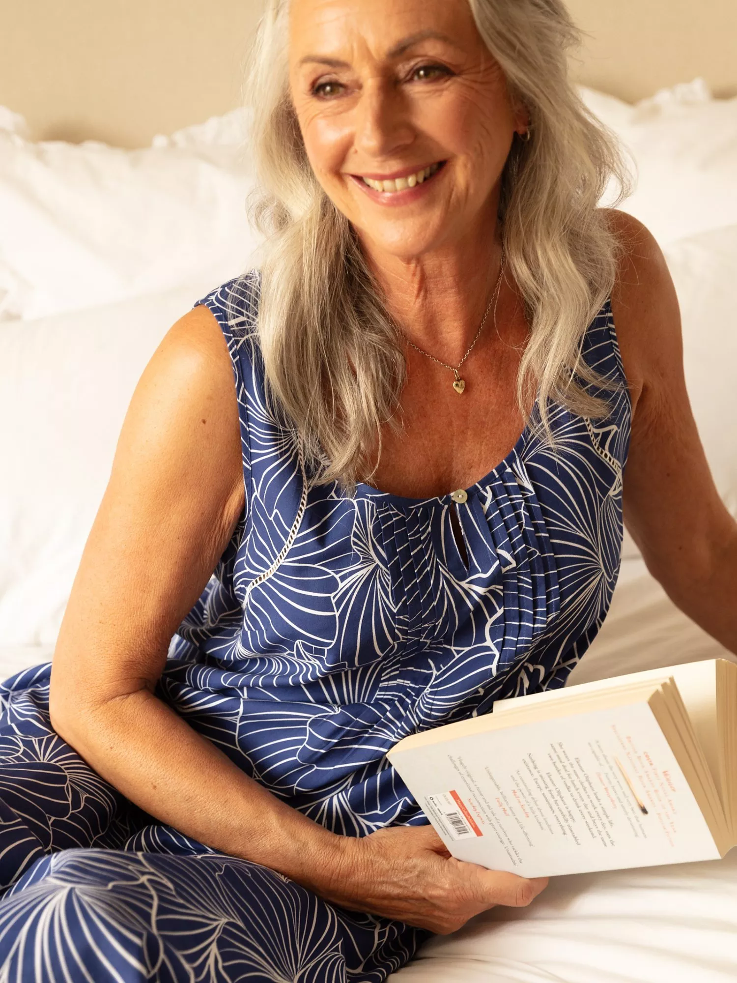 Indulge in the ultimate comfort and ease with this long nightdress. Made from super-soft 60% cotton and 40% modal, this piece features delicate lace inserts and a flattering silhouette. The natural shell buttons, keyhole front, and rouleau button loop add an elegant touch to your bedtime routine. The nightdress is lightweight and breathable, offering moisture-wicking properties for a cool night's sleep. It's a classic choice with a glamorous edge, promising coverage and a restful night of sleep.
