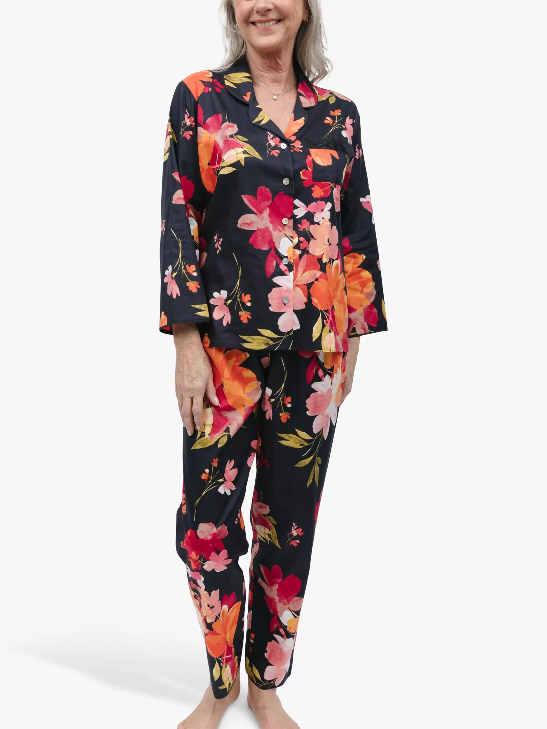 Nora Rose by CyberjammiesWinnie Floral Print Pyjamas, Black/Multi