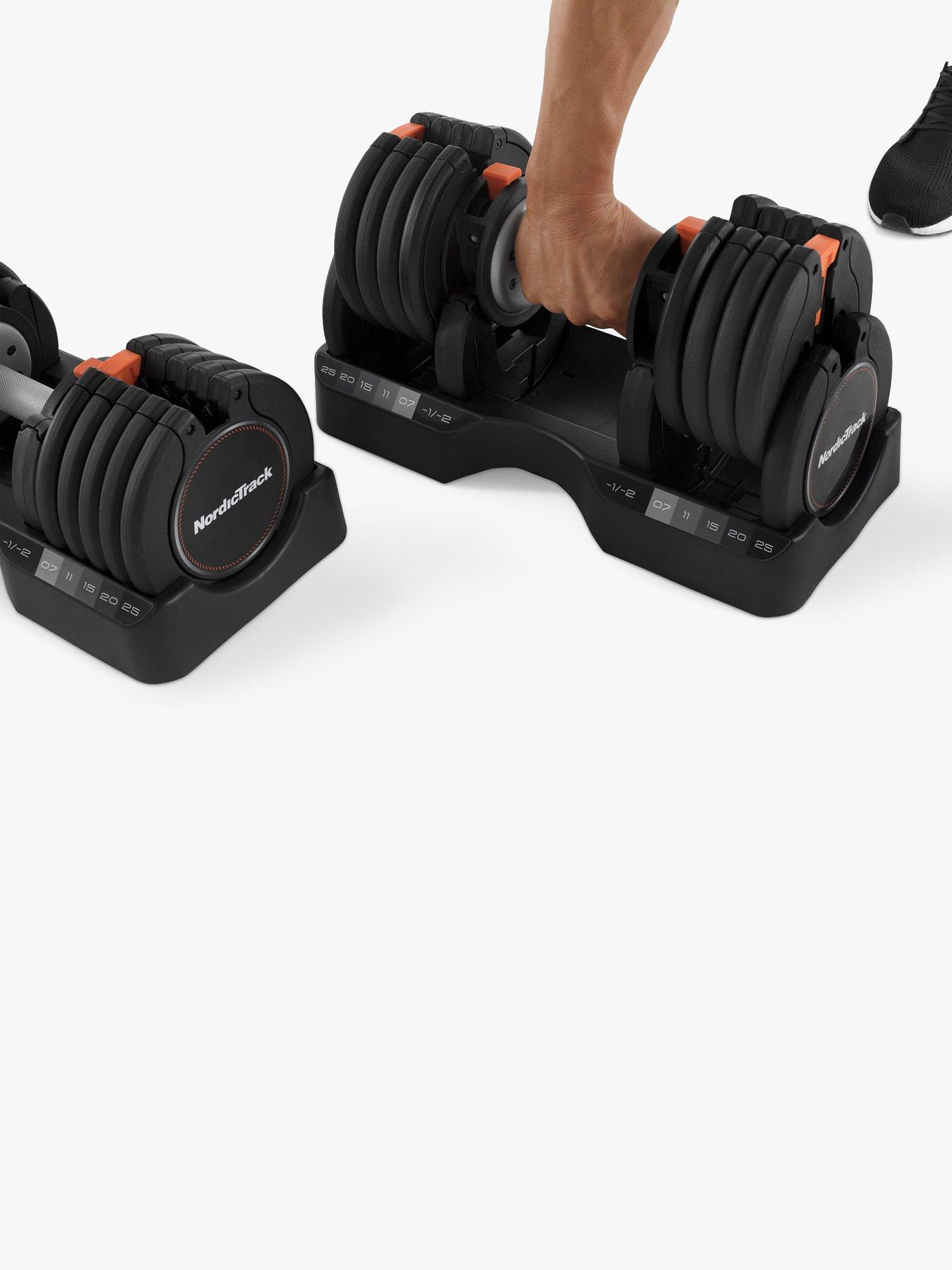 Constructed from durable steel, the ProForm 25Kg Select-A-Weight Dumbbell Pair are five dumbbells in one. Target nearly every muscle group, from lower body to upper body, with the weight of your choice.