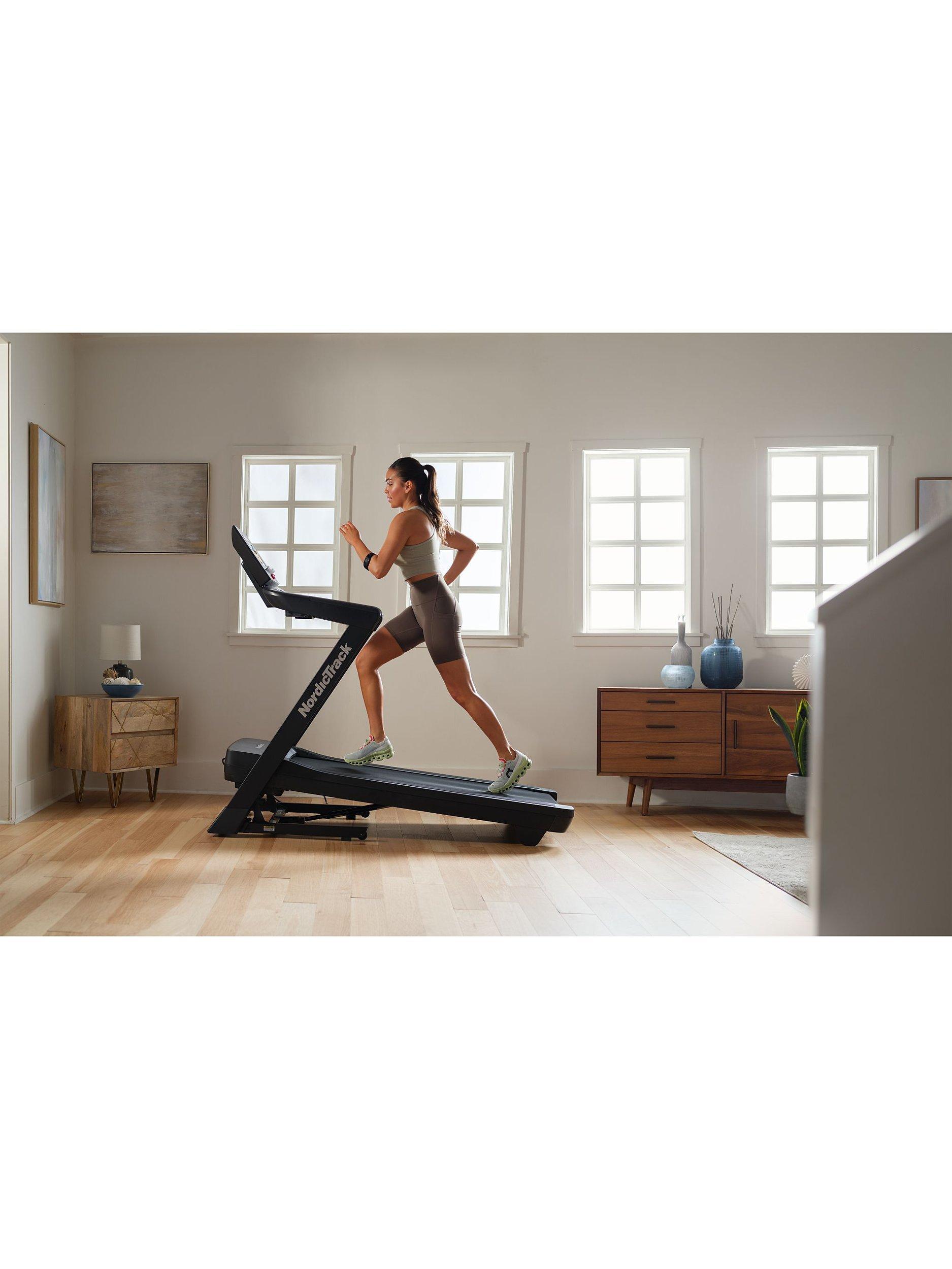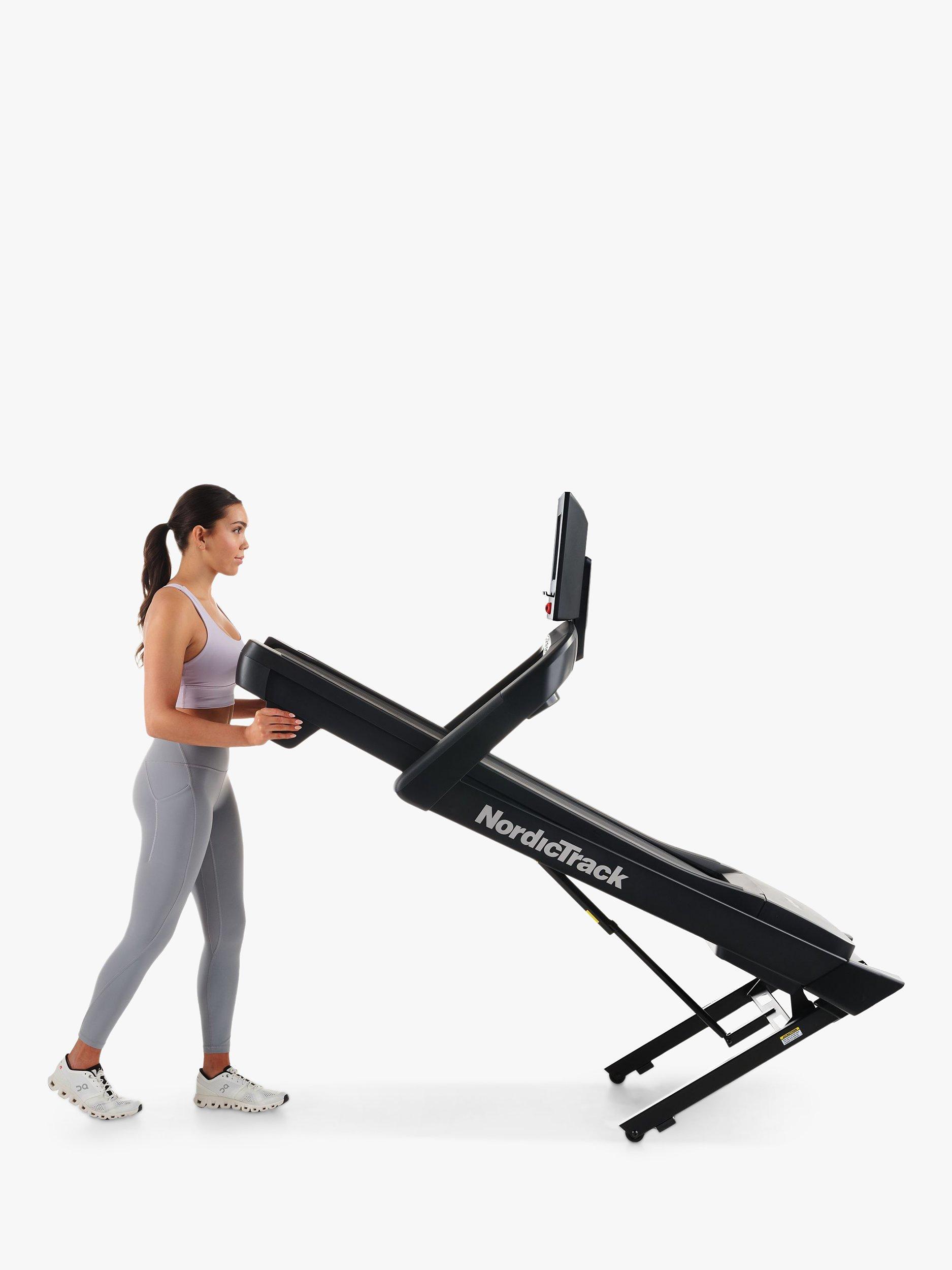 Part of the most compact treadmill series, the NordicTrack EXP 10i Folding Treadmill makes it possible to walk, jog, run, and hike around the world from the comfort of your home, even in smaller spaces.