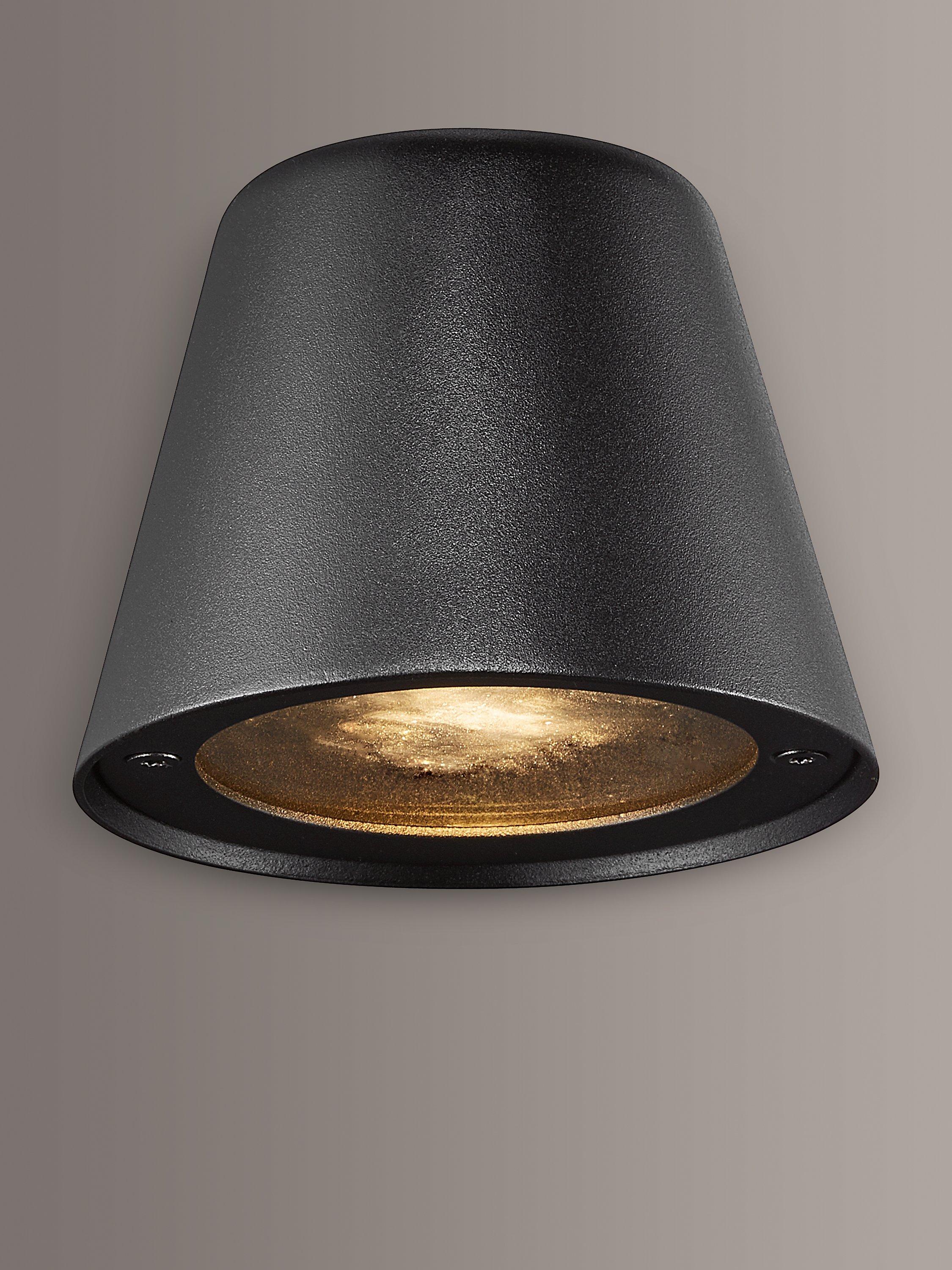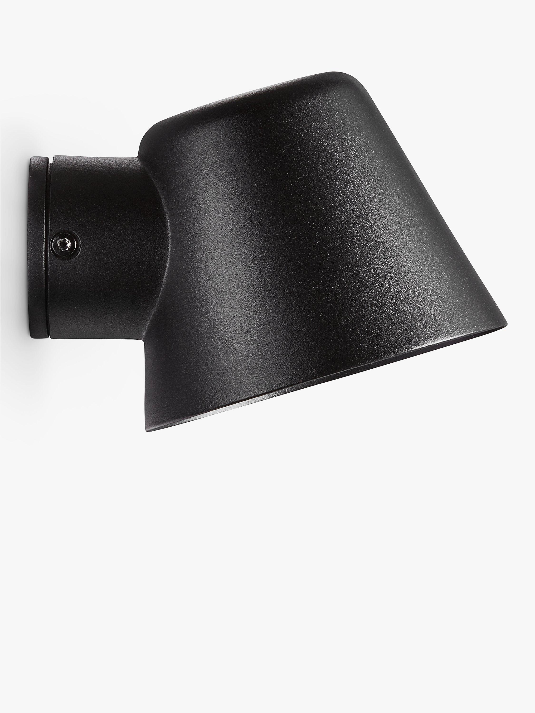 This outdoor wall light provides a good spread of light for its compact size. It's made from aluminium in a matt finish and its IP44 rating means it's tested for use in outdoor environments. It's name, Aleria, is inspired by a city on the island of Corsica with the same name.
