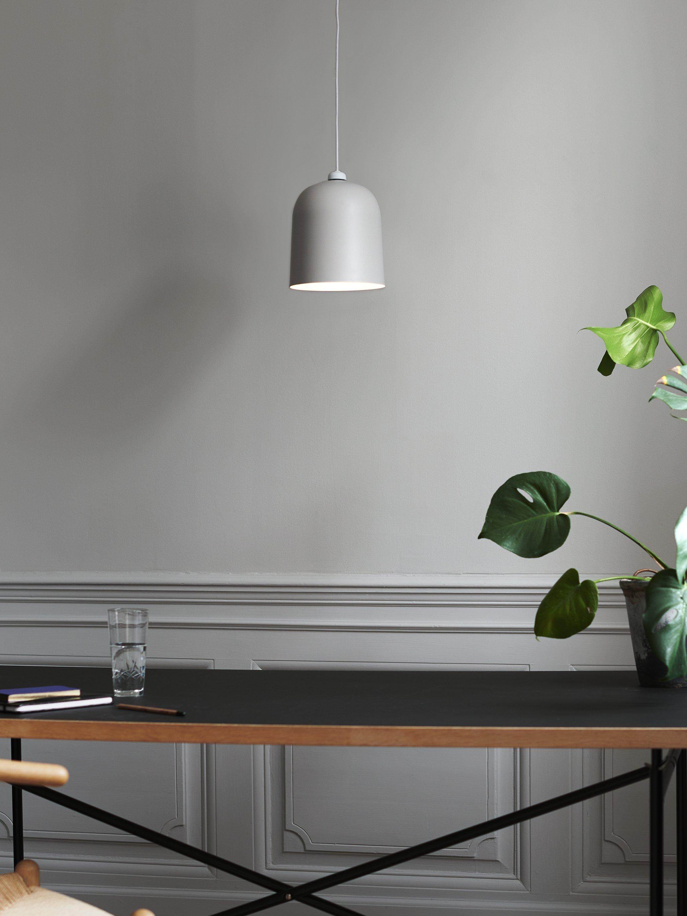 Angle pendant ceiling light, designed by Maria Berntsen for Nordlux. A contemporary lighting design with an industrial look, the special feature of this lamp is the ability to determine the direction of the light via the magnet mounted on the cord. The lamp looks great in clusters of several units which are angled differently. It creates a gorgeous expression and adds a bit of ambience to any room.