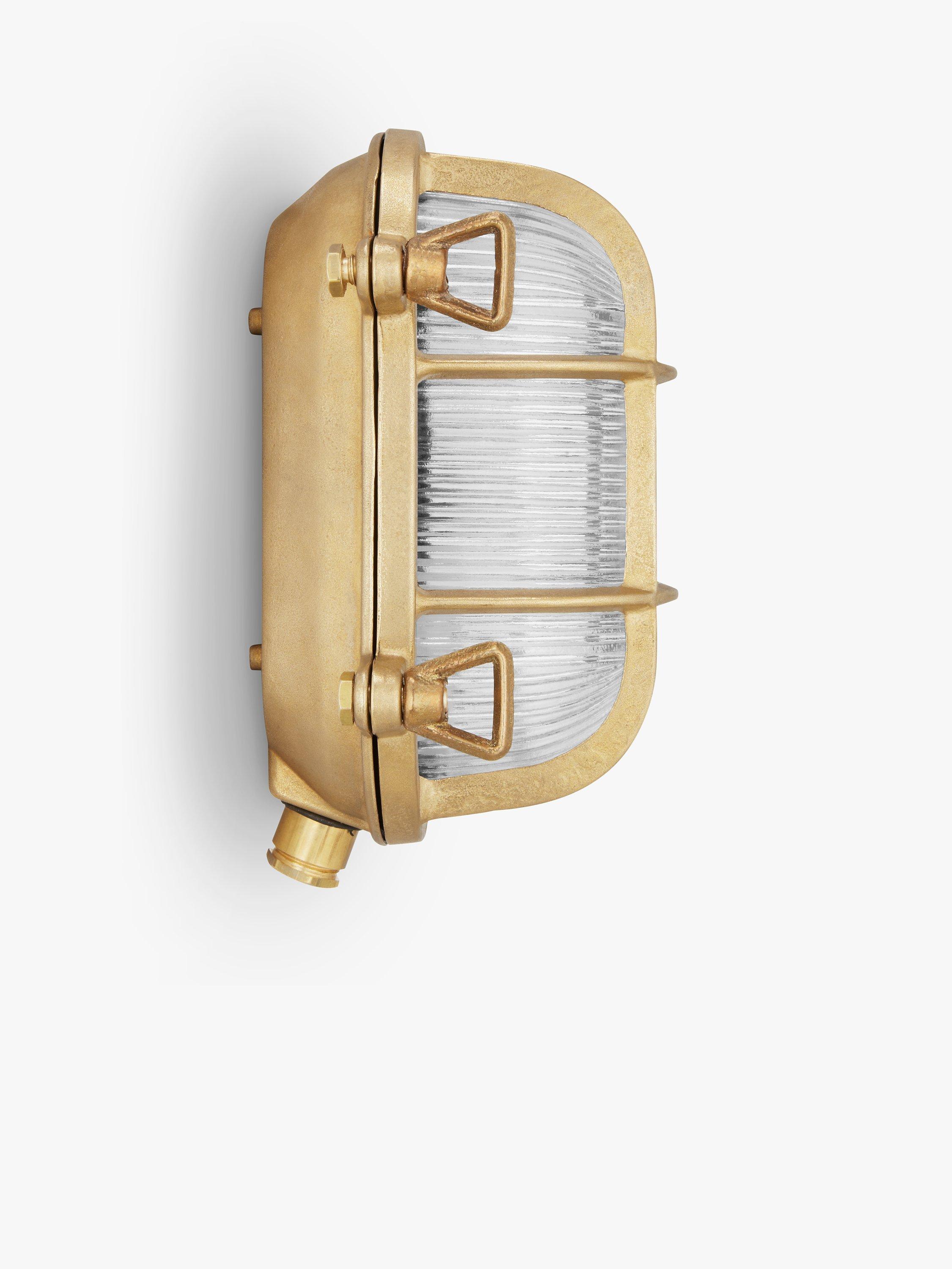 This Bulkhead outdoor light from Nordlux has a nautical, retro design. Made from solid steel in an aged brass finish, its sturdy construction is IP64 tested and suitable for outdoor environments. Ideal for illuminating your outdoor spaces, it provides an effective, warm wash of light and is easy to install.