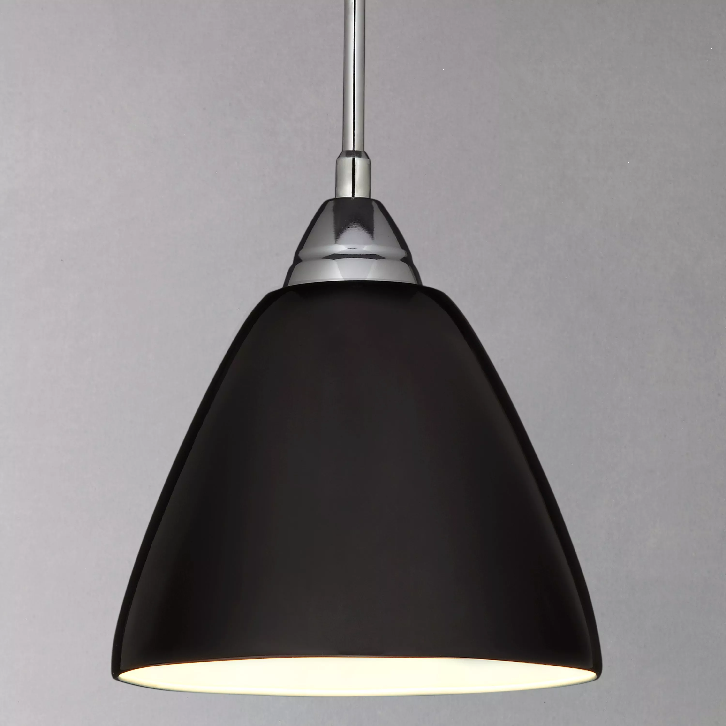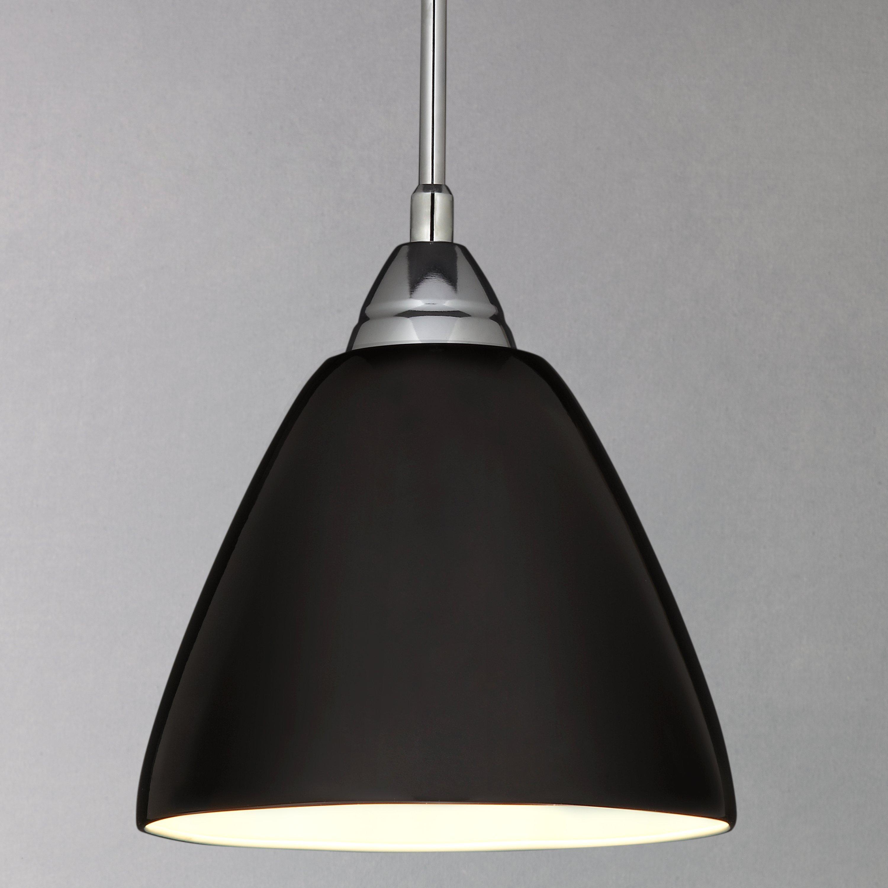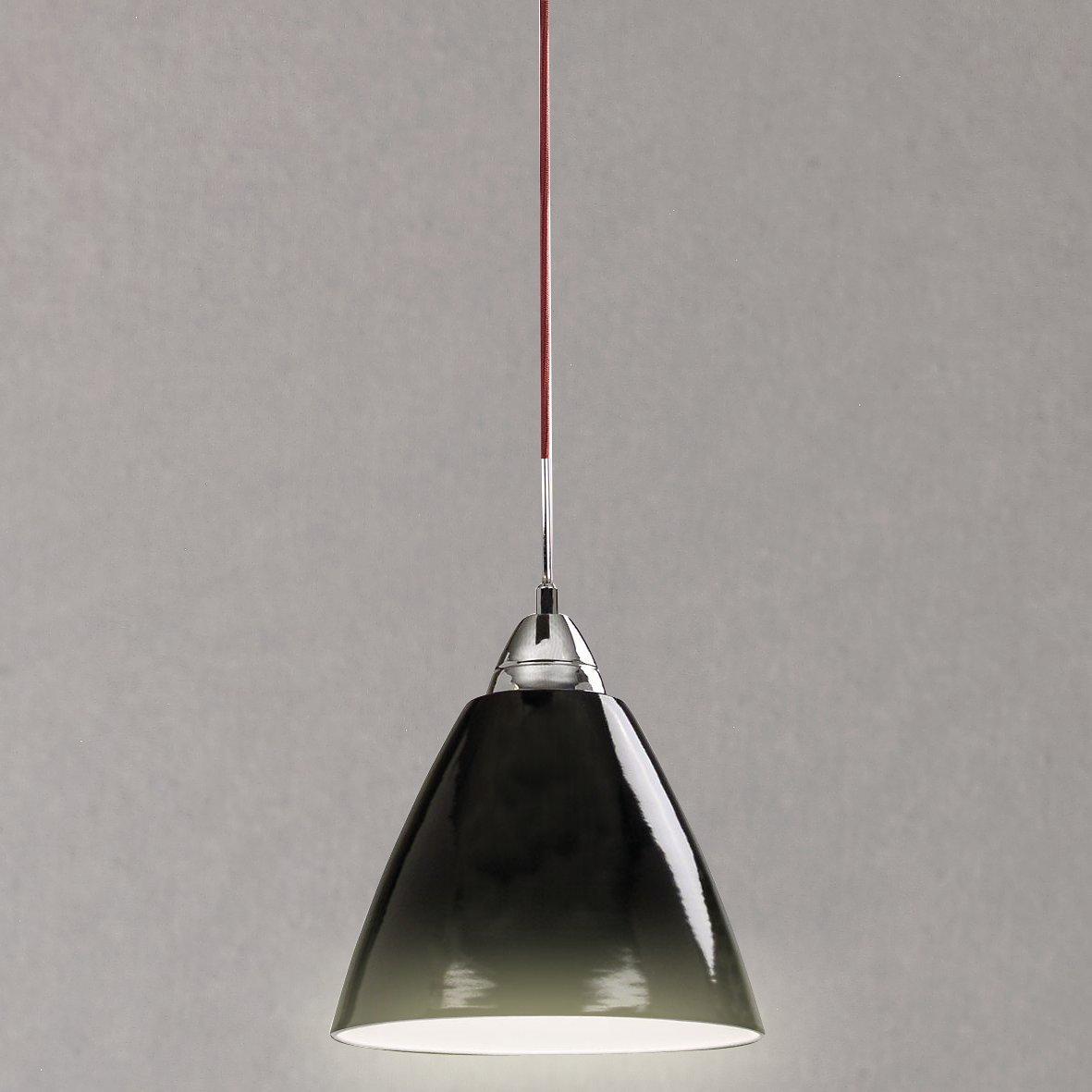 A high-shine pendant in cool, contemporary colours. It's the perfect light for a kitchen or breakfast bar in lines of three or more. The flex is clear to enhance the drama of the shade.