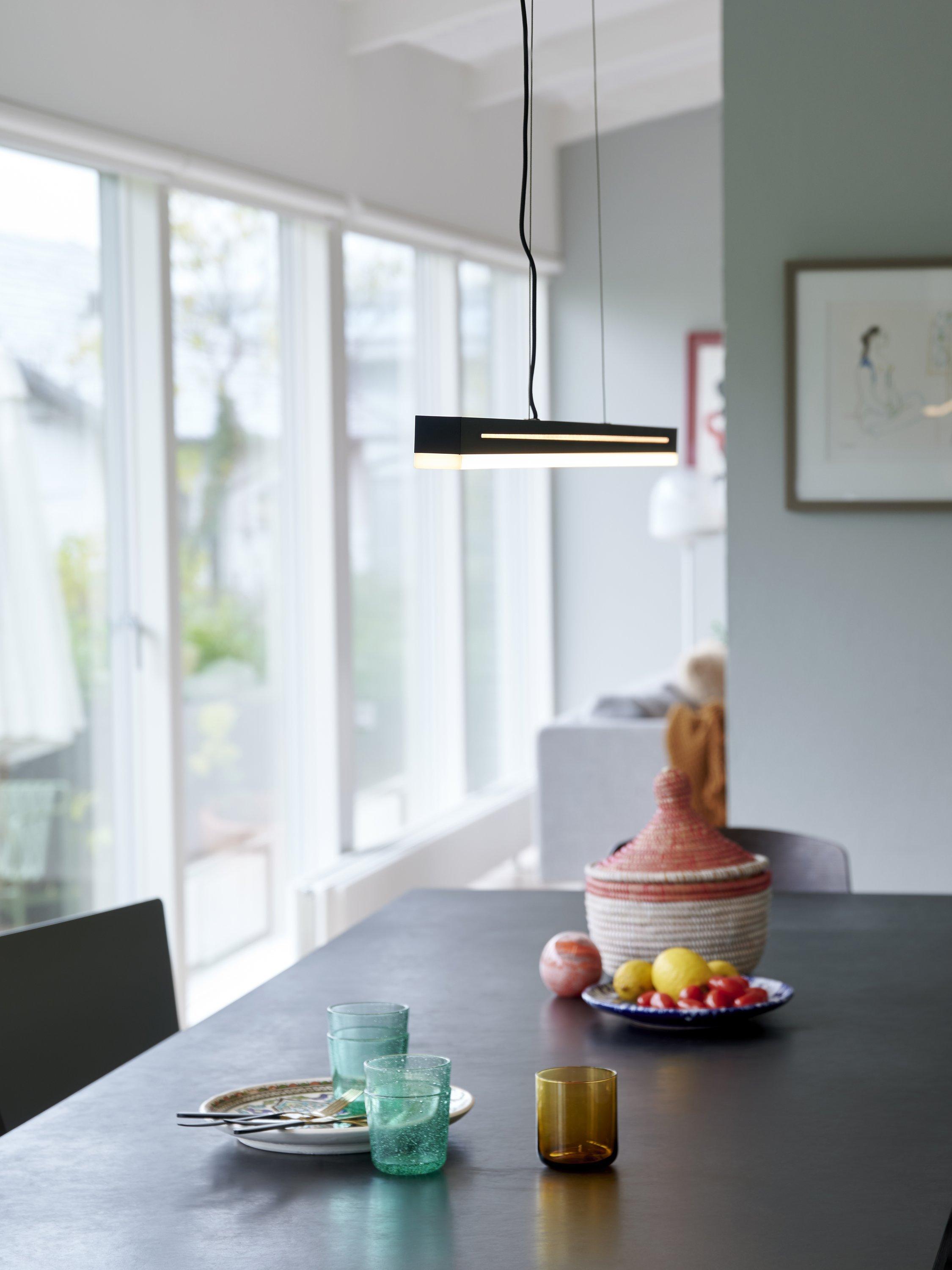 This ceiling light offers impressive functionality in a design that's modern, minimalist and a hint of industrial. Built with a powerful integrated LED, it offers a three-step dimming function which allows you to easily change the light level from your regular wall switch. Choose between simultaneous down light and side light, only down light or only side light to set the perfect ambience throughout the day. Plus, its smart memory function means it will remember your last dimmer setting. An impressive feature when installed directly above a kitchen island or dining table.