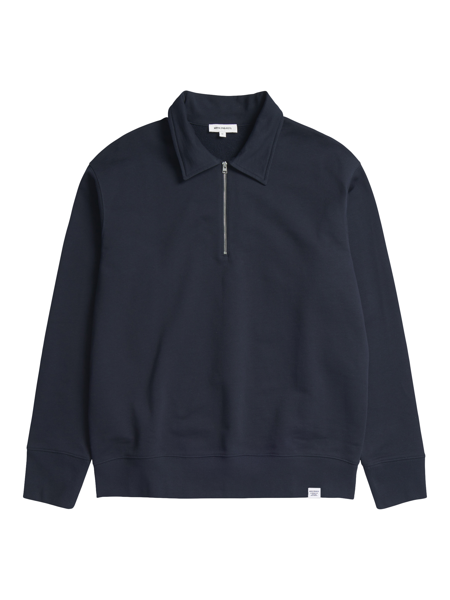 A relaxed-fit half-zip sweatshirt with set-in sleeves, crafted from organic loopback cotton. Designed with a logo tab, ribbed cuffs and hem, and finished with twin-needle stitching details for added durability.