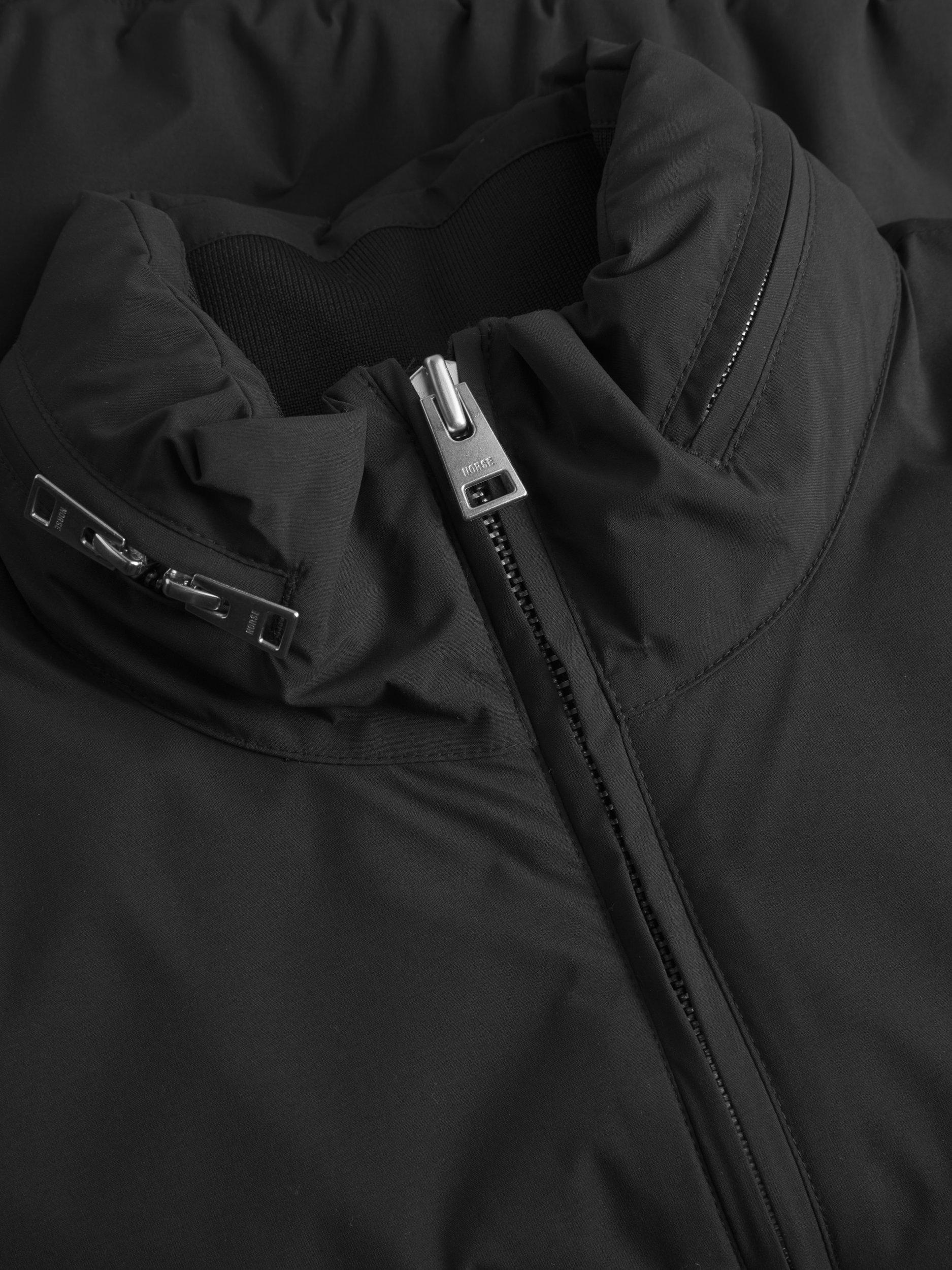 This bomber jacket is built for British weather. It's made with WINDSTOPPER® fabric to block out the wind and a water-repellent, recycled outer layer to keep you dry. Inside, a warm wool lining and synthetic insulation will keep you comfortable on cooler days. It also features a packable hood, multiple pockets for essentials, and a lightweight feel that won't weigh you down. It’s a versatile jacket that’s ready for anything.