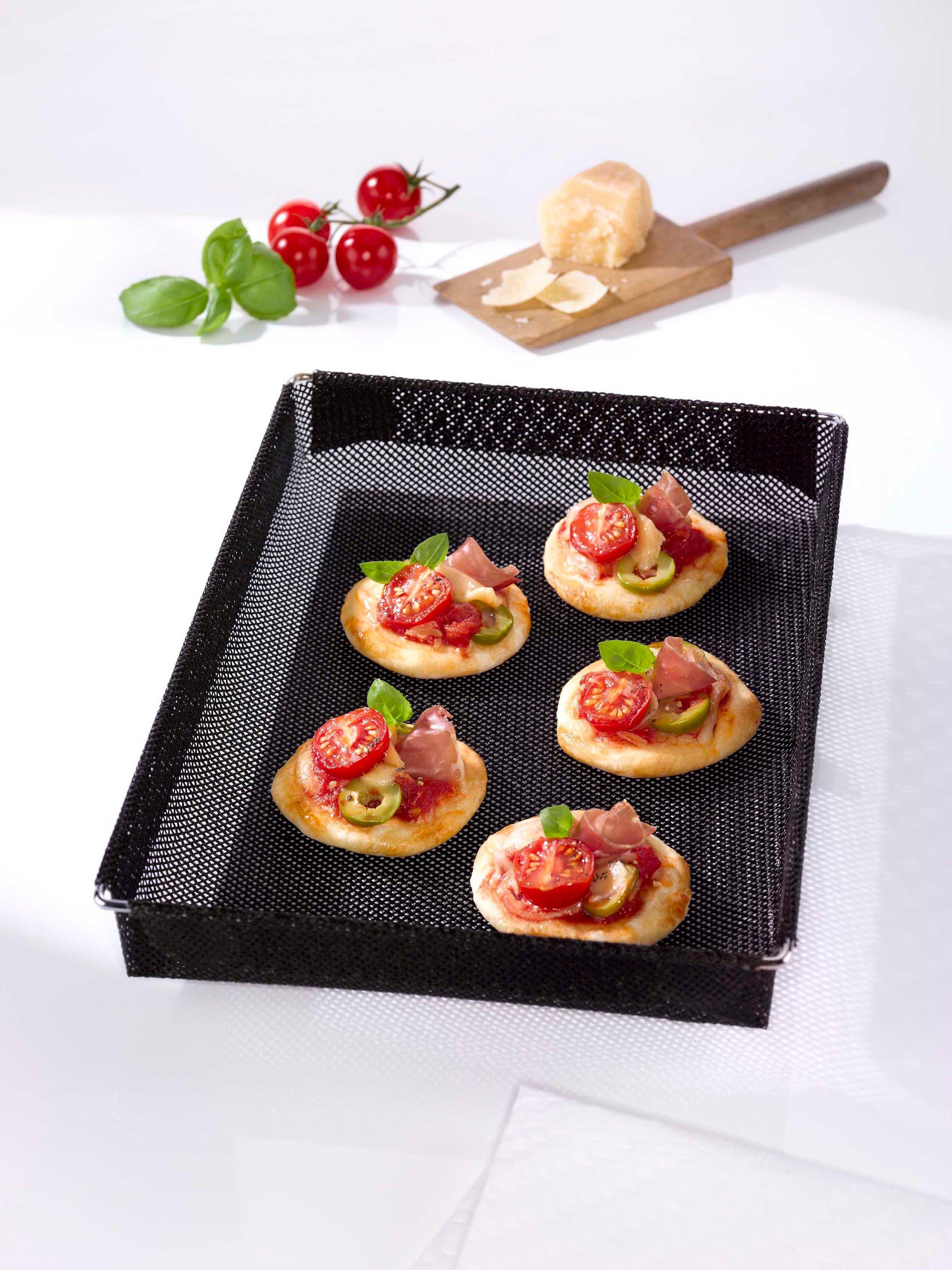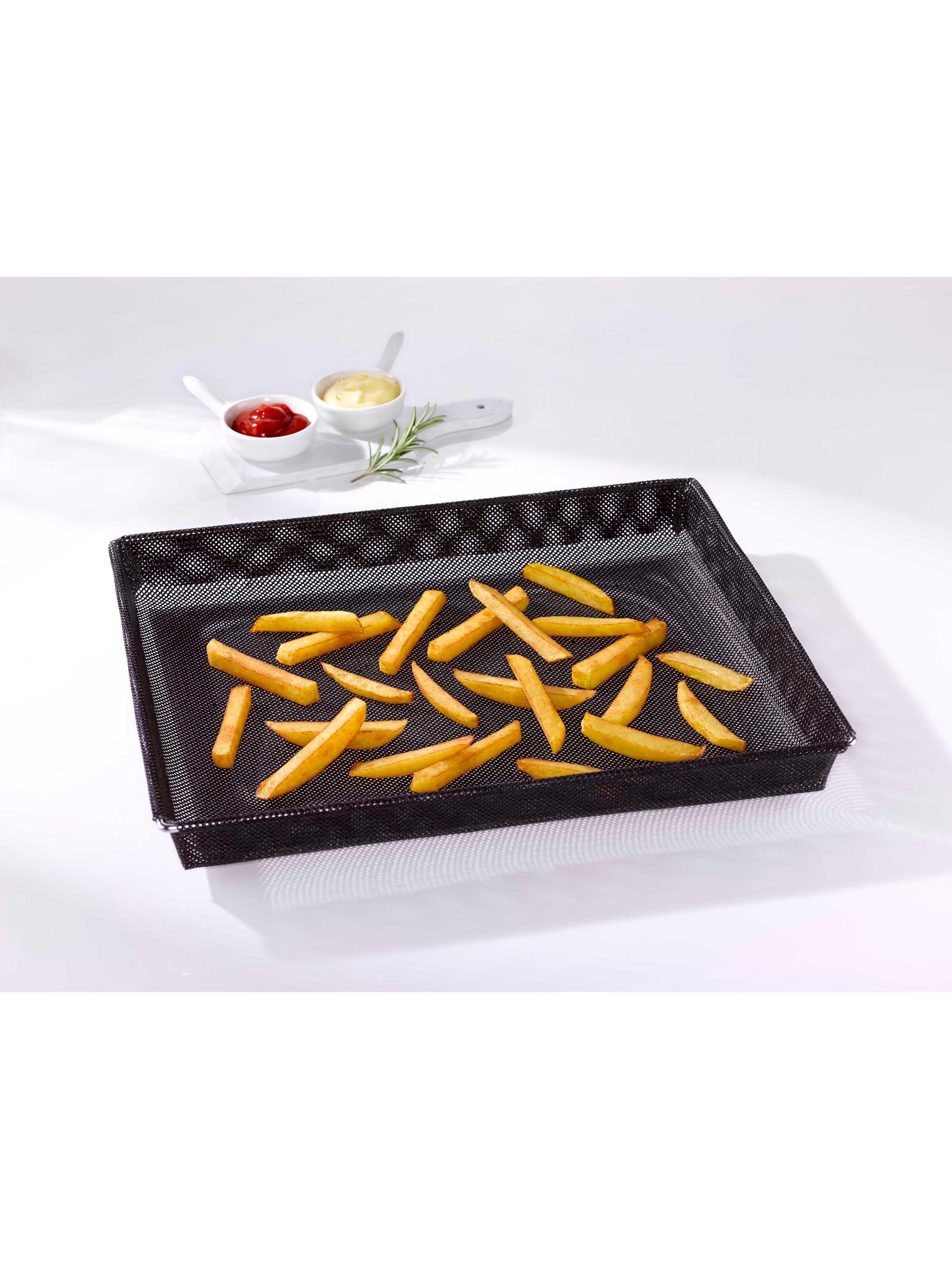 The Nostik® Crisper Basket is ideal for the preparation of oven chips, nuggets, pizzas, onion rings and more, without having to use butter or cooking fat. The grill openings allow optimum hot air circulation and thanks to the non-stick coating, the food will never stick to the crisper basket.