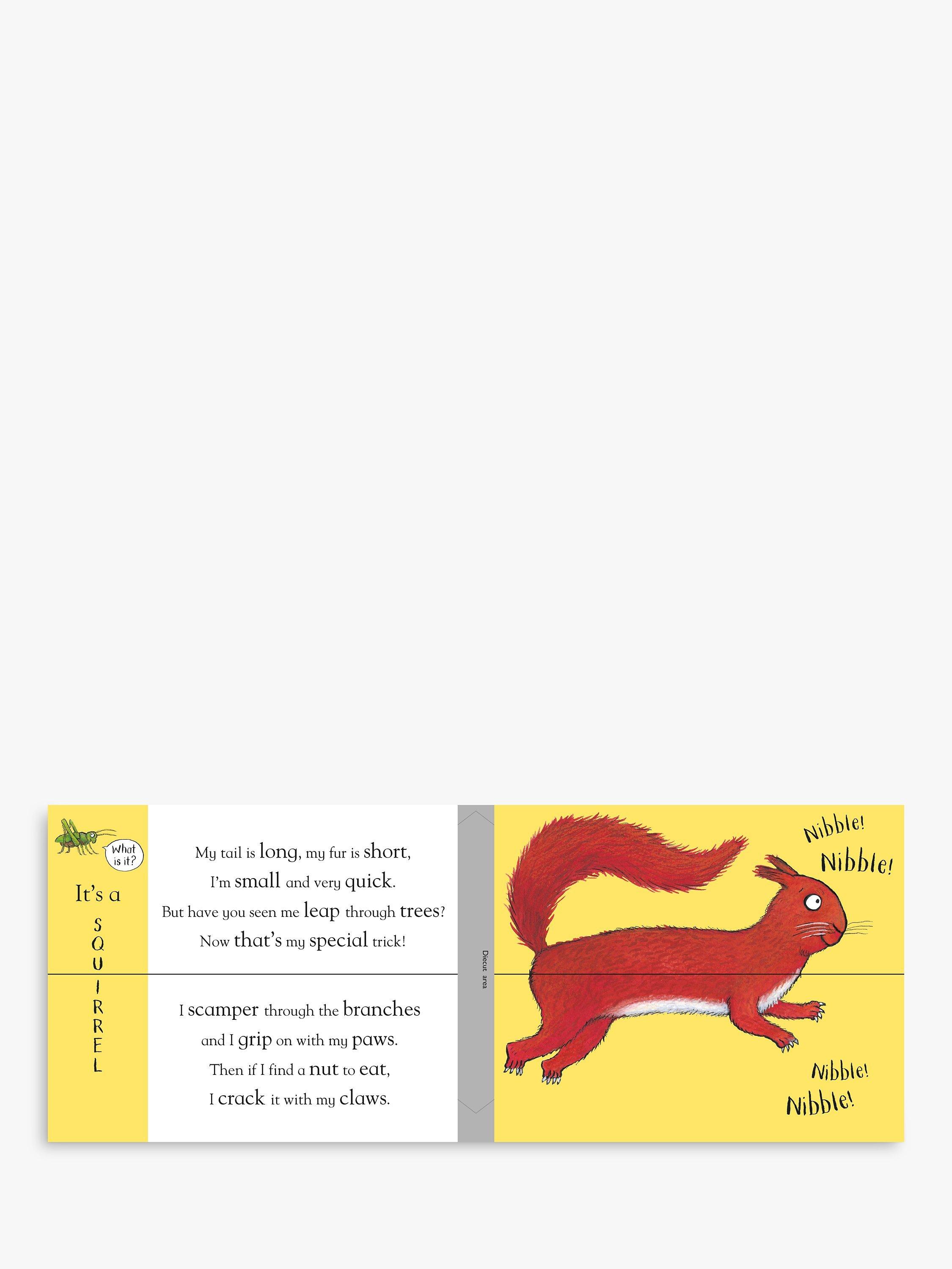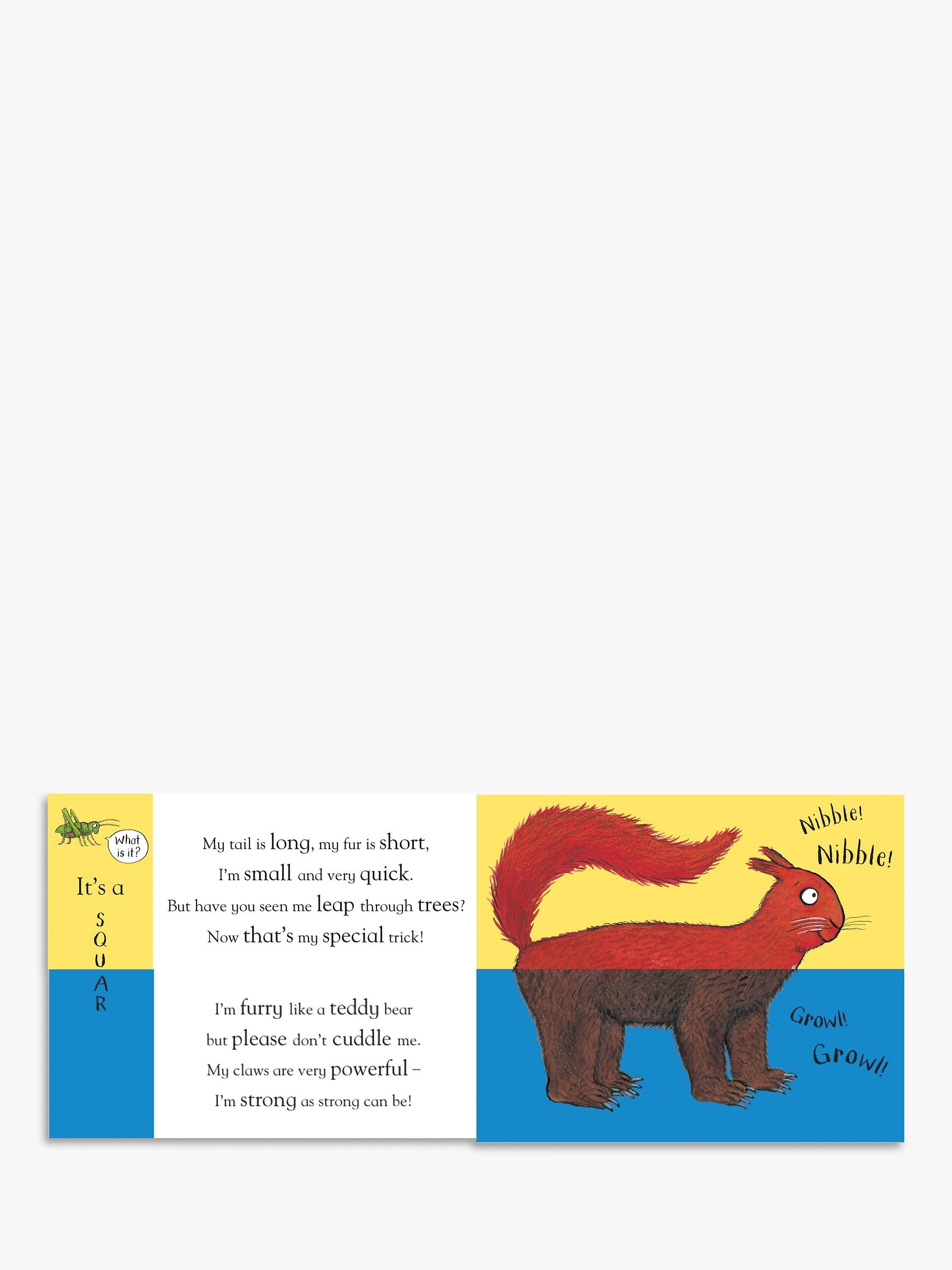 Weird and wonderful woodland creatures in this bonkers book of mixed-up animals from bestselling, award-winning illustrator, Axel Scheffler. What do you get if you cross a squirrel with a woodpecker? It's a squecker, of course! And how about a raccoon with a skunk? Why, that's a raccunk! With over 121 possible creations, silly names and strange noises to make you giggle, this new Flip Flap book is perfect for preschoolers and ideal for animal fans. With a hilarious rhyming text and brilliant artwork from the illustrator of The Gruffalo and the Pip and Posy series, Axel Scheffler, simply flip the pages to create some seriously silly mixed-up creatures!