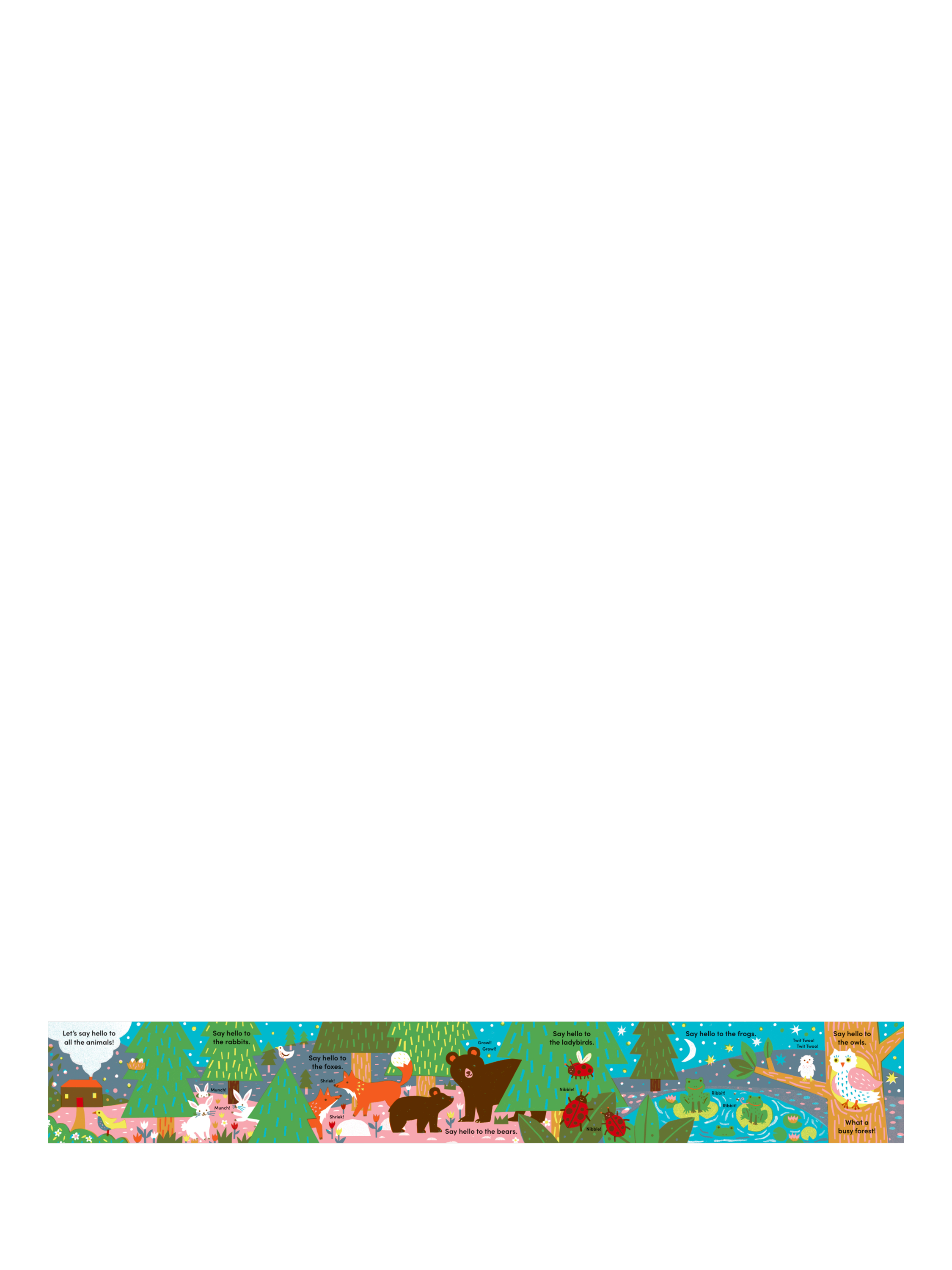 Say hello to the woodland animals in this engaging tummy time book for babies. There is a busy forest scene on one side of the concertina and friendly animal faces and a mirror for babies to see themselves in on the other side.
