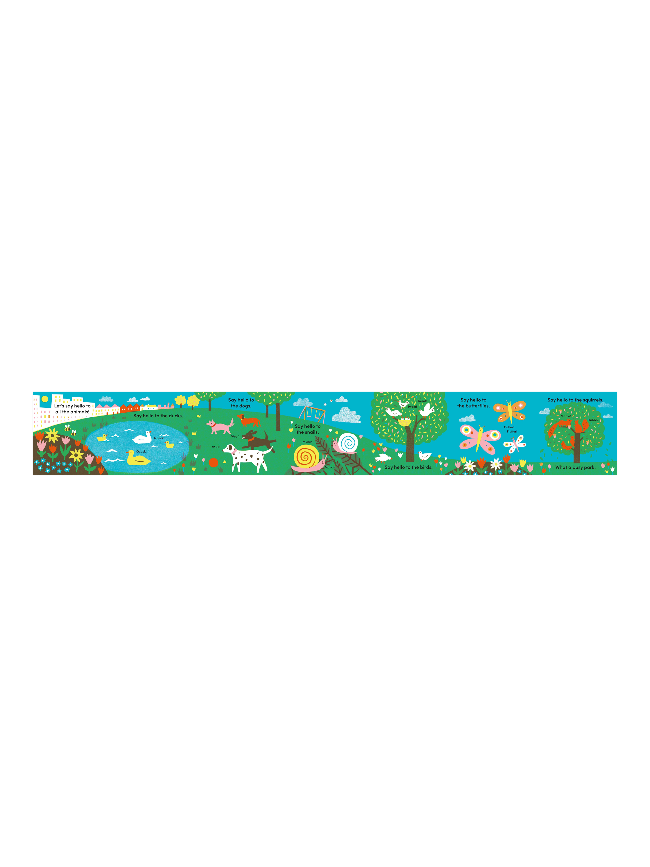 This dazzling board book is designed with tummy time in mind - a gentle exercise where a baby lies on their front to help strengthen their muscles and improve their head control. The fold-out format allows the book to be spread out in front of a baby, while the bold colours stimulate their developing eyesight. With bright, jaunty artwork from Louise Lockhart - the widely-known illustrator behind The Printed Peanut online shop - this delightful new series will captivate even the wriggliest of babies.