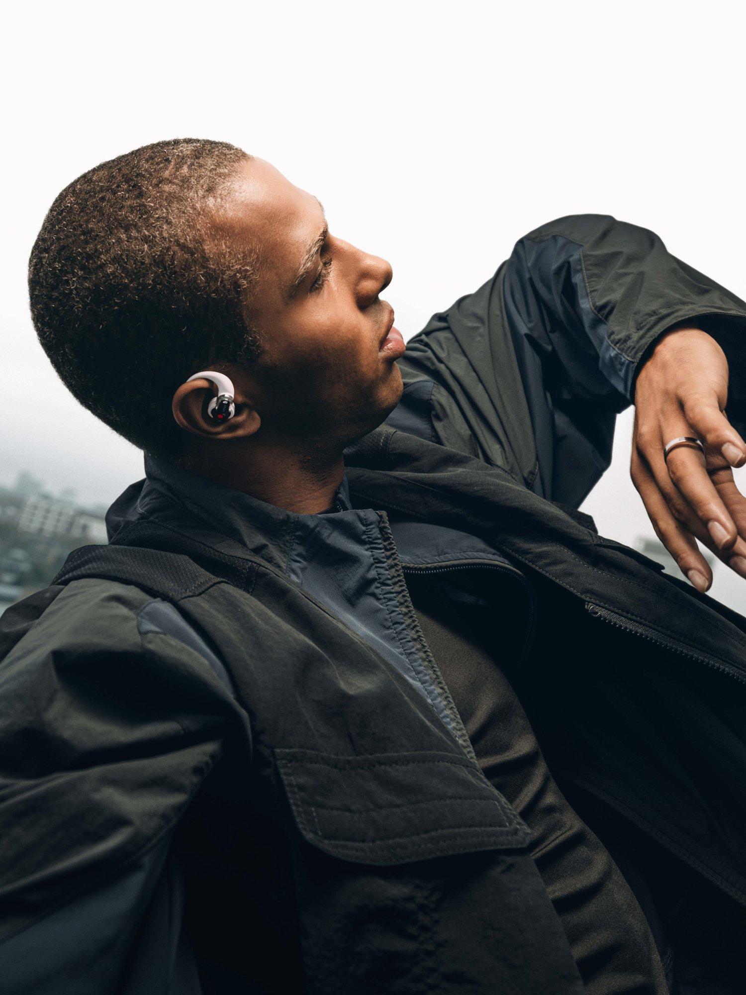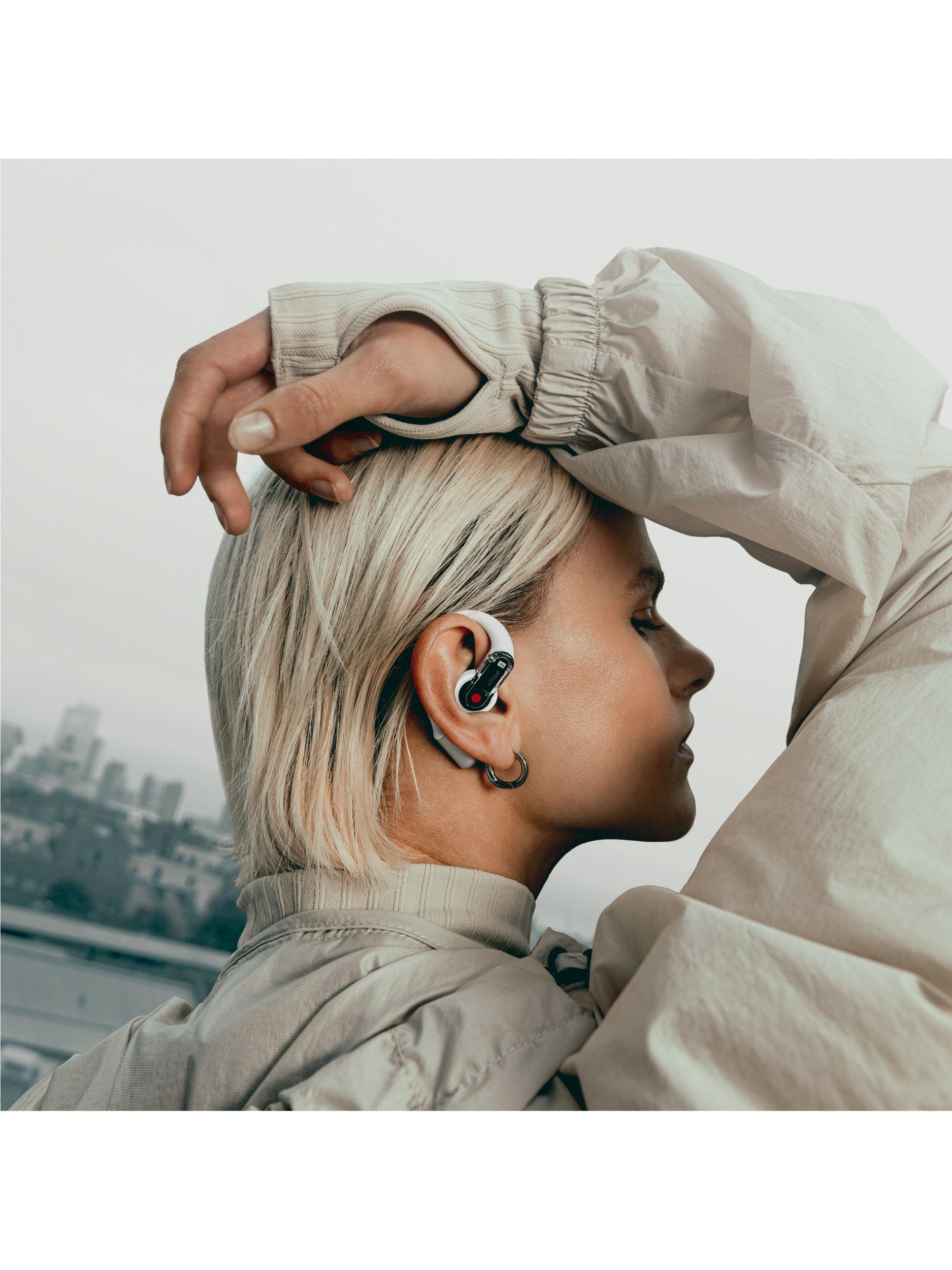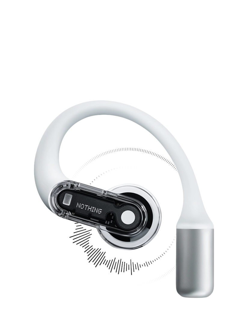 Ear (open) is built for a unique listening experience that keeps you aware of your surroundings. Its Open Sound Technology and speaker design create a wide soundstage that lets you hear both your audio and the world around you, from birds singing to a car approaching.