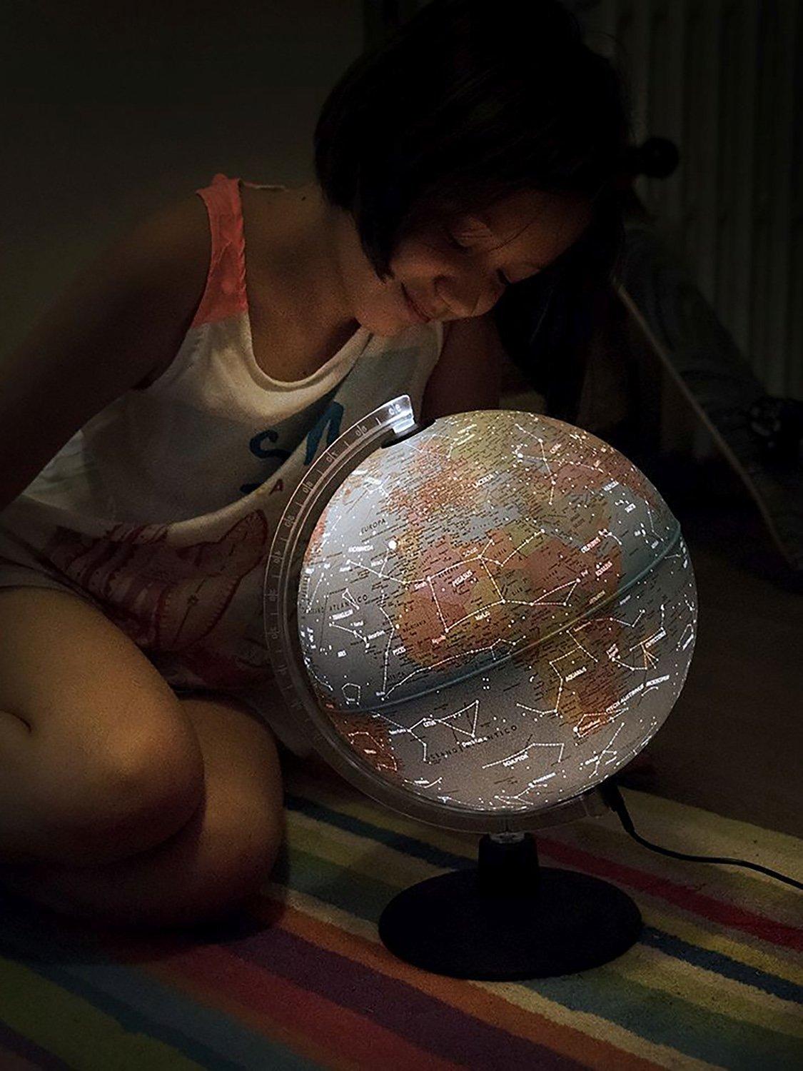 This 25cm Nova Rico globe shows political and physical features when not illuminated, but night sky constellations when illuminated.