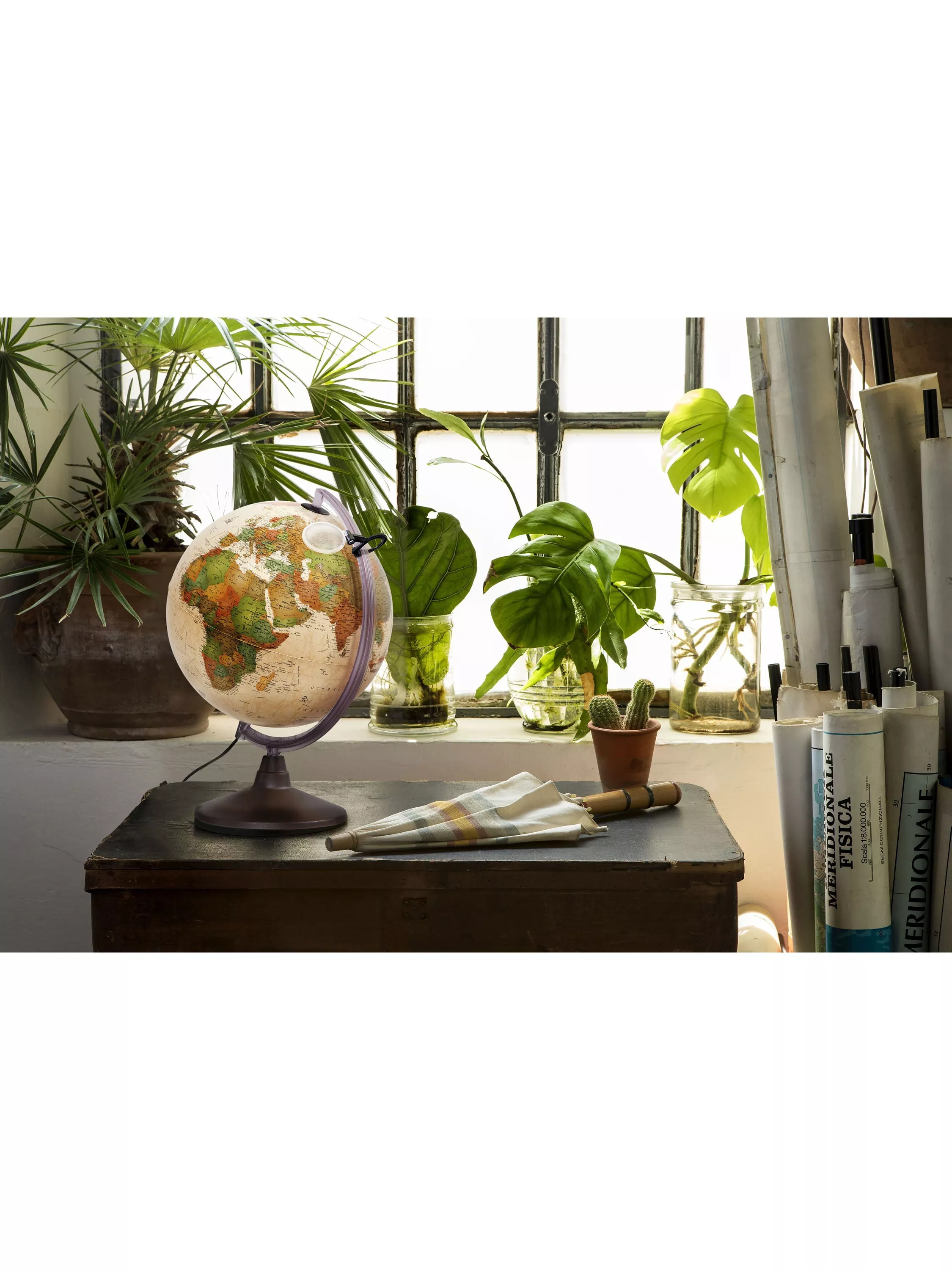 Nova Rico was founded in 1955 in Florence, Italy. With a long tradition of designing and building globes for various uses. This 30cm illuminated antique-style globe has a strong gold colour pedestal and half meridian, the countries are all highlighted using different colours. The Marco Polo edition comes with a magnifying glass for close-up viewing. A fantastic looking addition to your home, and a great gift. All wording on the globe is in English.