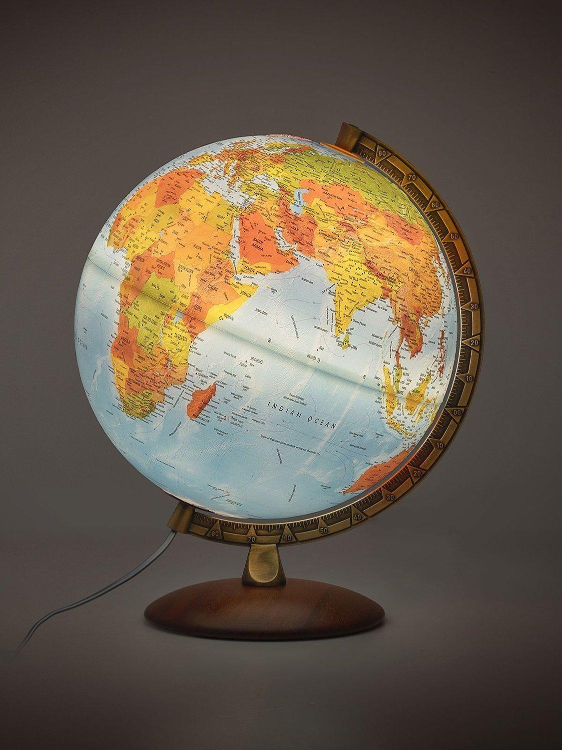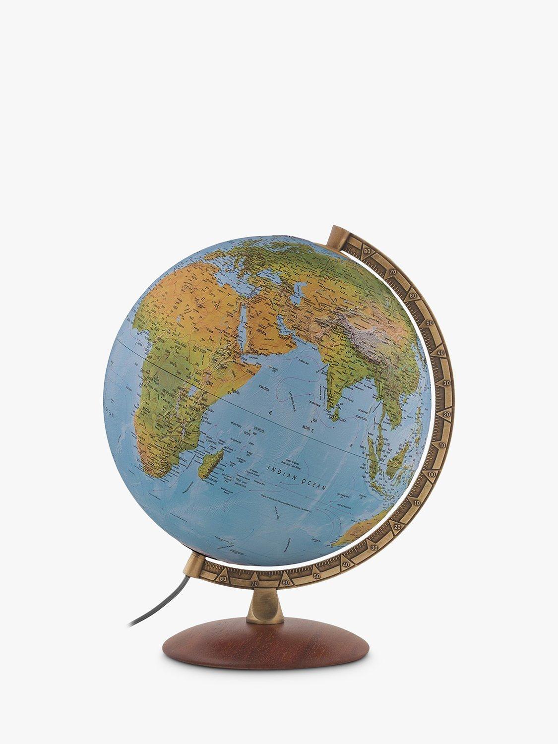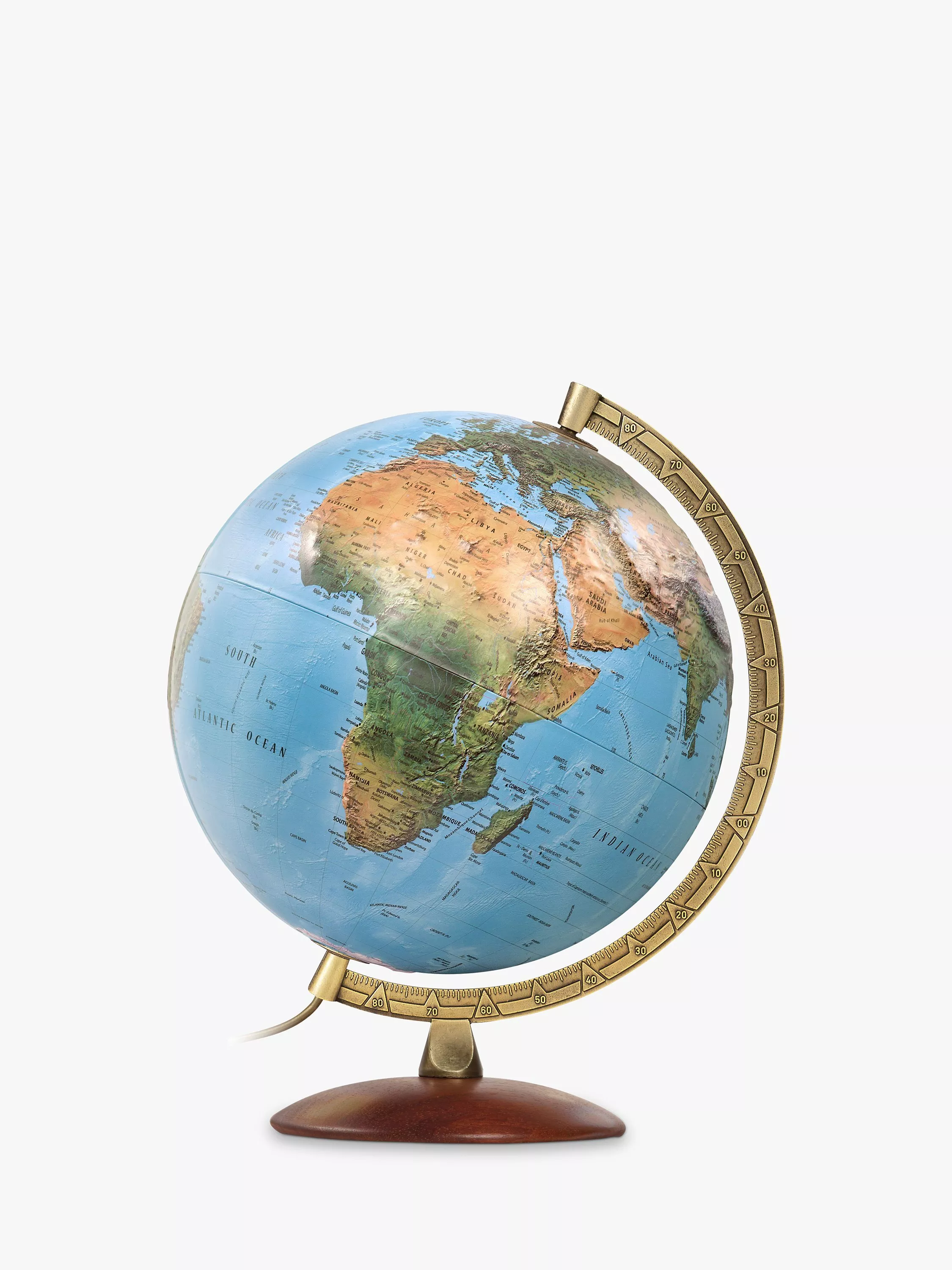 This 30cm illuminated antique style geographical globe from Nova Rico is a beautiful addition to your home or office. With a wooden base and metal arc, it has an elegant design and look. All wording on the globe is in English and the primus has relief cartography to illustrate the mountain ranges of the world.