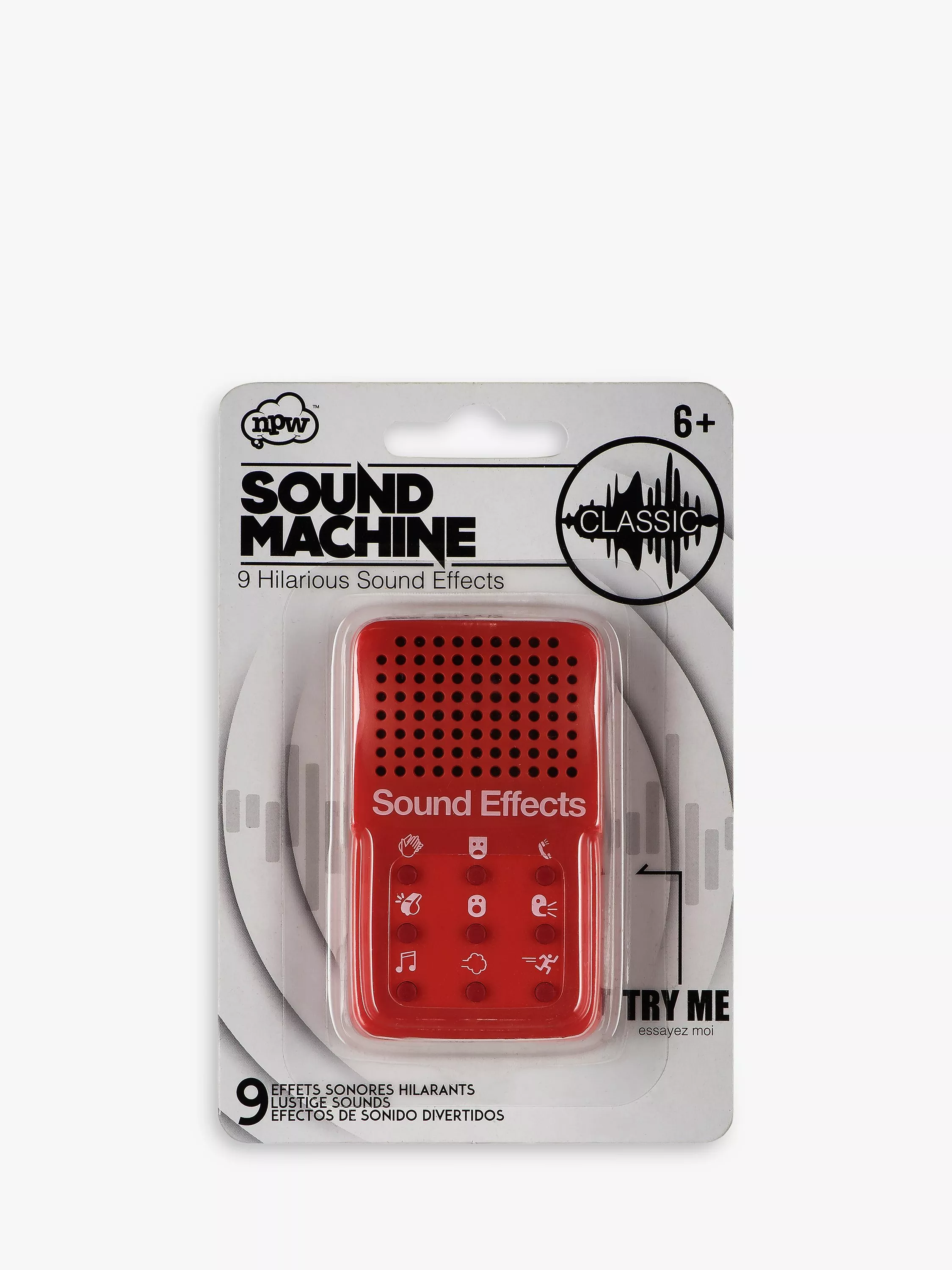 This classic sound machine produces nine loud and unmistakable sound effects. Hear action packed animated sounds including cheers, claps and whistles at the touch of a button. The perfect prop for pranksters. Batteries included.