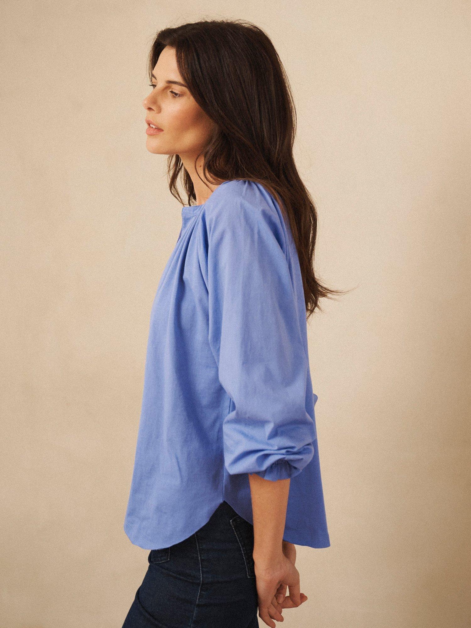 Light, easy, and endlessly wearable. Anita is an everyday go-to, reimagined with a feminine twist. Crafted from lightweight cotton, this shirt features soft gathers, frill details, and a relaxed silhouette. Complete with a fluid jersey body and crisp poplin sleeves. Wear it loose, tuck it in, or push up the elasticated cuffs for a touch of volume.