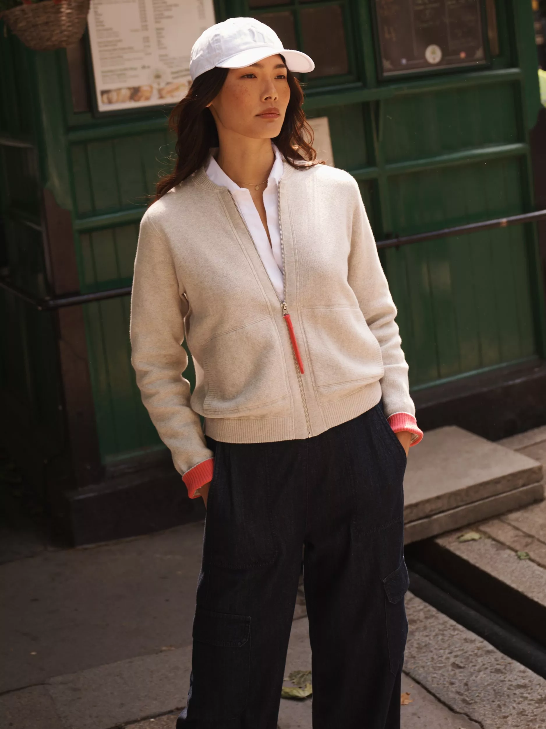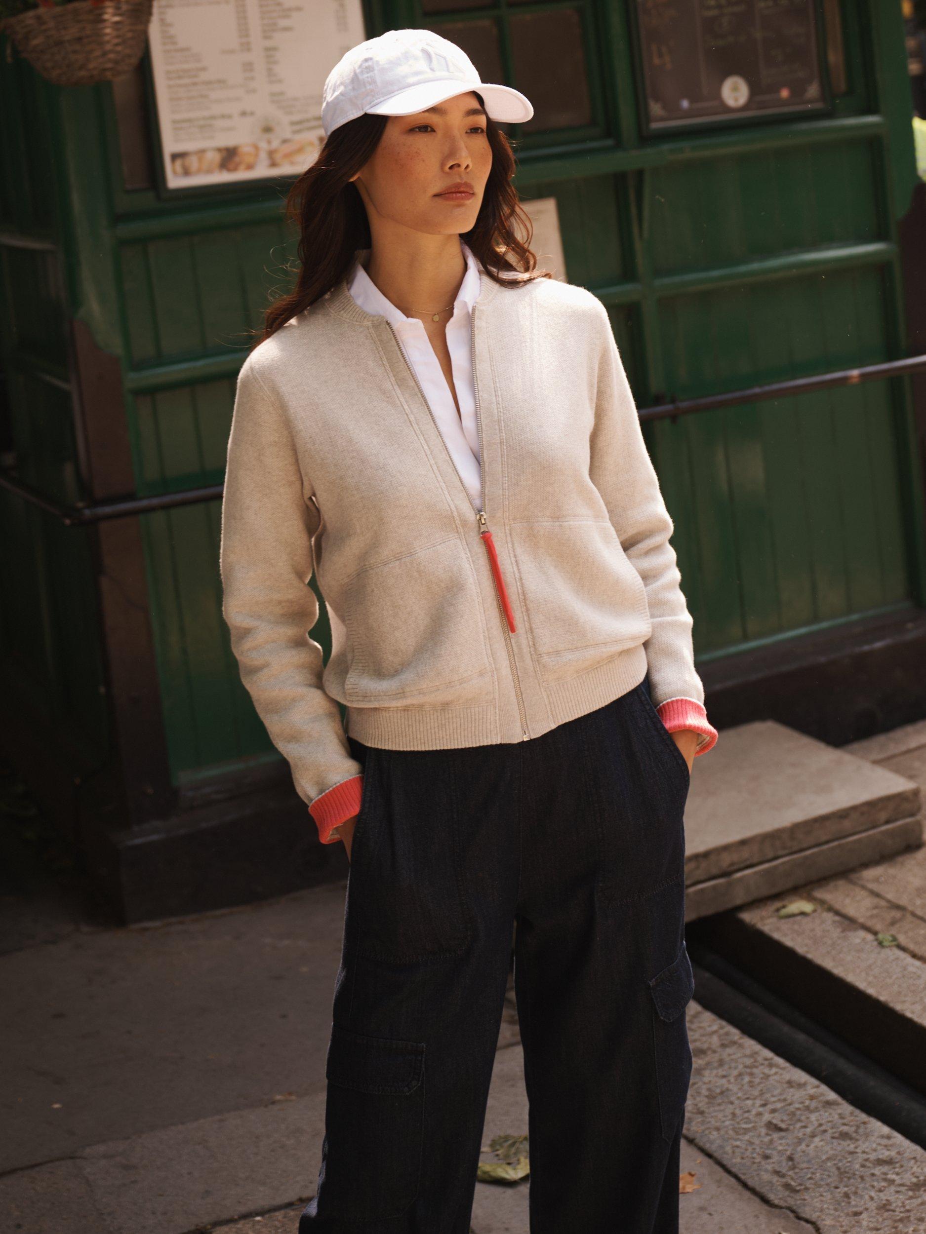 Not quite a cardigan, not quite a jacket - Bailey is that in-between piece you'll want to wear every day. In soft-touch cotton cashmere, with contrast trims, Bailey features a zip front, subtle ribbing at the cuffs and hem, and zip pockets. Lightweight and endlessly wearable.