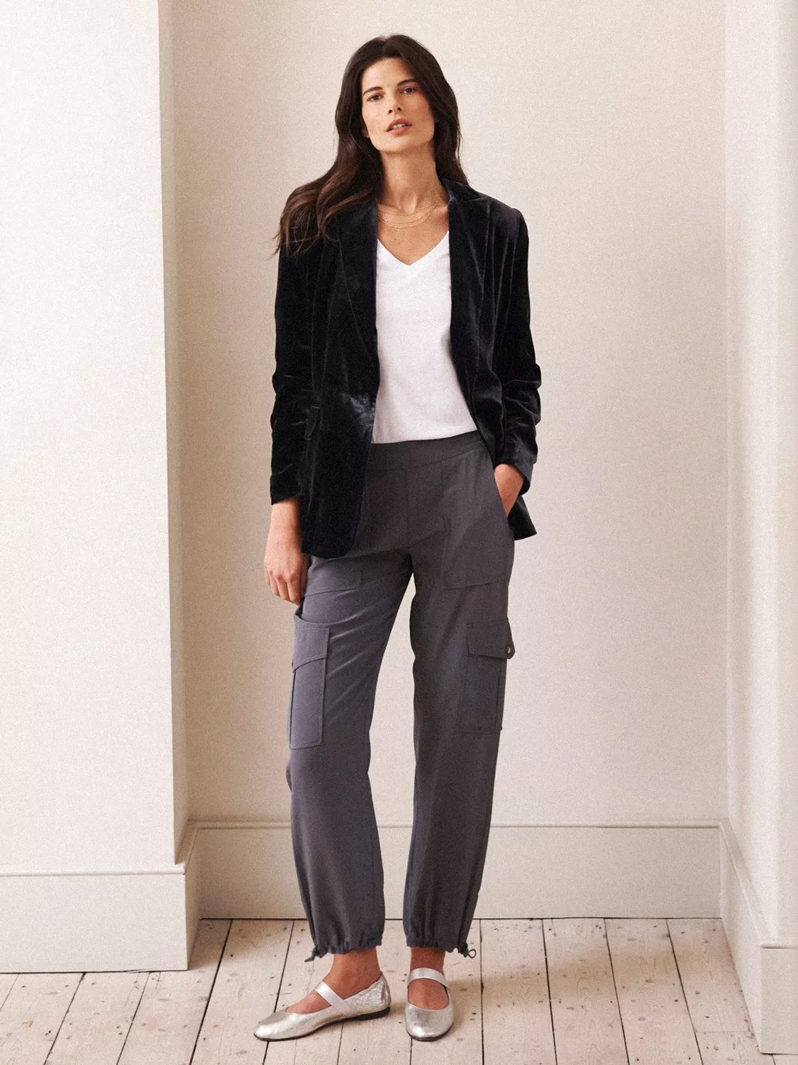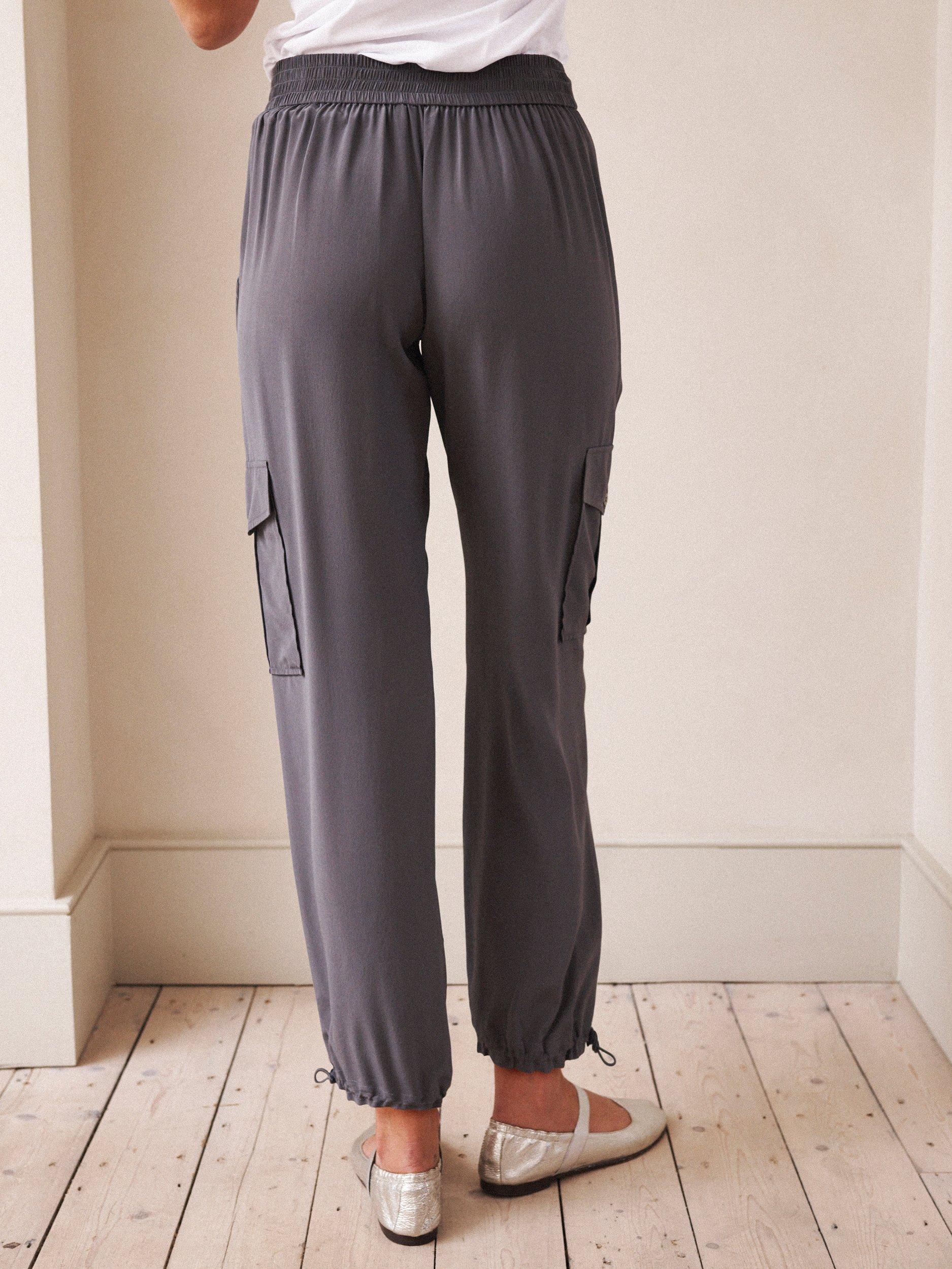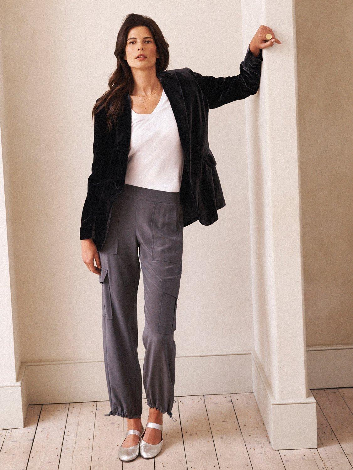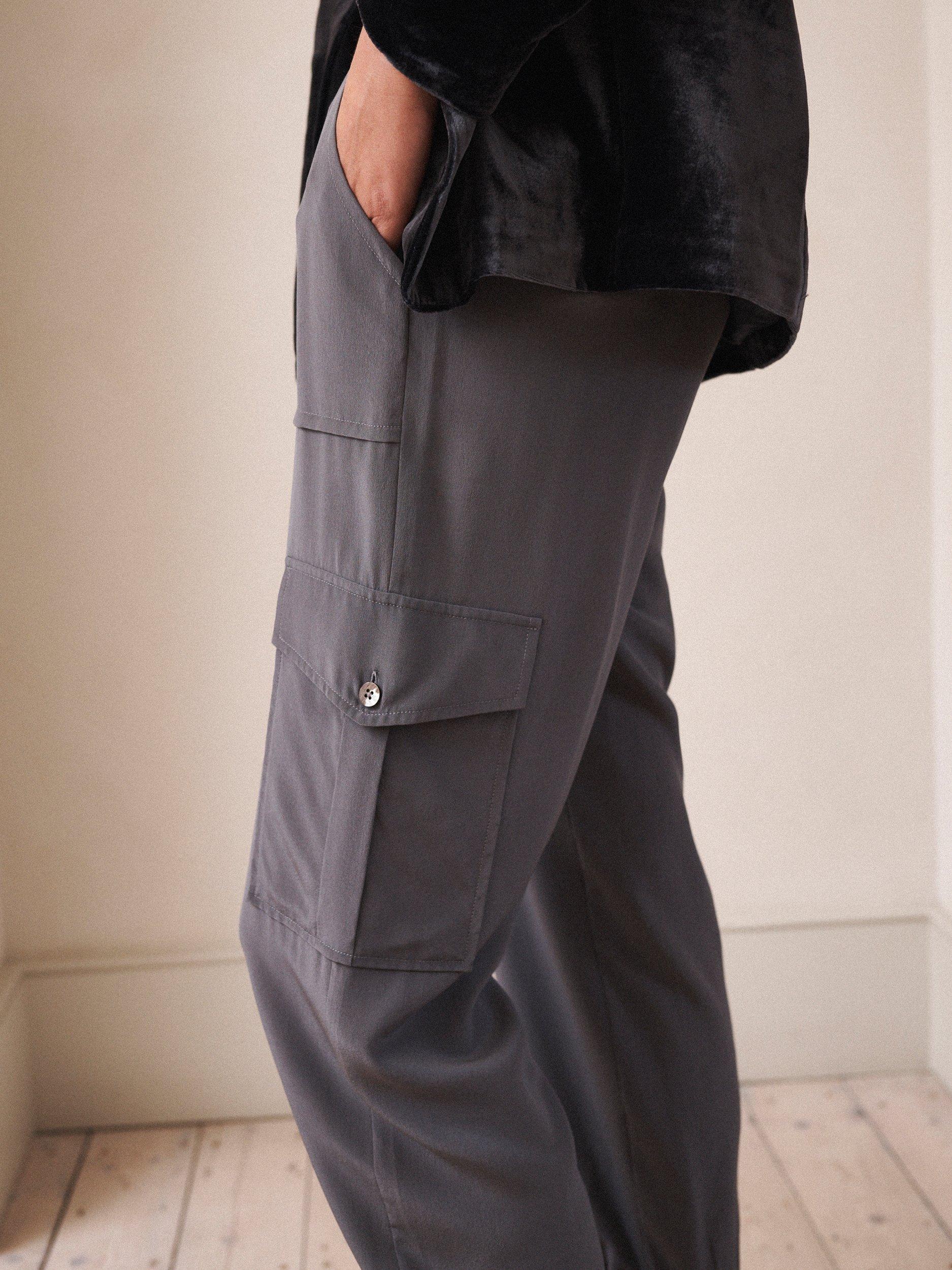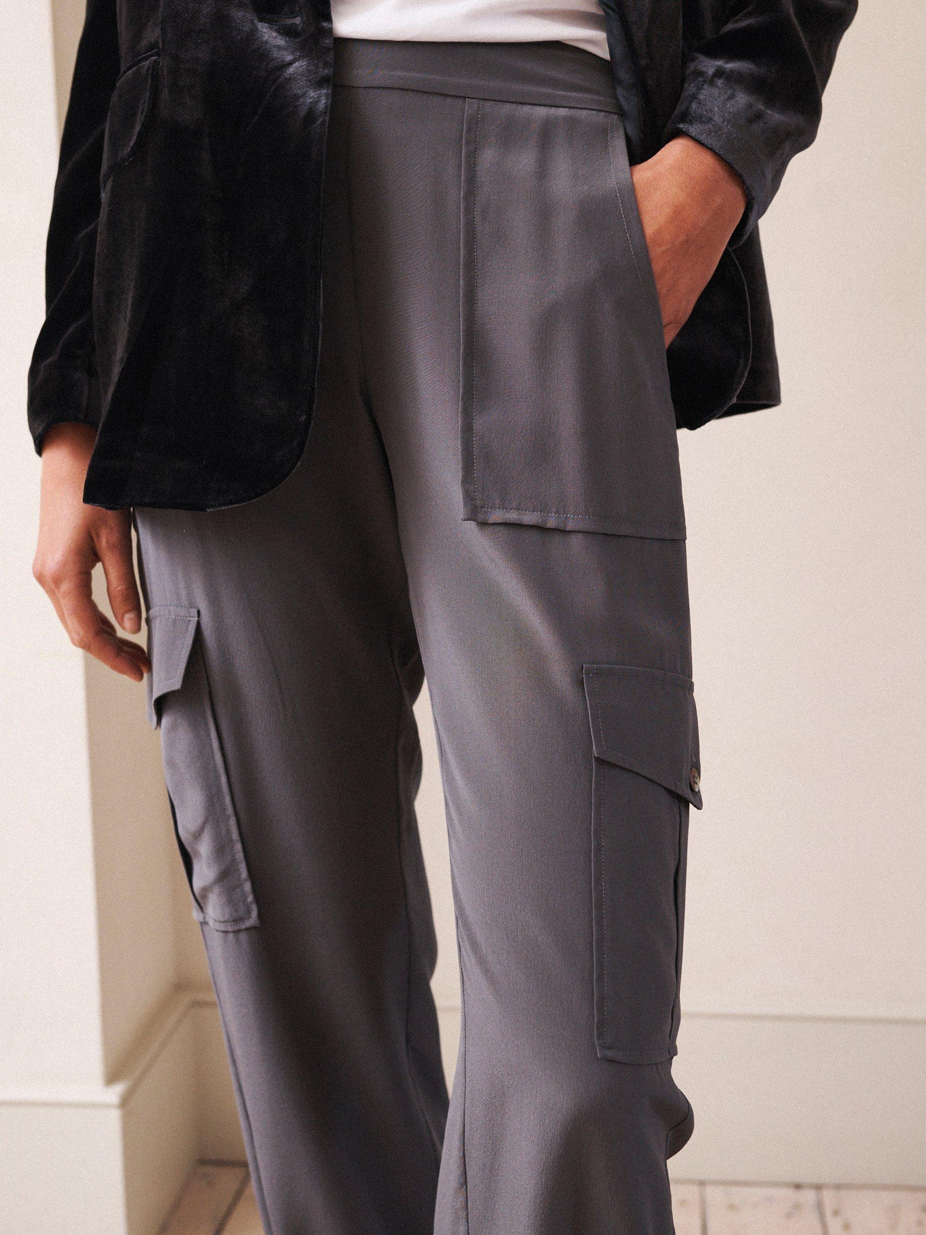 The Becca cargo pants now come in lightweight luxurious silk. A modern twist on utilitarian styling, in a relaxed silhouette with side pockets, cargo pockets and tapered elasticated hem. Perfect for every day, everywhere! Pair with boots, heels or white pumps.