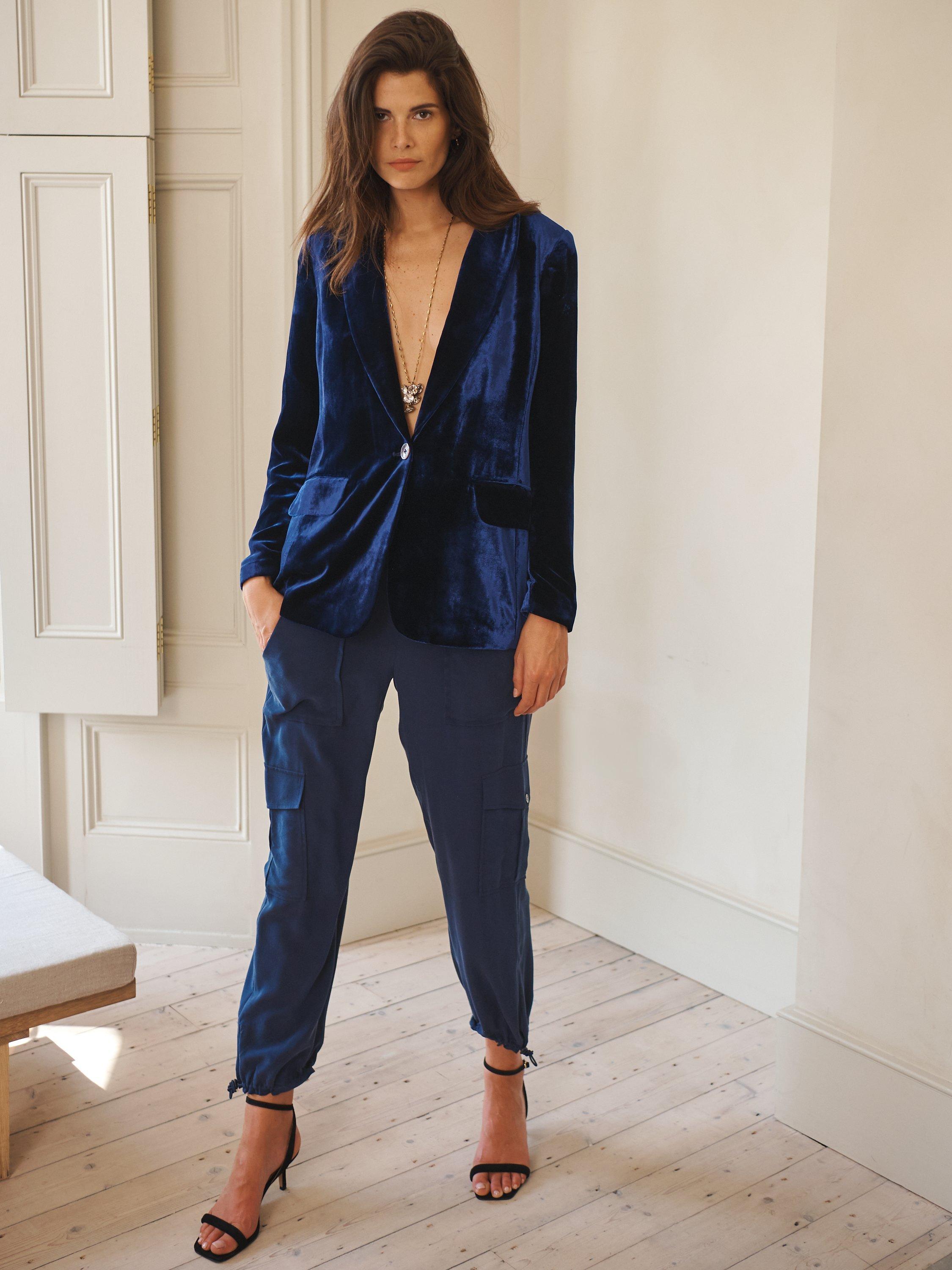 The Becca cargo pants now come in lightweight luxurious silk. A modern twist on utilitarian styling, in a relaxed silhouette with side pockets, cargo pockets and tapered elasticated hem. Perfect for every day, everywhere! Pair with boots, heels or white pumps.