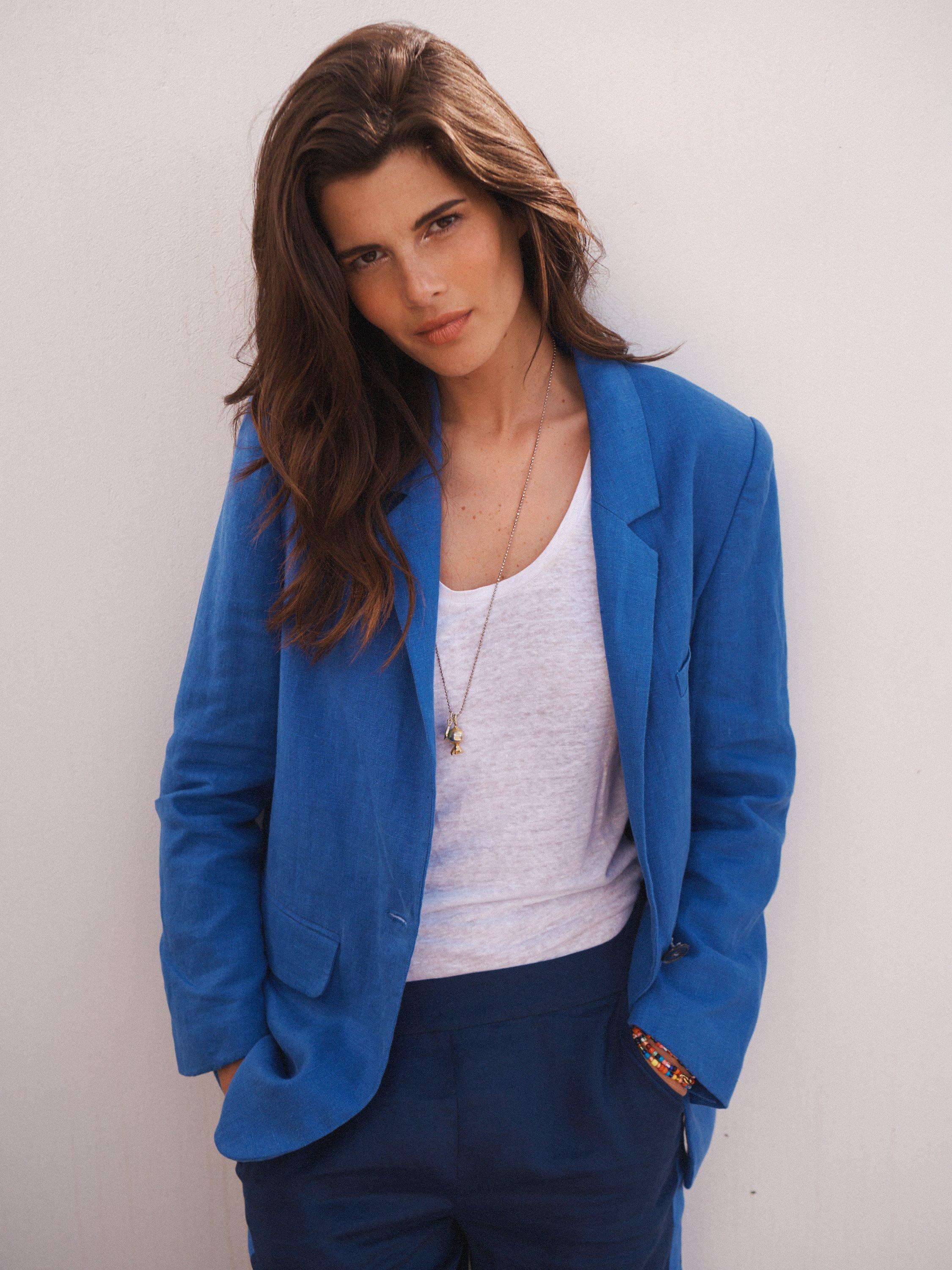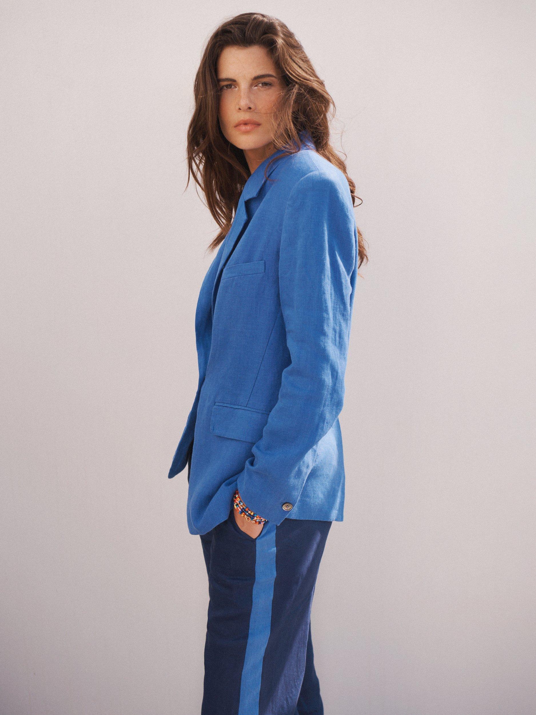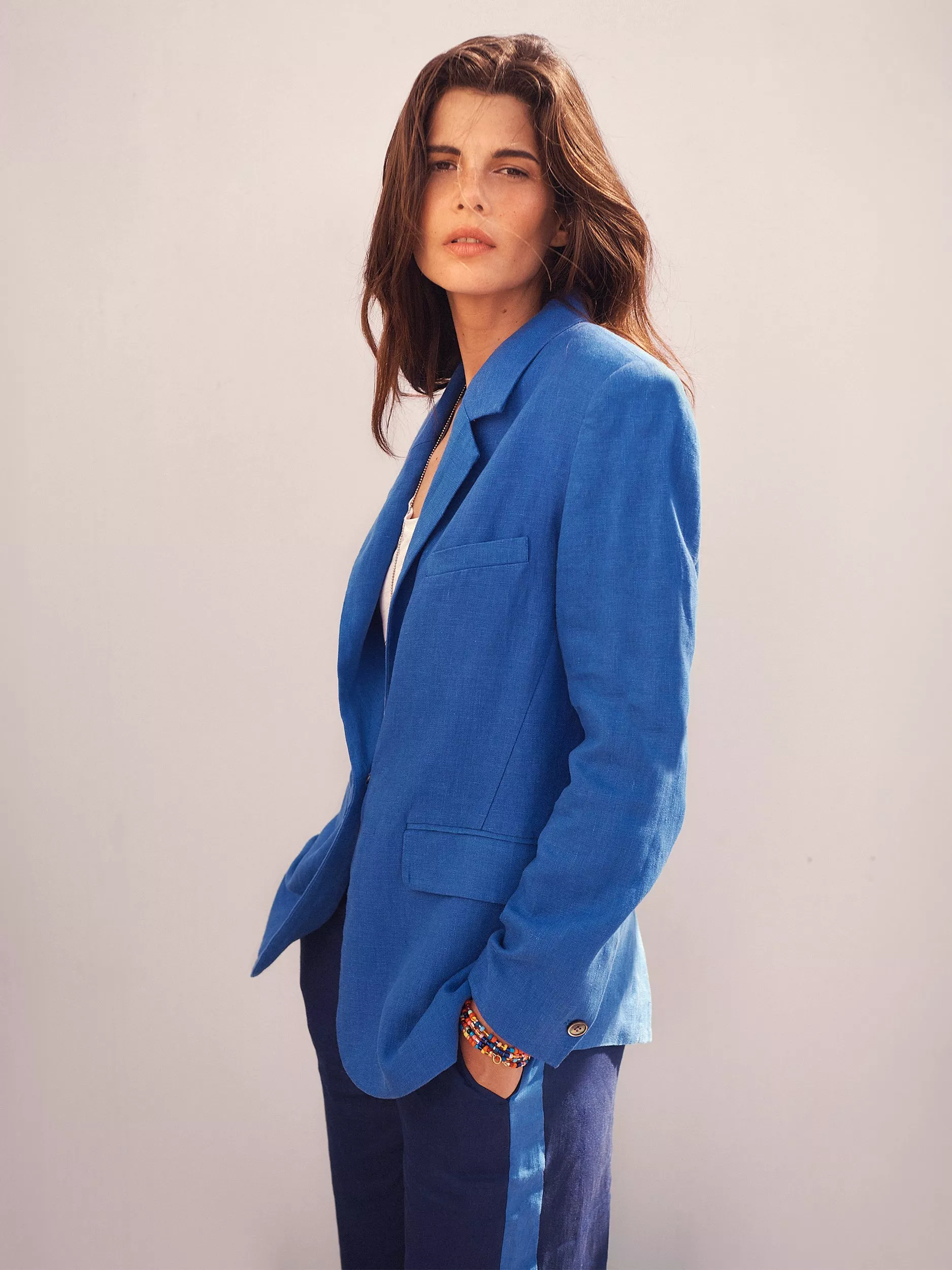 Neatly tailored for a sharp finish, this blazer from NRBY falls to a regular length.