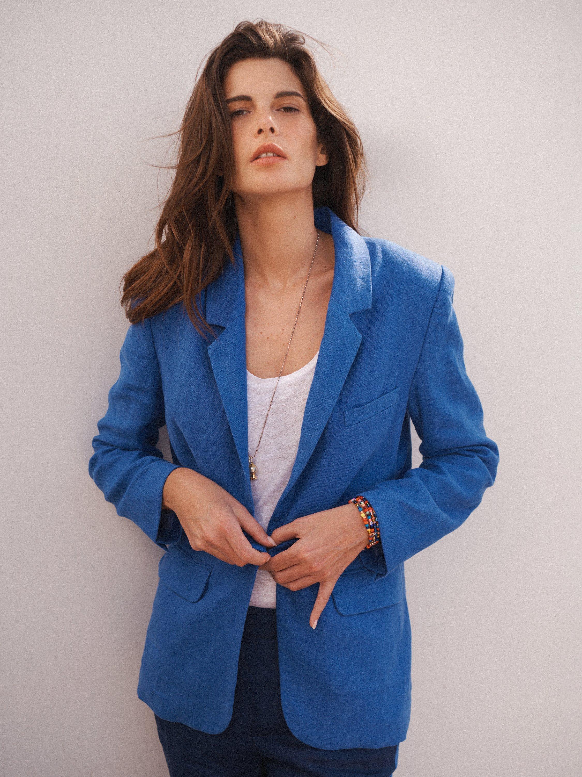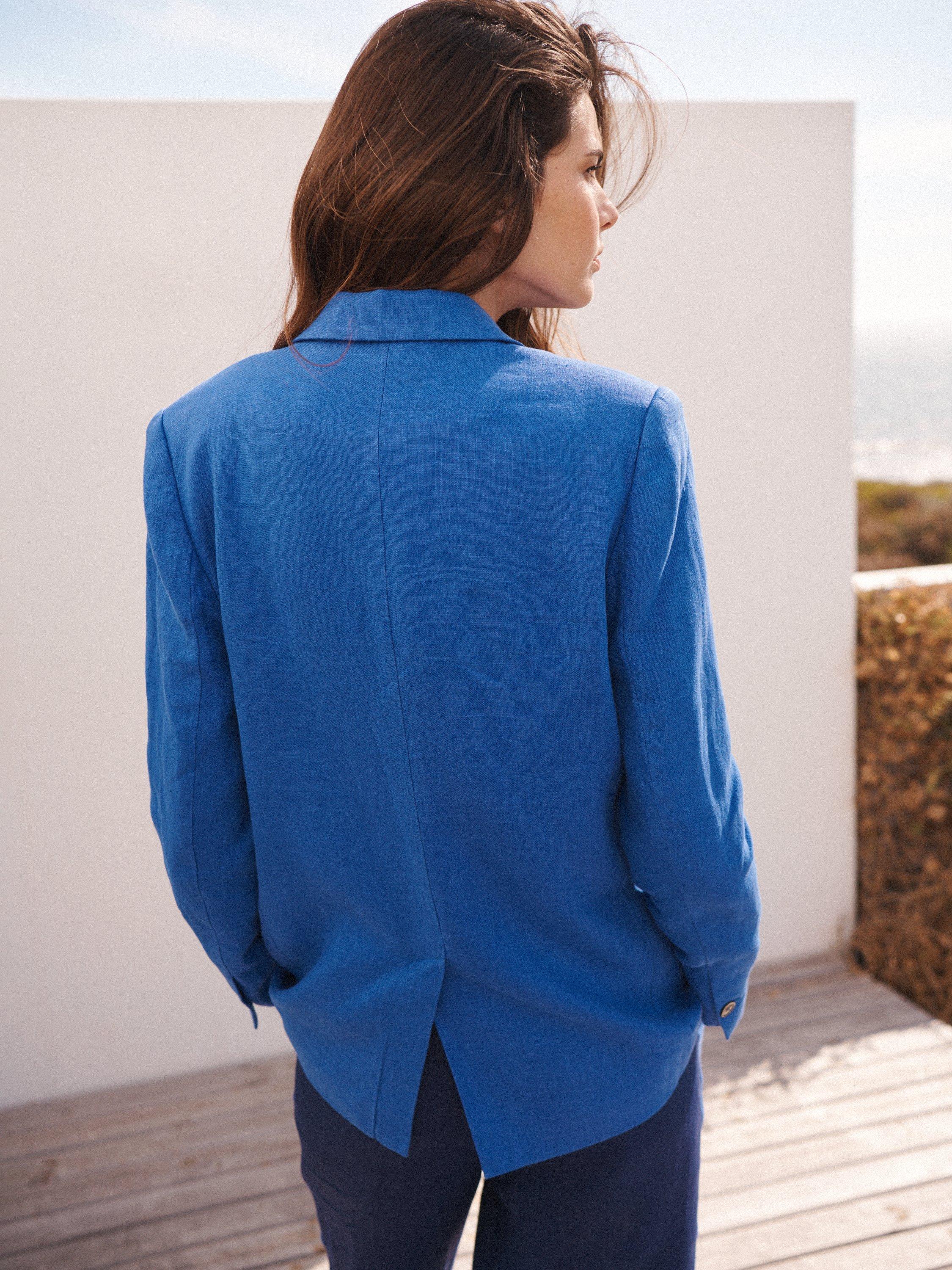 Framed with a collar neckline, it feels light and breathable in pure linen.