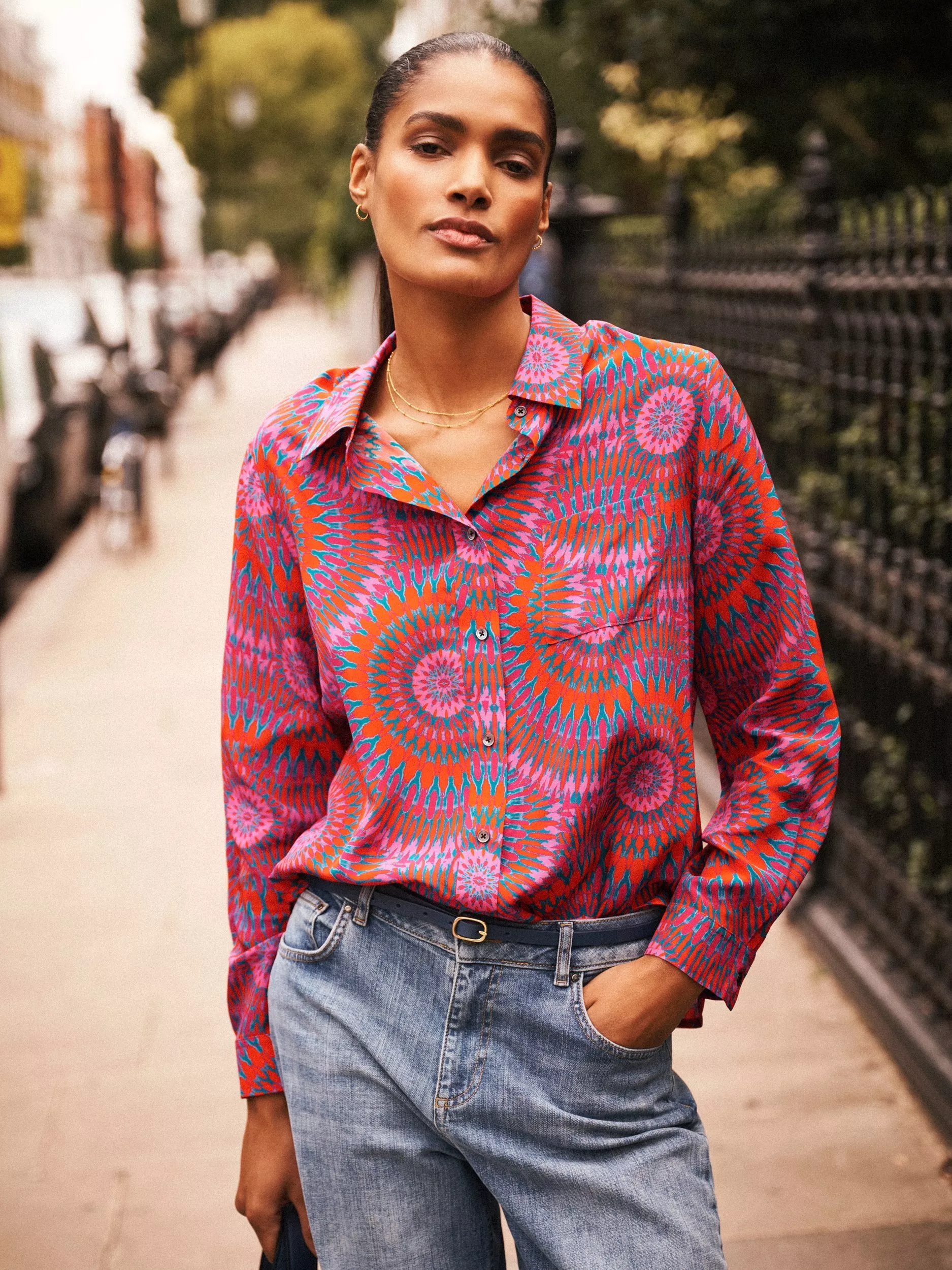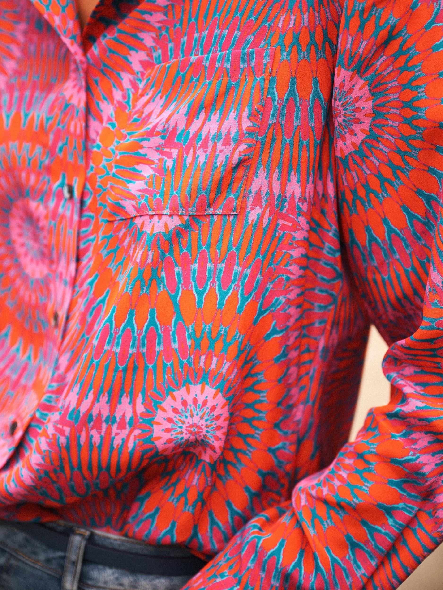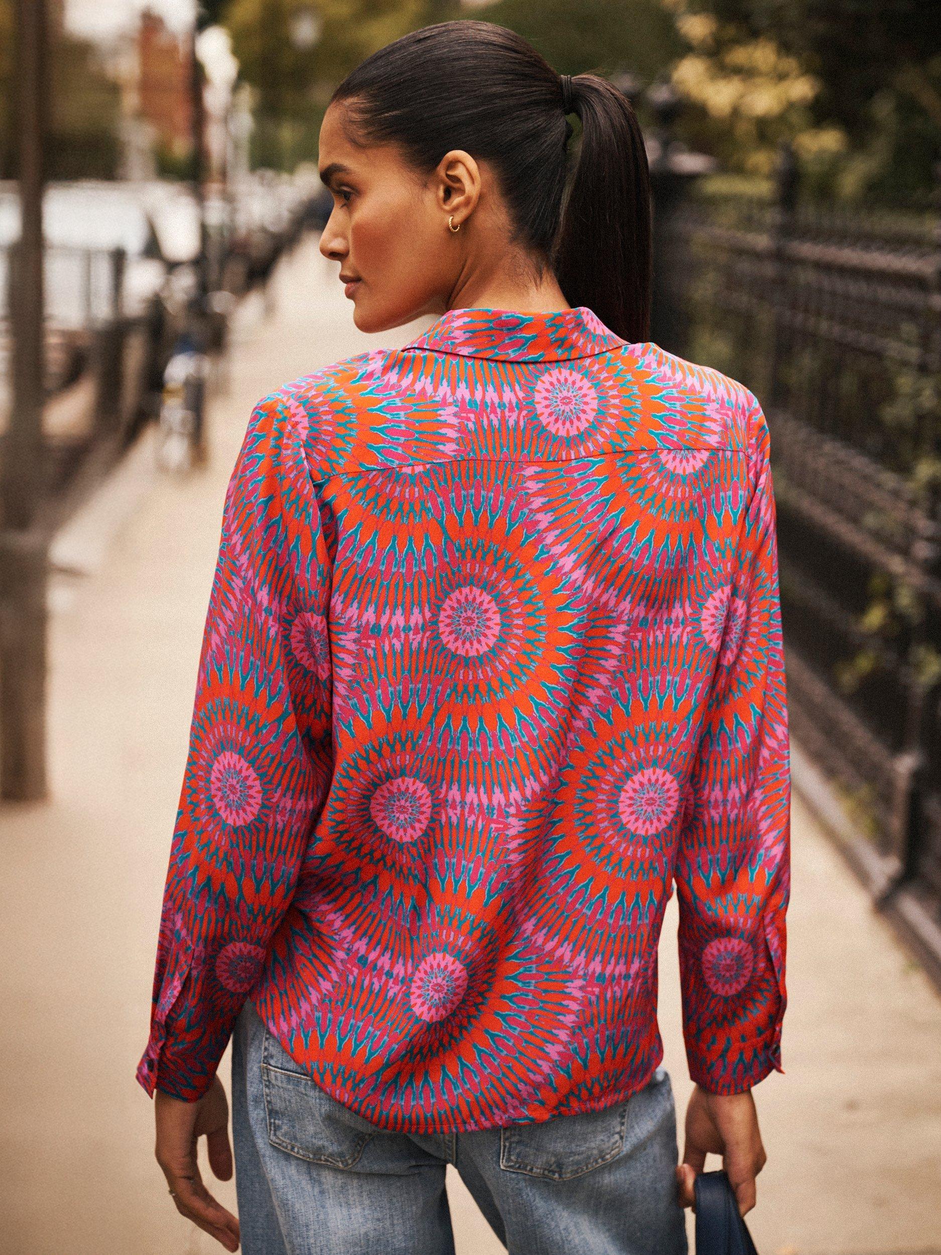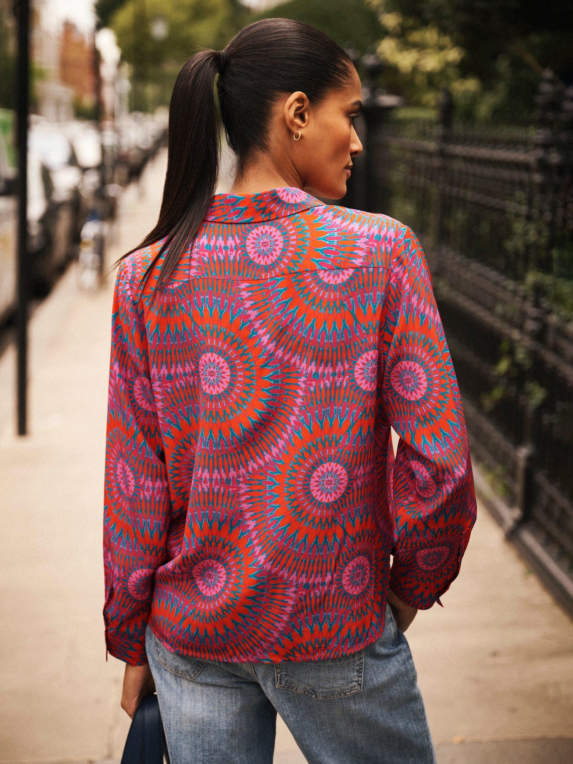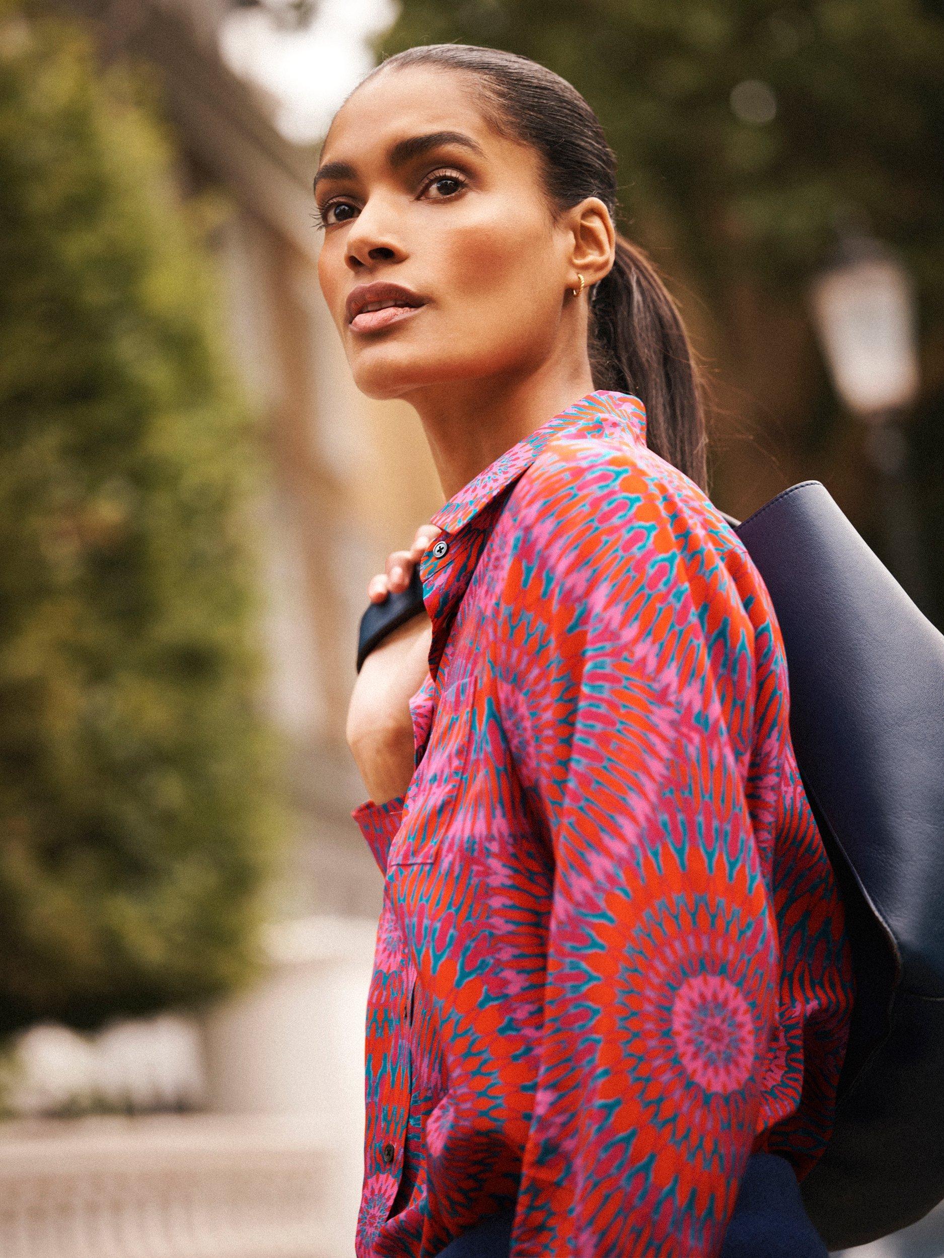 An everyday shirt from NRBY, made in pure silk. Featuring a collar and long sleeves, it's designed with an abstract print. Casual, comfortable, and effortlessly chic.