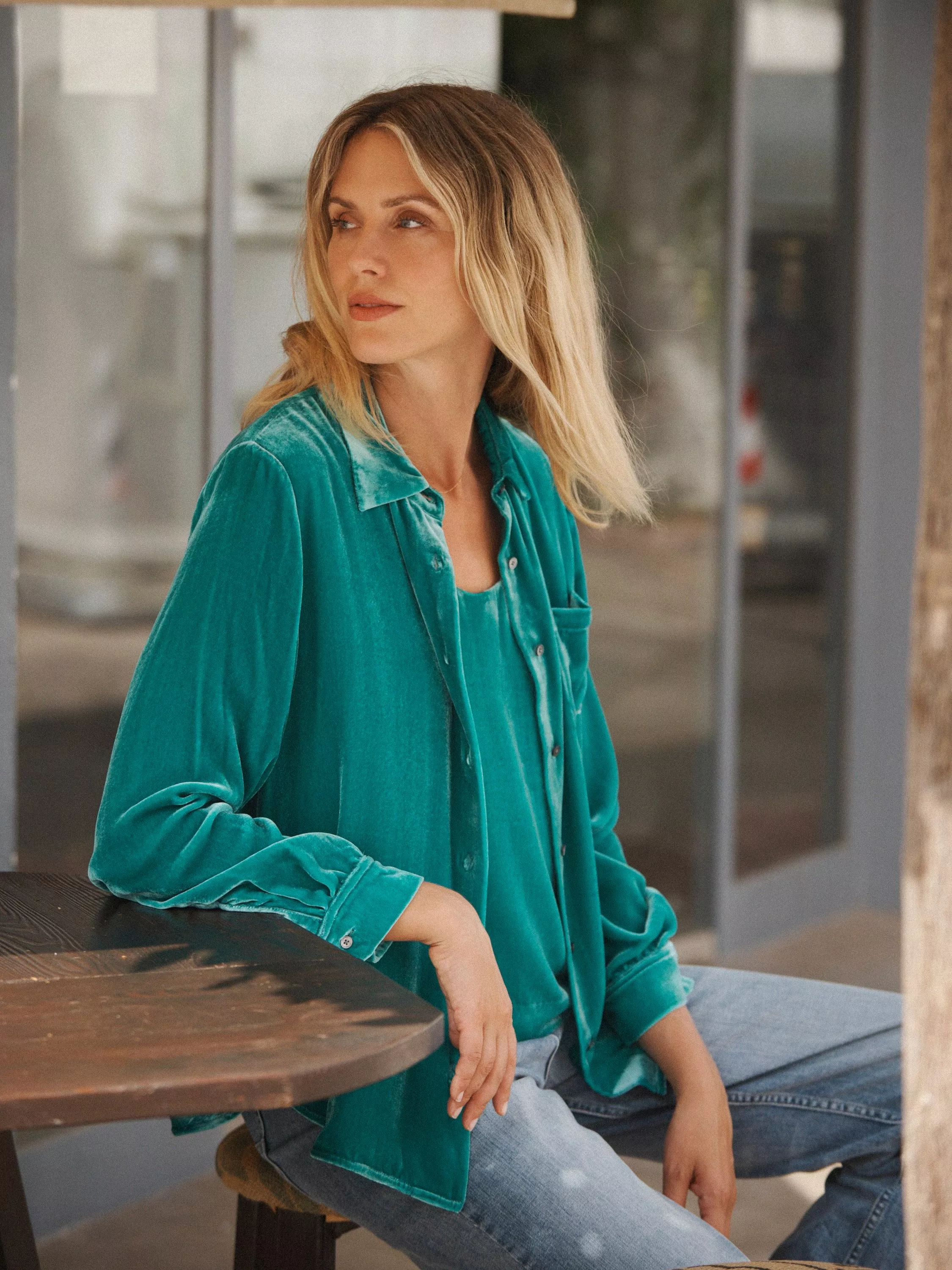 The Chiara velvet shirt takes your easy-going classic and gives it an NRBY twist. Cut in a silk-mix luxurious velvet, this button-through shirt is the one you'll reach for all season long. Whether it s the party-time, or just pottering about day-to-day.