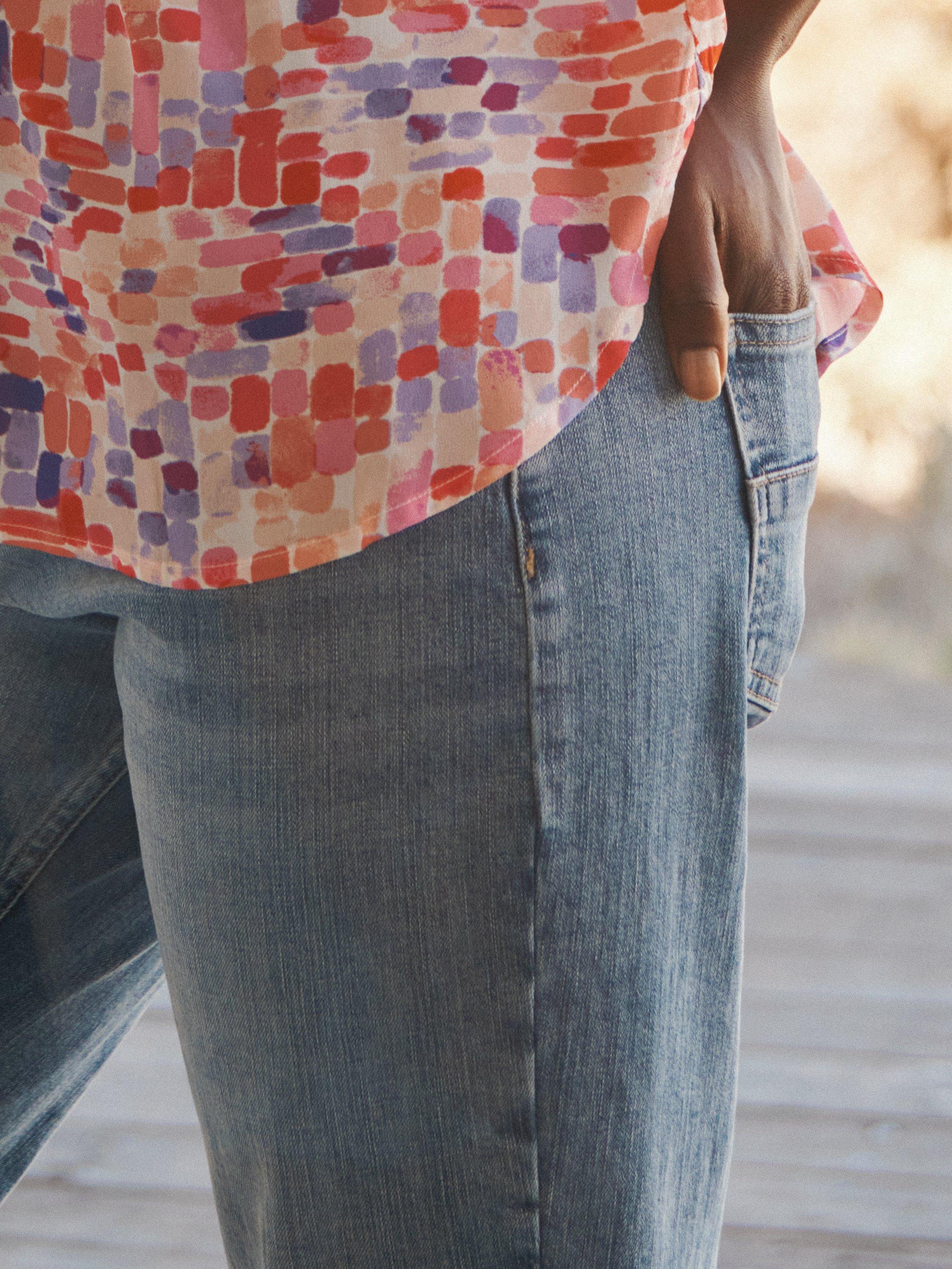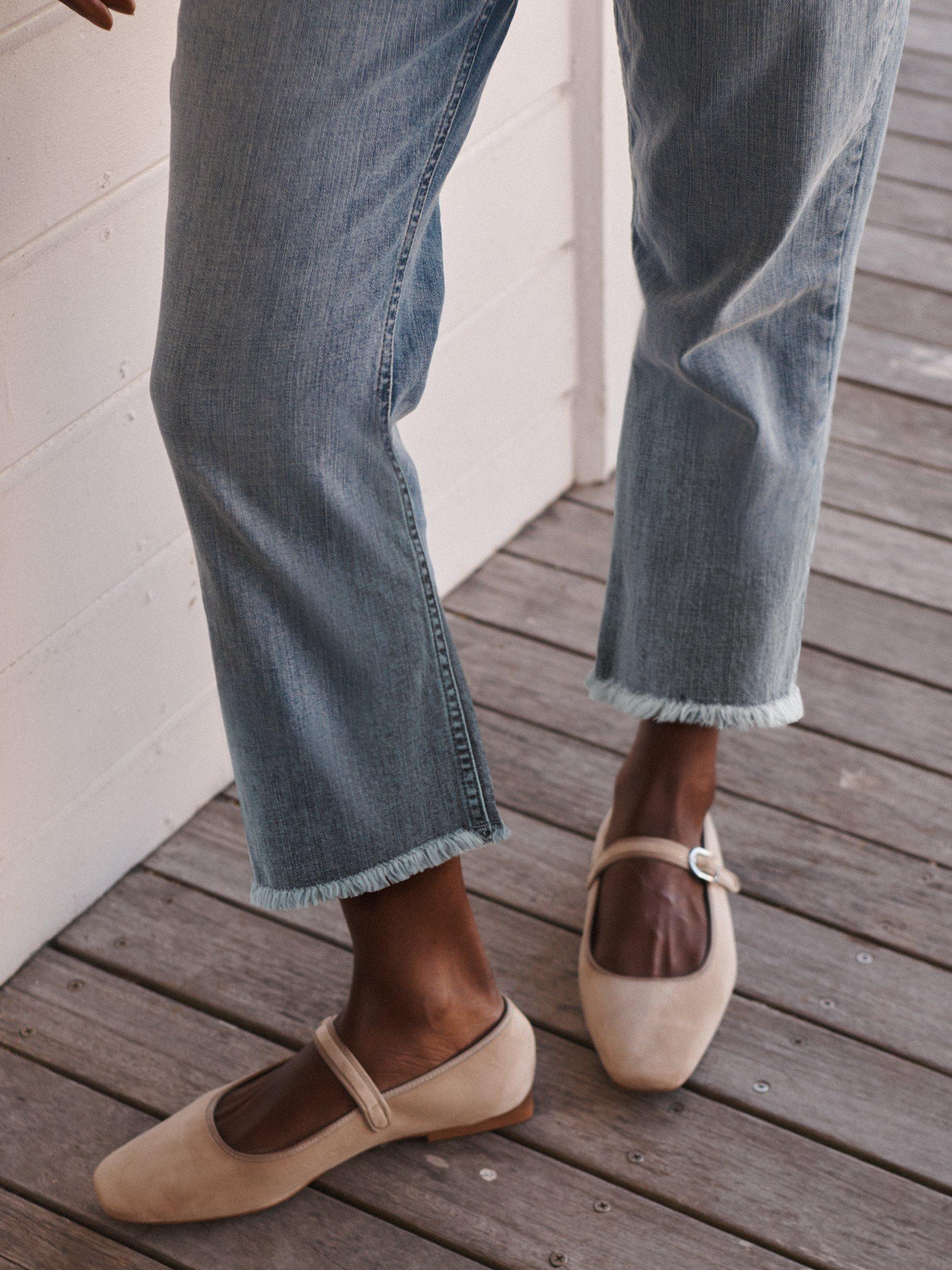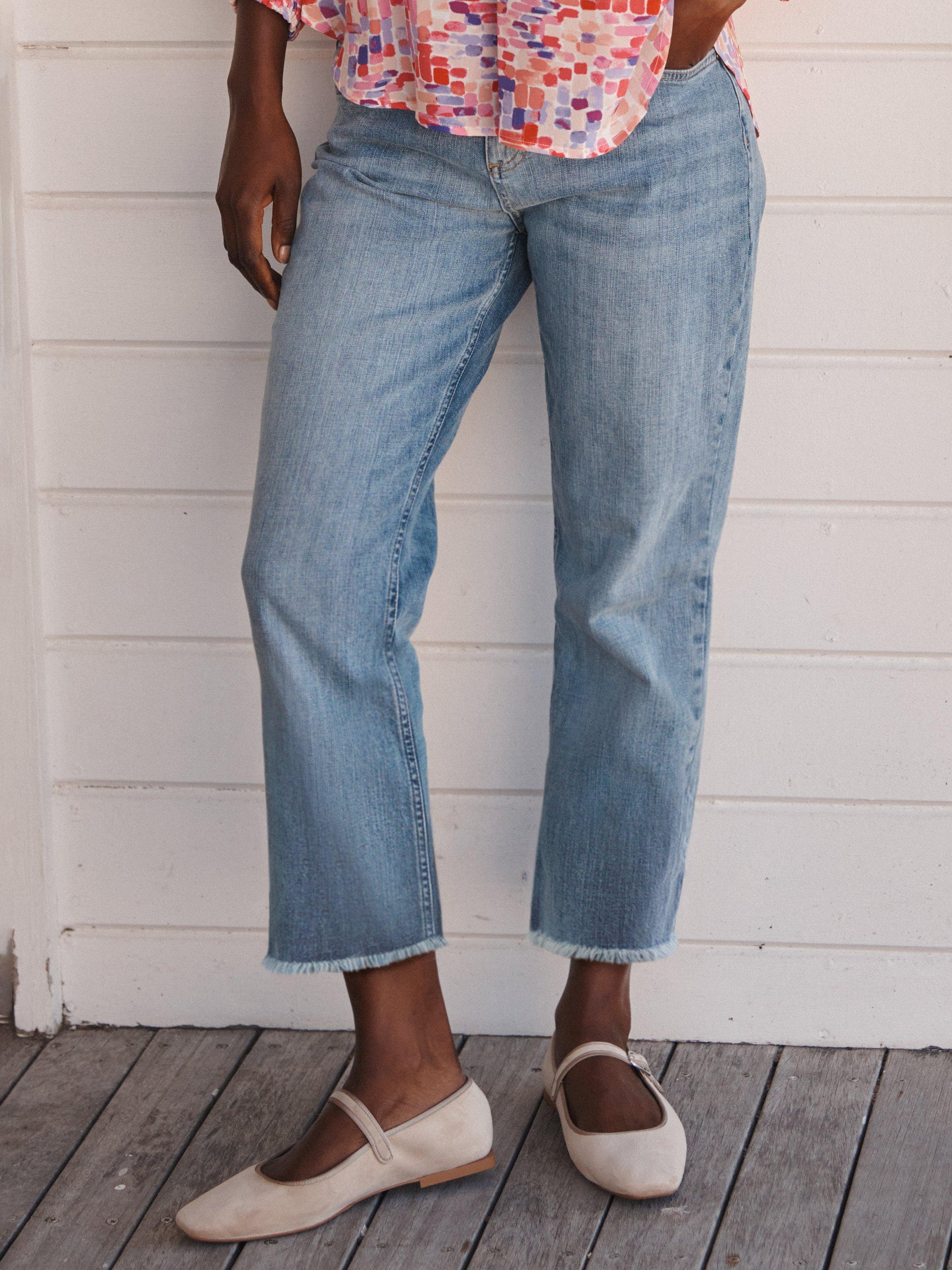 An update on an everyday favourite, that never goes out of style. The Jett boyfriend jean fits on the waist, with a relaxed fit through hip and thigh into a gentle taper in the leg. The frayed-effect hem can be rolled up for a cropped fit with pumps or pair with boots. Pair with your favourite tee, or dress them up in something silk or velvet!