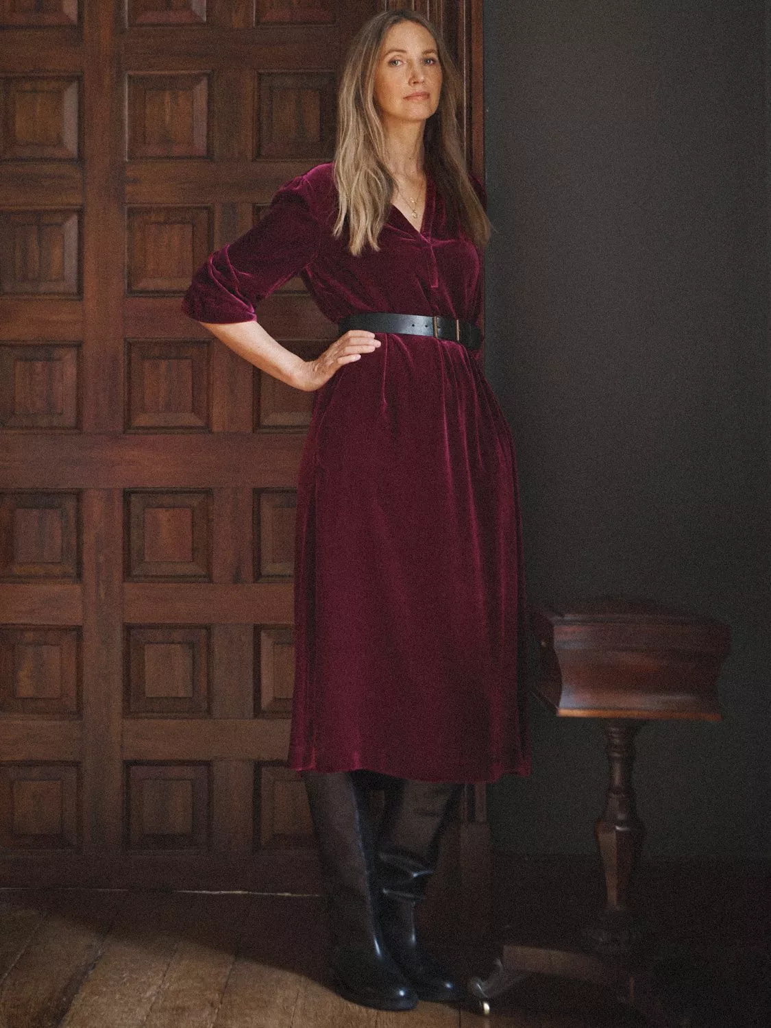 Meet Jo - A new silhouette this season, cut in our luxurious silk-mix velvet. Designed with a relaxed, feminine shape, it features double elasticated frill cuffs and a chic notch neckline, adding subtle sophistication. Perfect for transitioning into cooler months, Jo is effortless elegance.