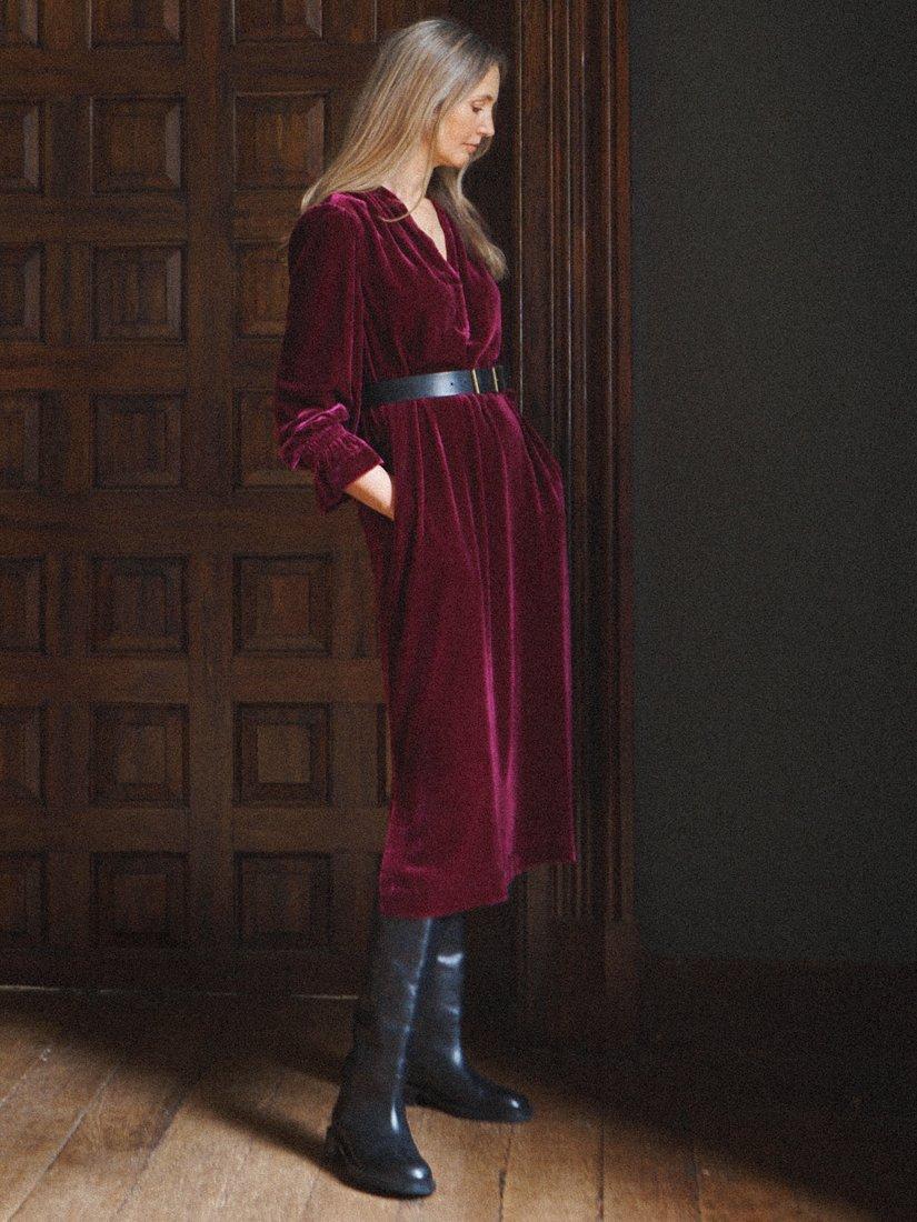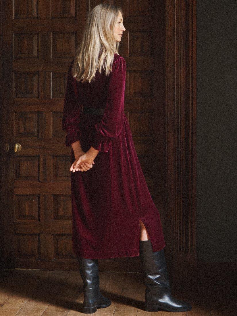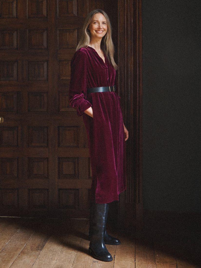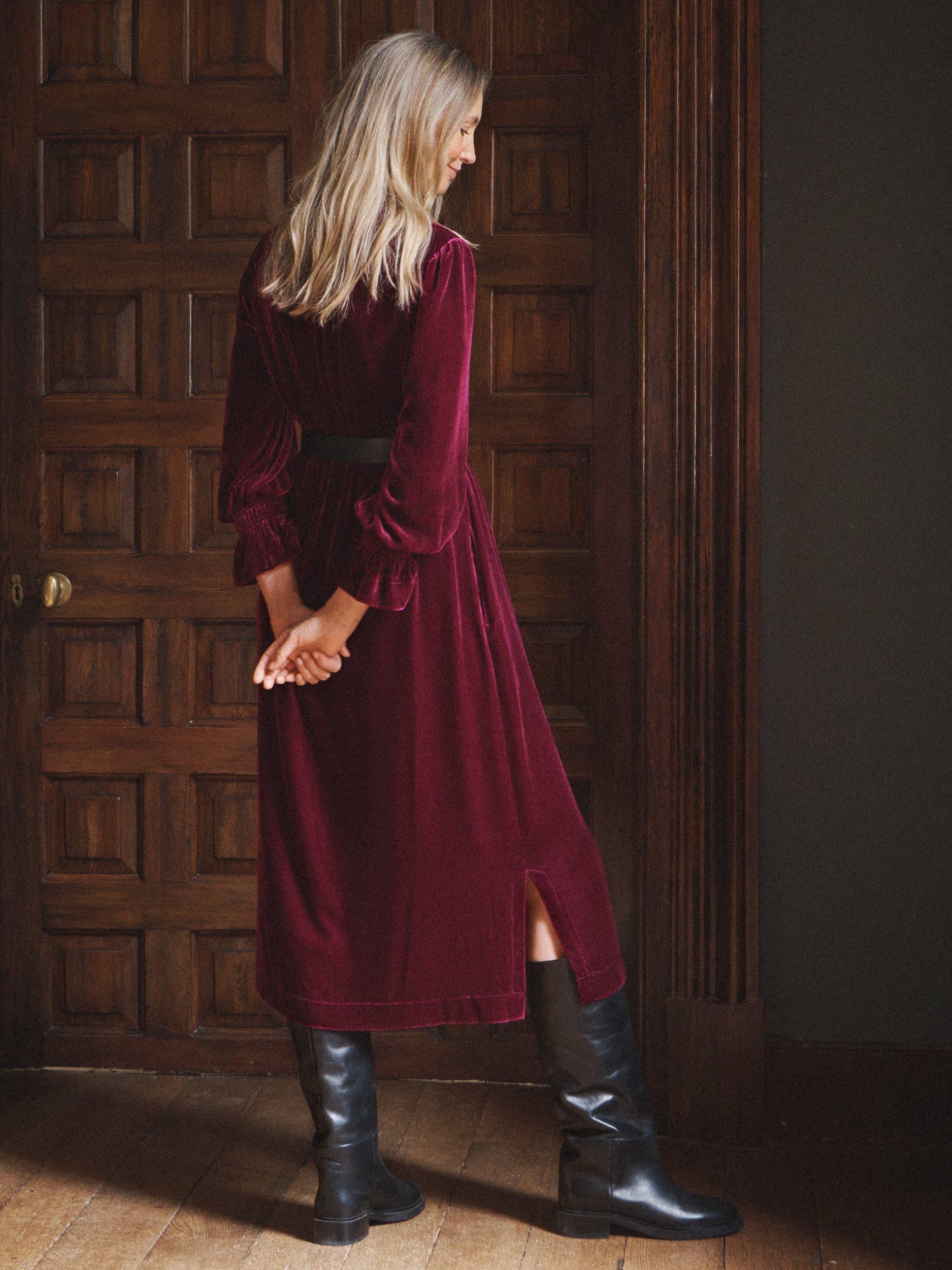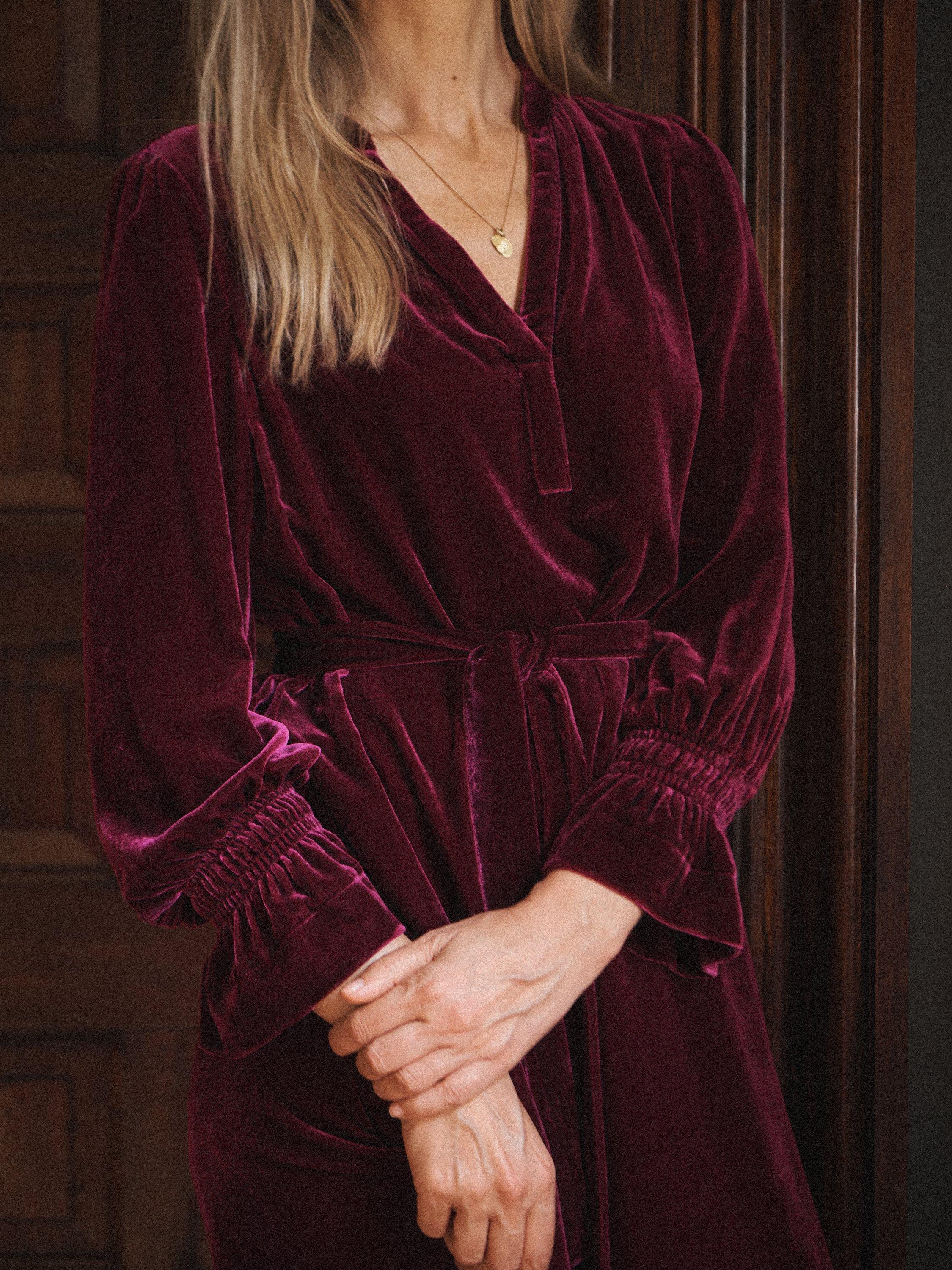 Meet Jo - A new silhouette this season, cut in our luxurious silk-mix velvet. Designed with a relaxed, feminine shape, it features double elasticated frill cuffs and a chic notch neckline, adding subtle sophistication. Perfect for transitioning into cooler months, Jo is effortless elegance.