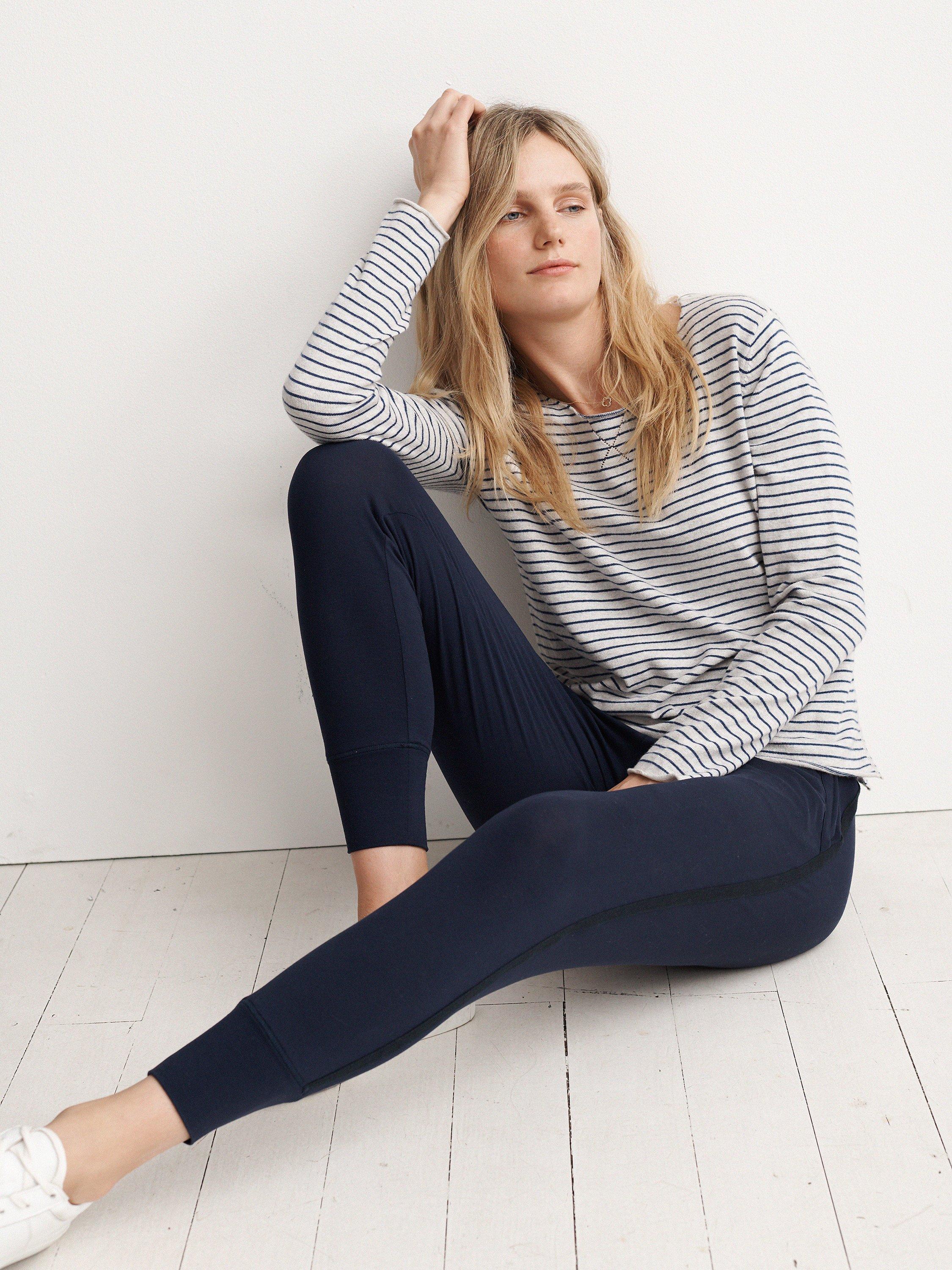 Made from supersoft jersey fabric for soft-to-touch comfort, these Lila joggers from NRBY are a great pull-on piece that will serve you well on many an occasion. Equipped with an elasticated waistband for ease of wear, these joggers also features pockets and a tonal herringbone tape trim down the side for a fetching finish.