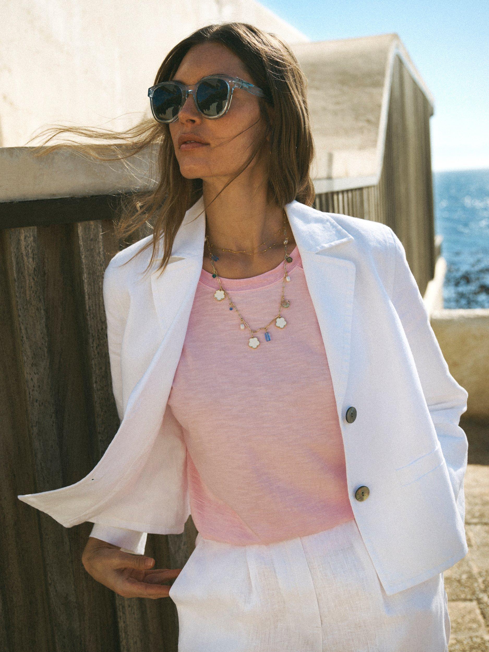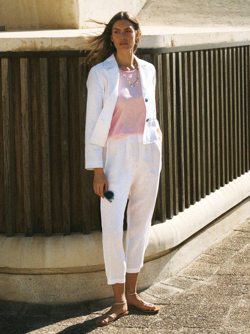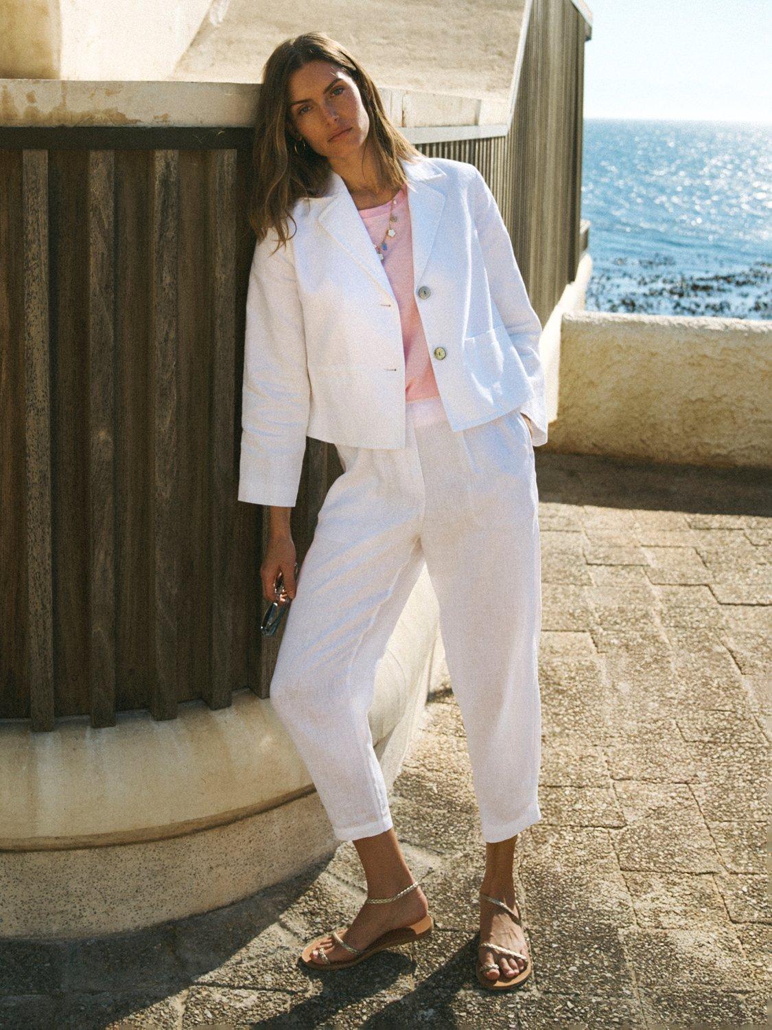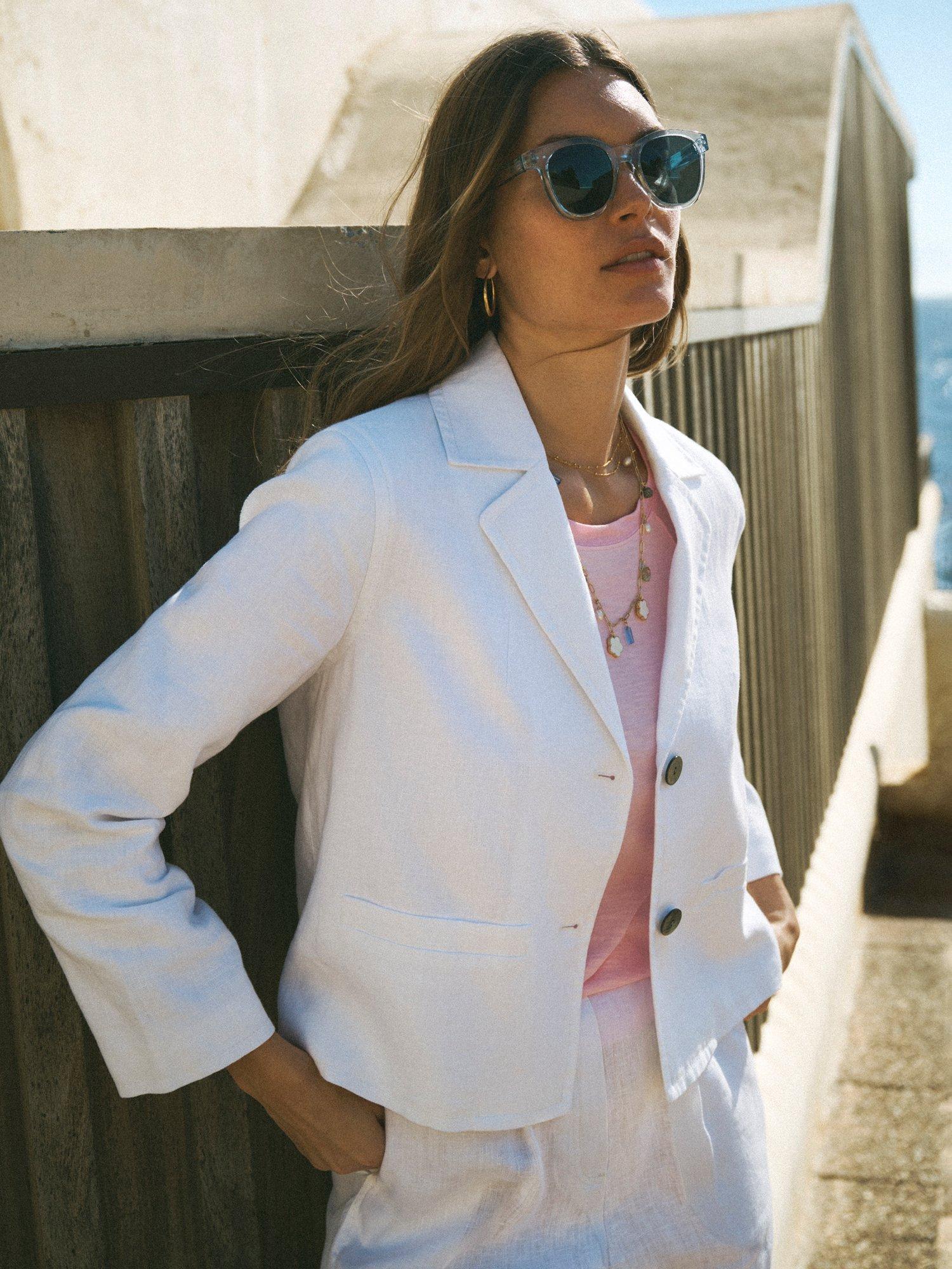 The Marie jacket is a modern summer layer designed to work hard for your wardrobe. With a neat cropped fit, it's finished with mother-of-pearl buttons and fully lined in breathable cotton for all-day comfort.