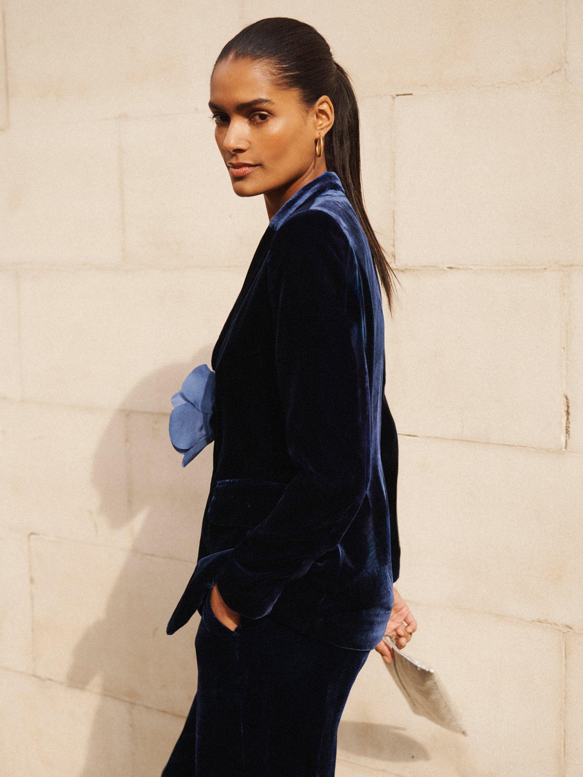 In sumptuous velvet mix, May is cut to a relaxed-fit silhouette with peak lapels, a single-breasted front that opens to a satin-lined interior. Throw on over a white t-shirt and jeans, or wear alone.