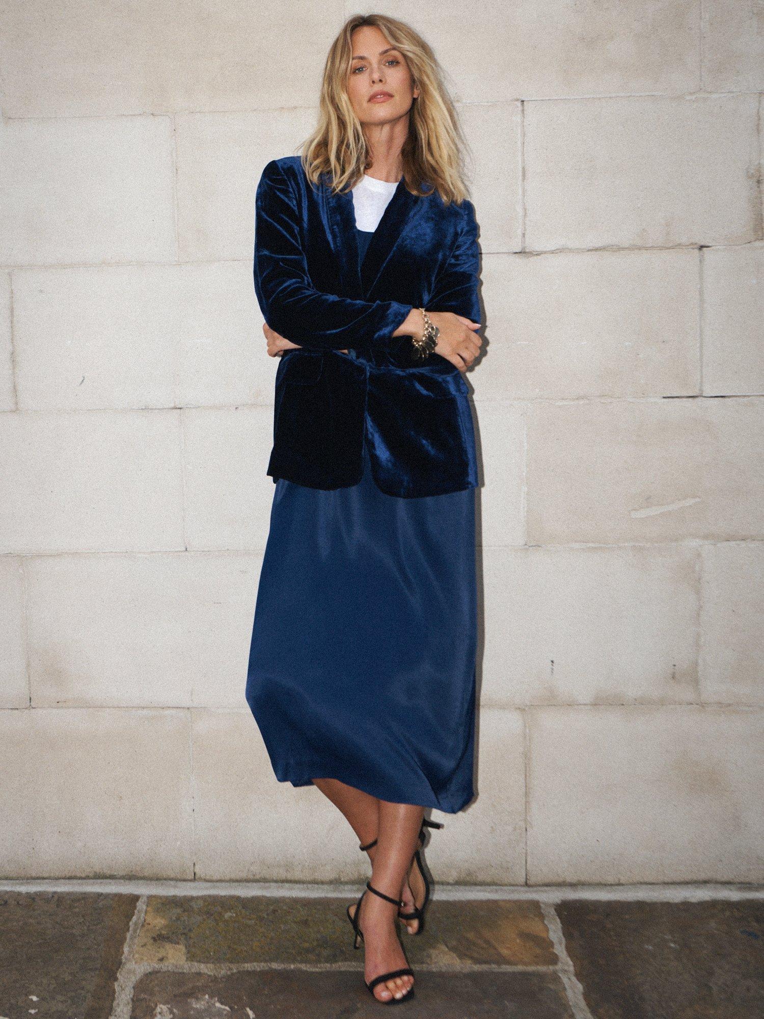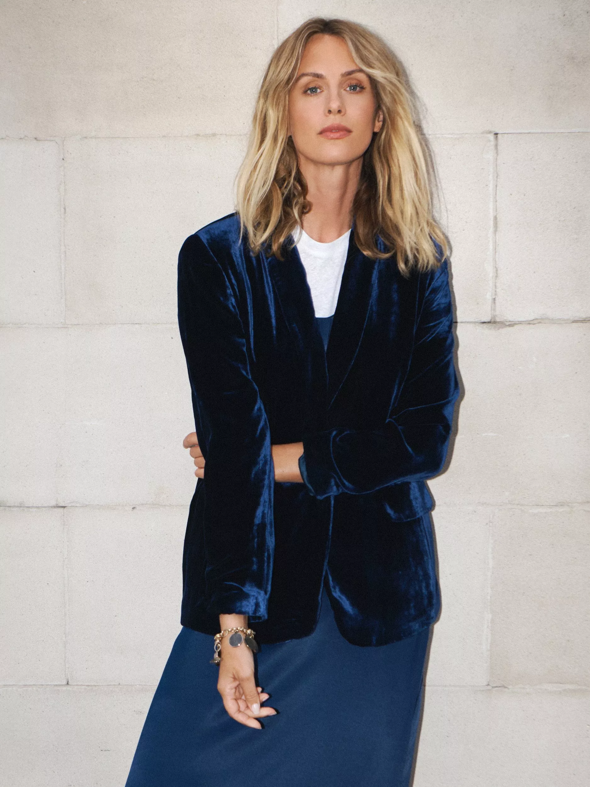 Available in new jewel-toned shades this season, say hello to the May velvet blazer. In a sumptuous silk-velvet mix, May is cut to a slim-fit silhouette with peak lapels and a single-breasted front that opens to a satin lined interior.