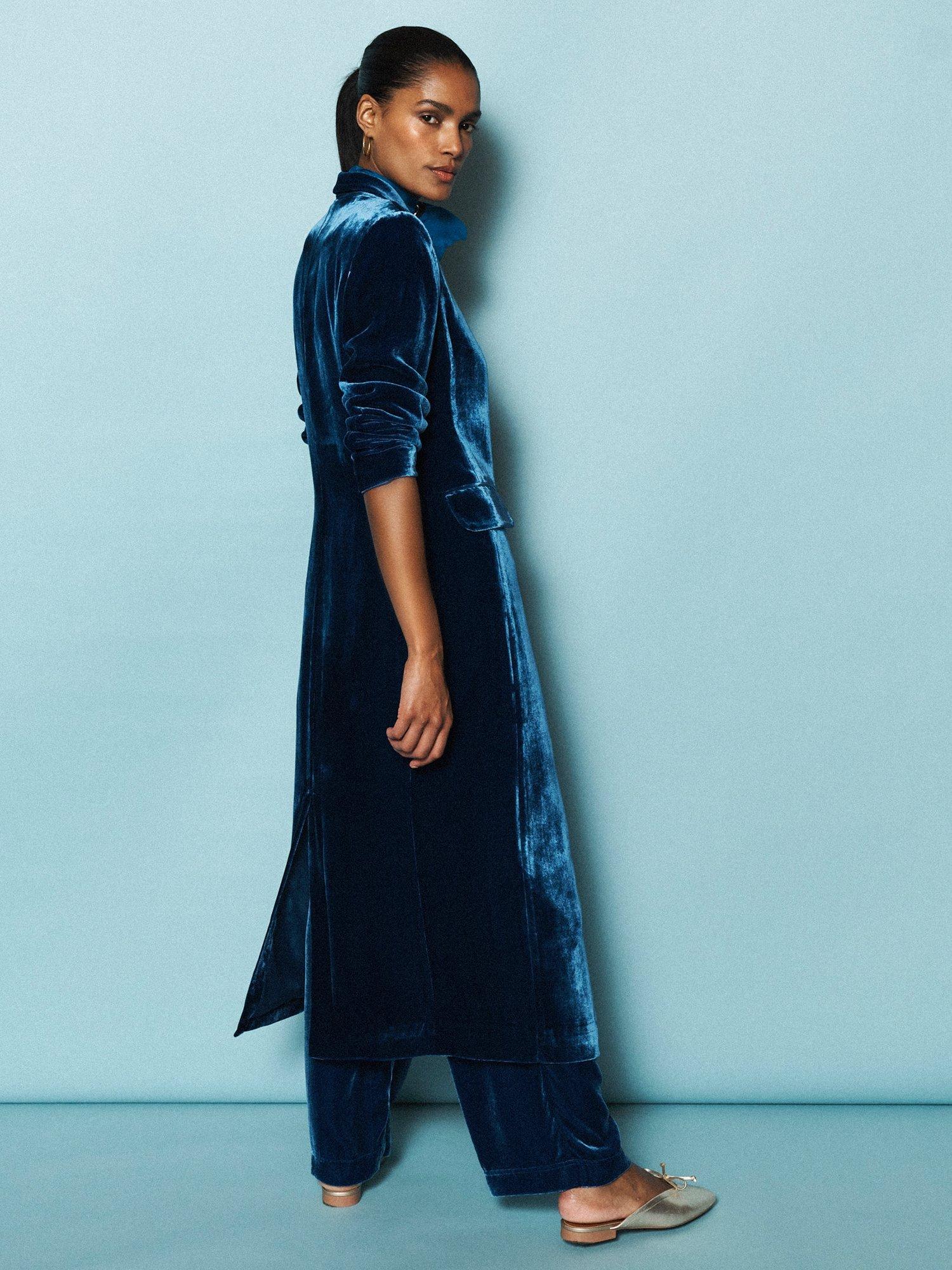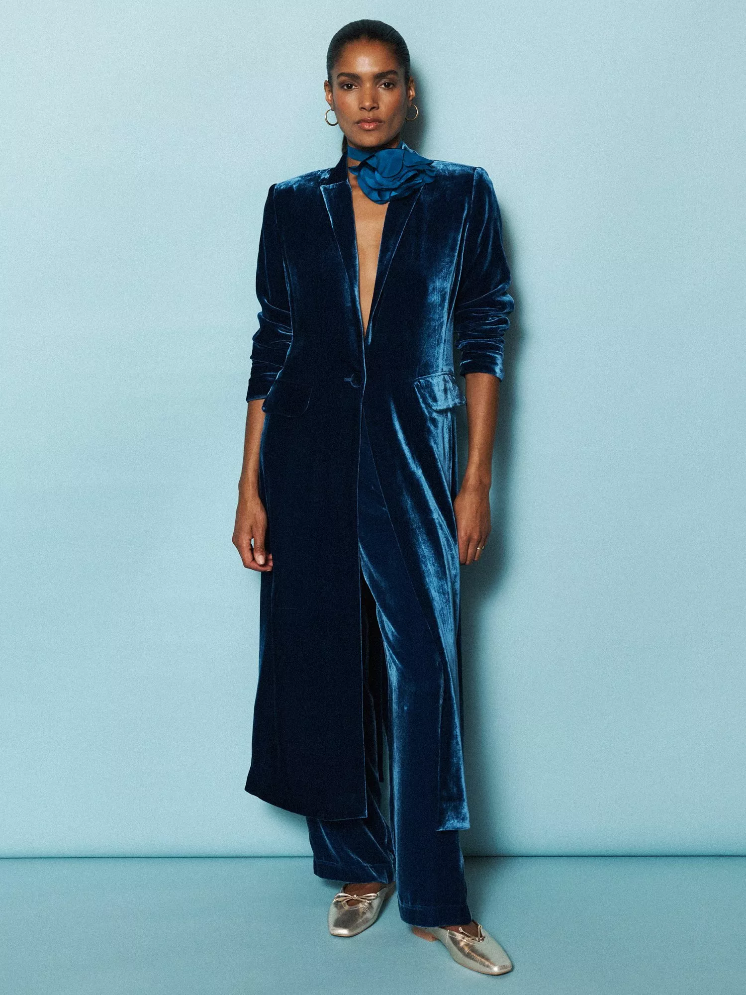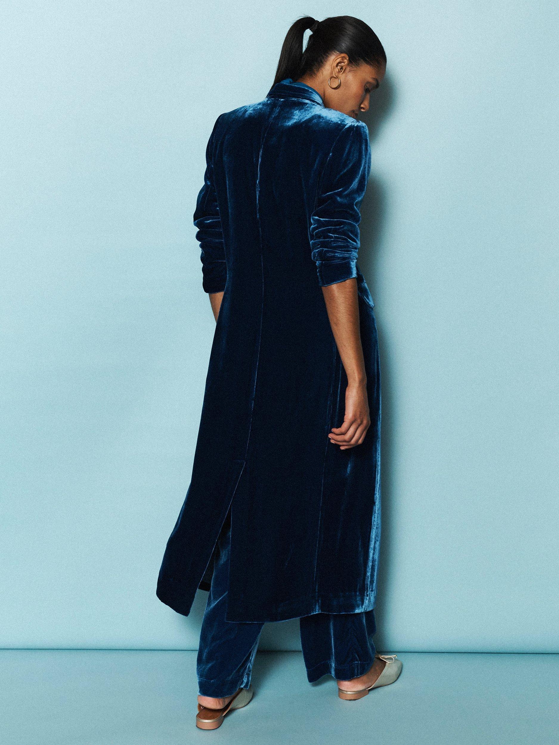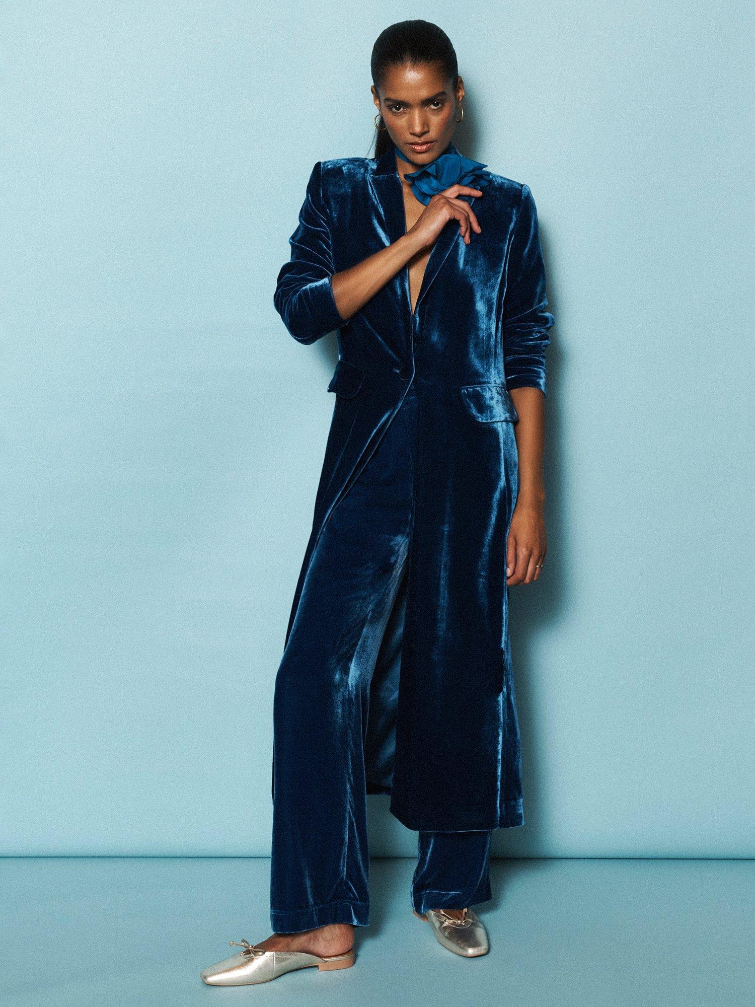 This is a show-stopping piece you’ll reach for again and again. Wear with jeans and t-shirt or throw over your favourite dress. Odette is a coat is designed to flatter, with a slightly waisted silhouette, notch lapels, single button fastening. The feel of a tuxedo, with the glamour of a maxi coat.