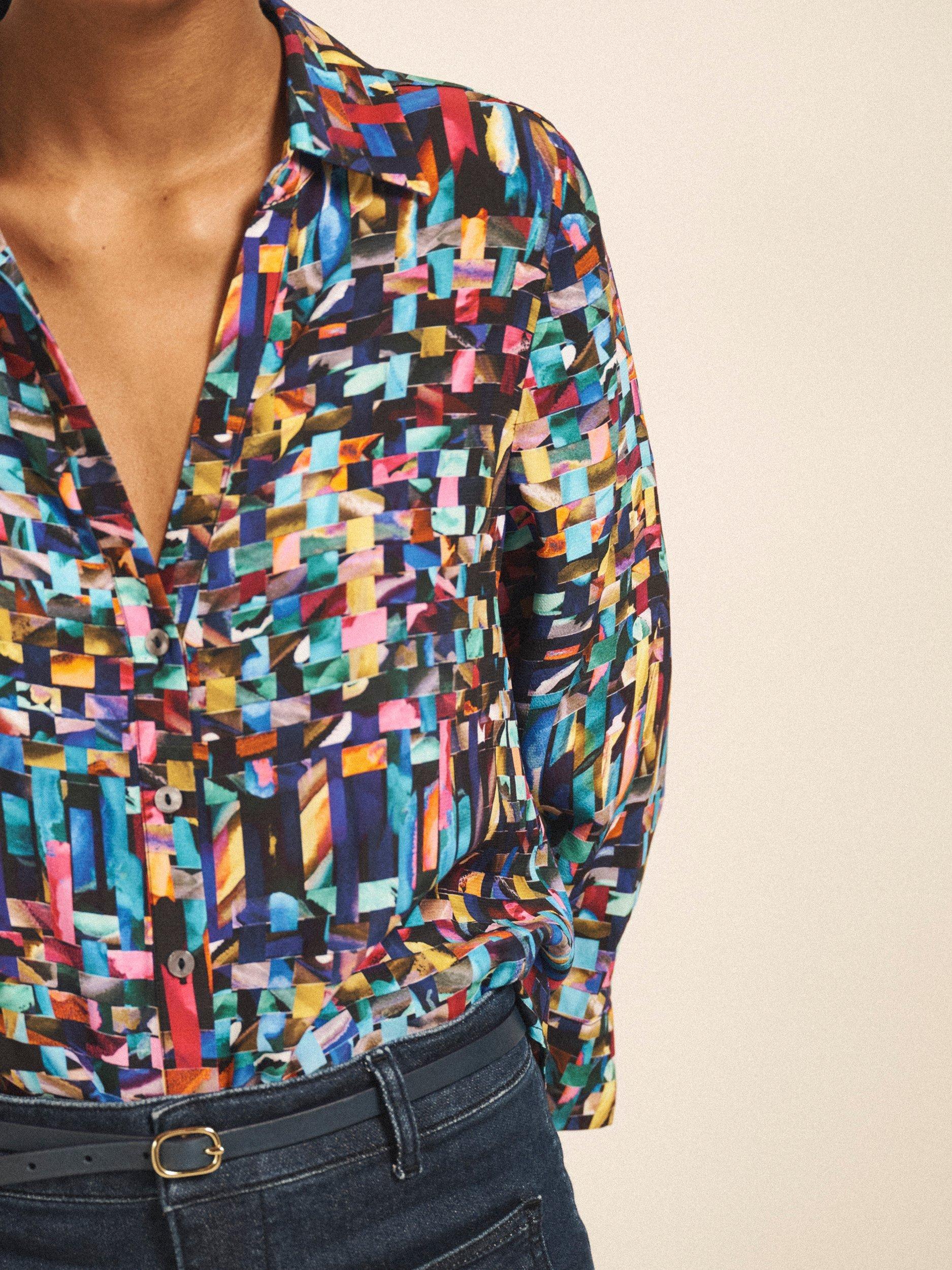 Meet Opal, your new go-to shirt in a ribbon print. Crafted in lightweight viscose, this button-down style features a classic shirt collar, 3/4 length sleeves, and a box-pleat at the back for ease and movement. Effortlessly chic - perfect for pairing with denim or velvet separates.