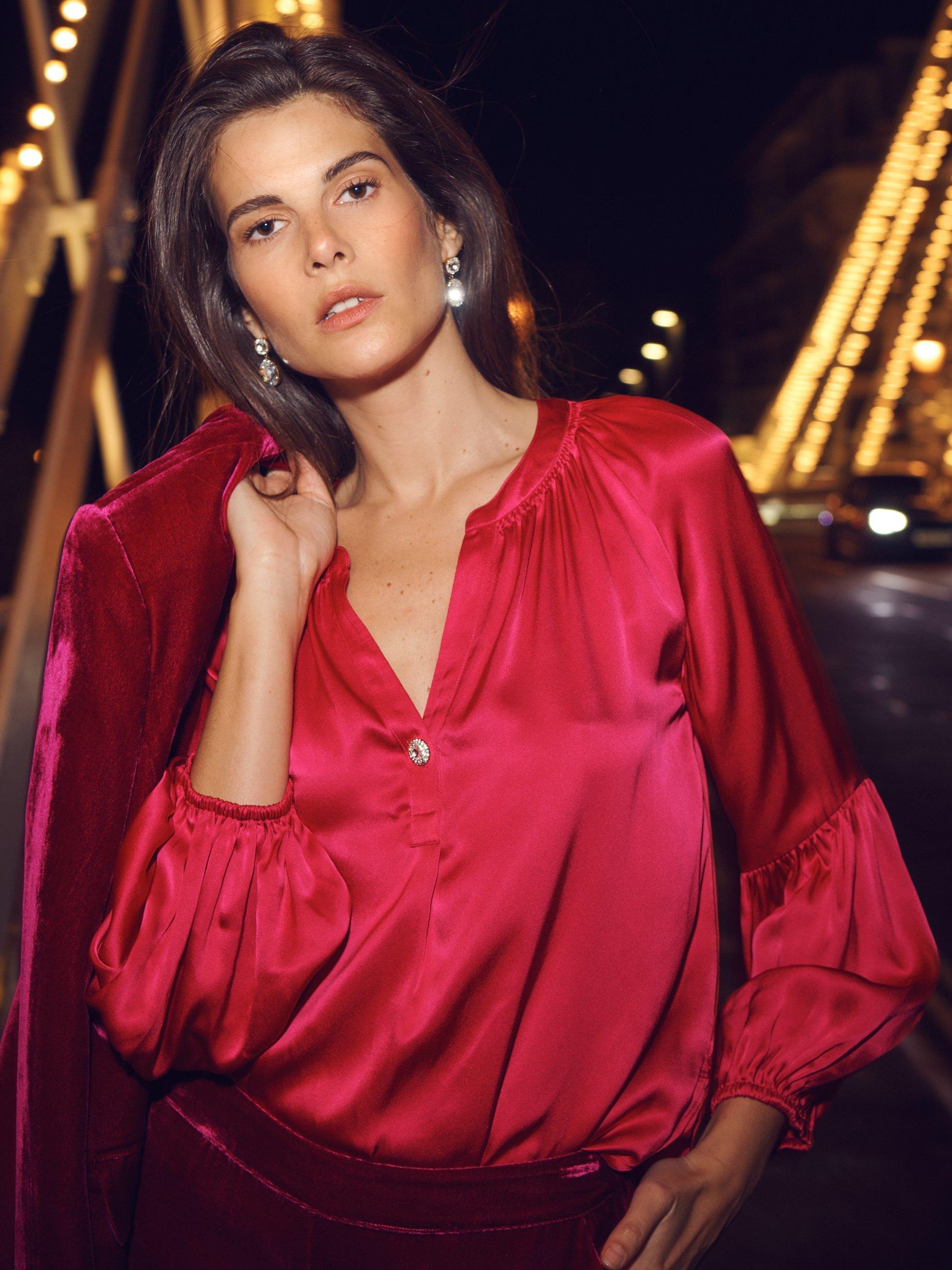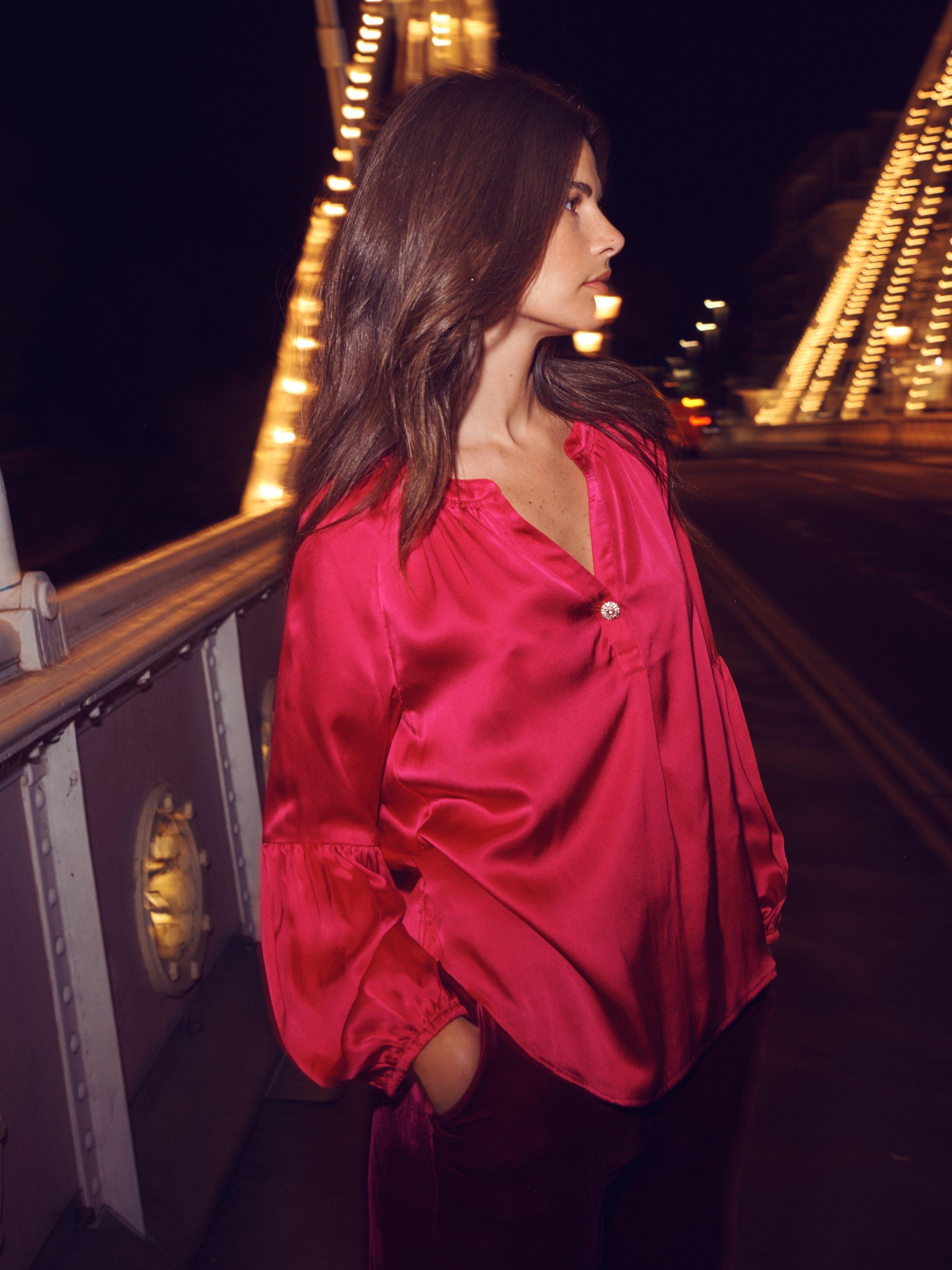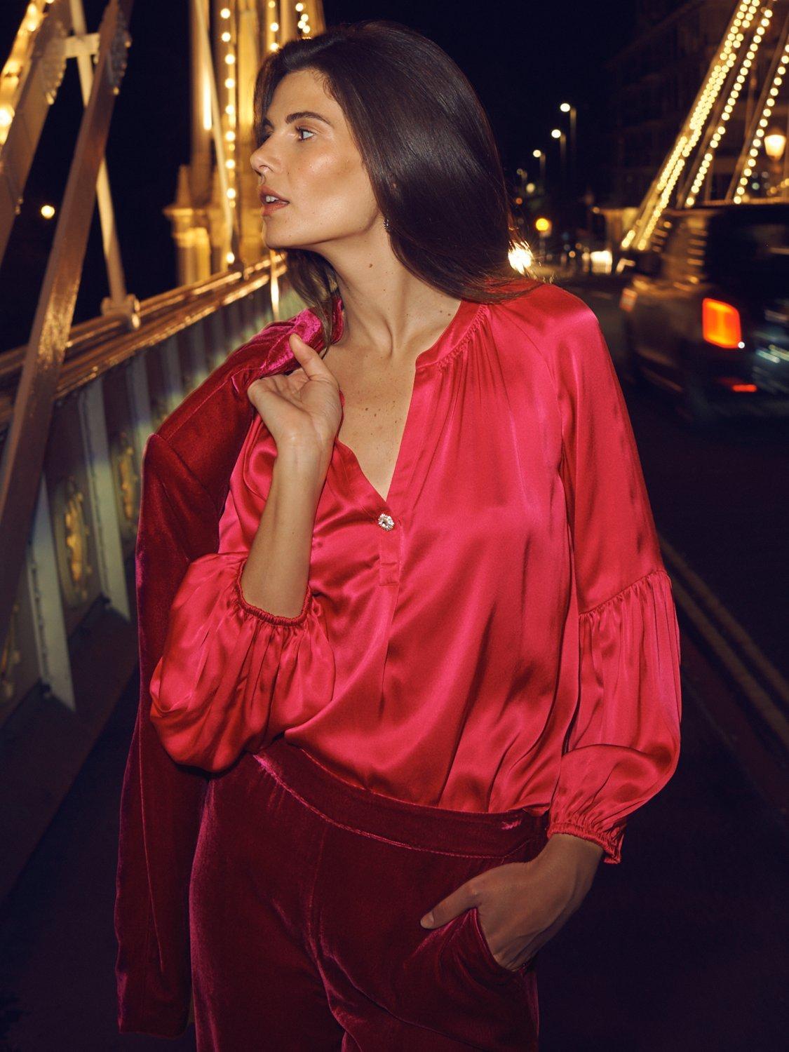 Style and comfort combined, Ophelia is an easy silhouette with a flattering v-neckline, cut in a soft washed silk. Simple, but with spectacular gathered sleeves. Push the easy elasticated cuff up to your elbows for a fluted sleeve look. Loose fitting, whether worn tucked in or tunic style - ready to be styled up or down whatever the moment.