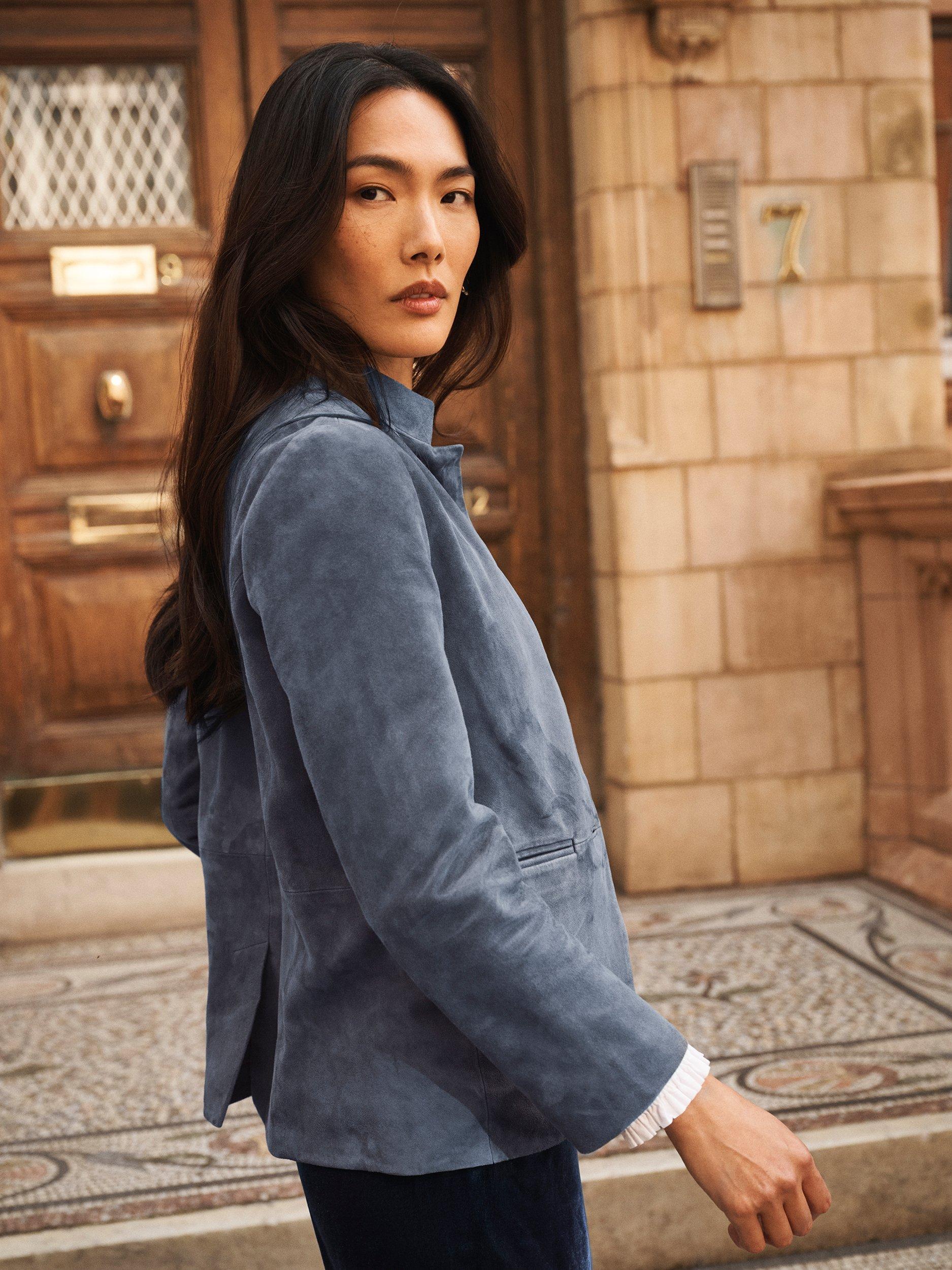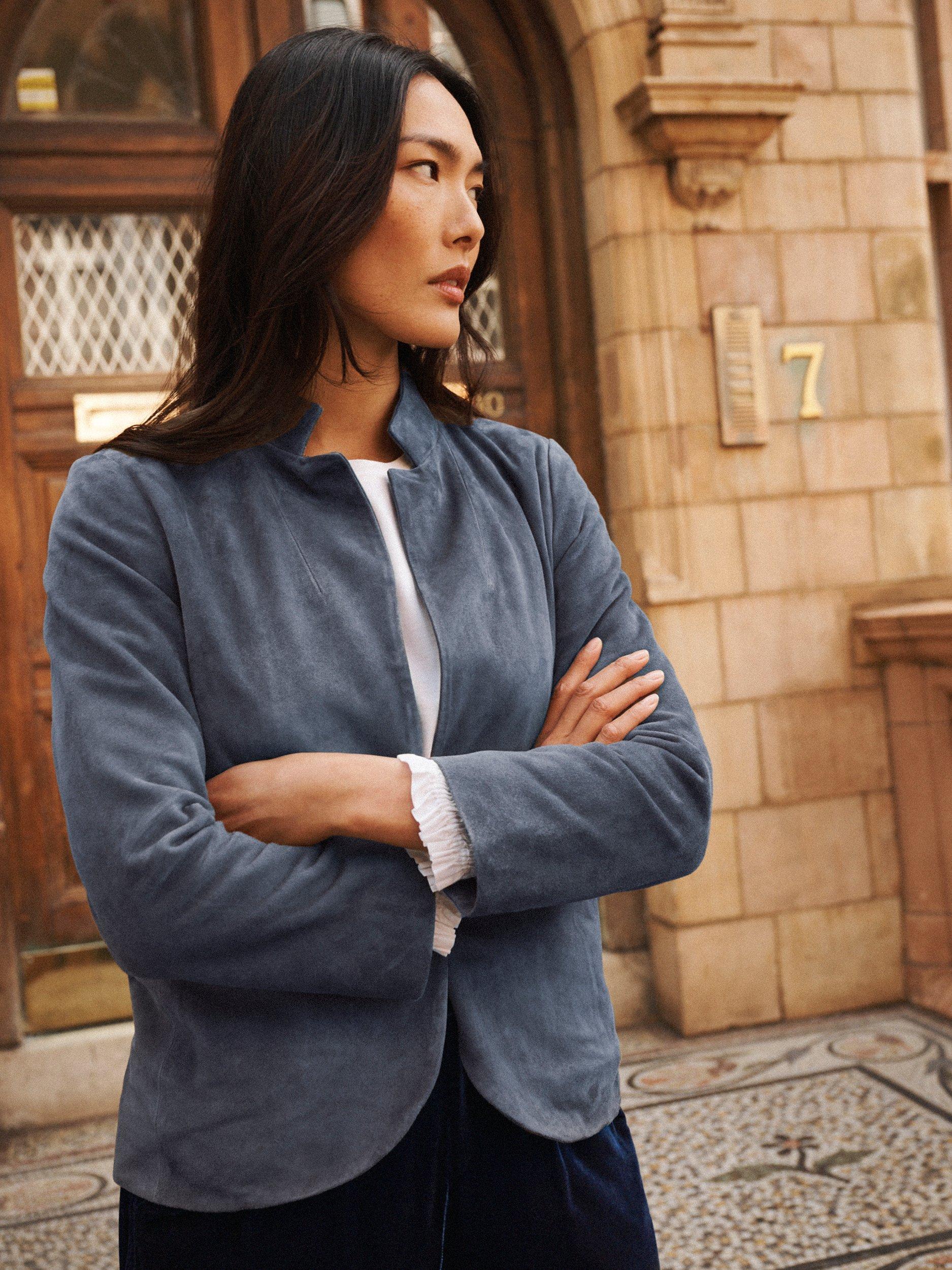 NRBYRobyn Pure Suede Jacket, Denim Blue