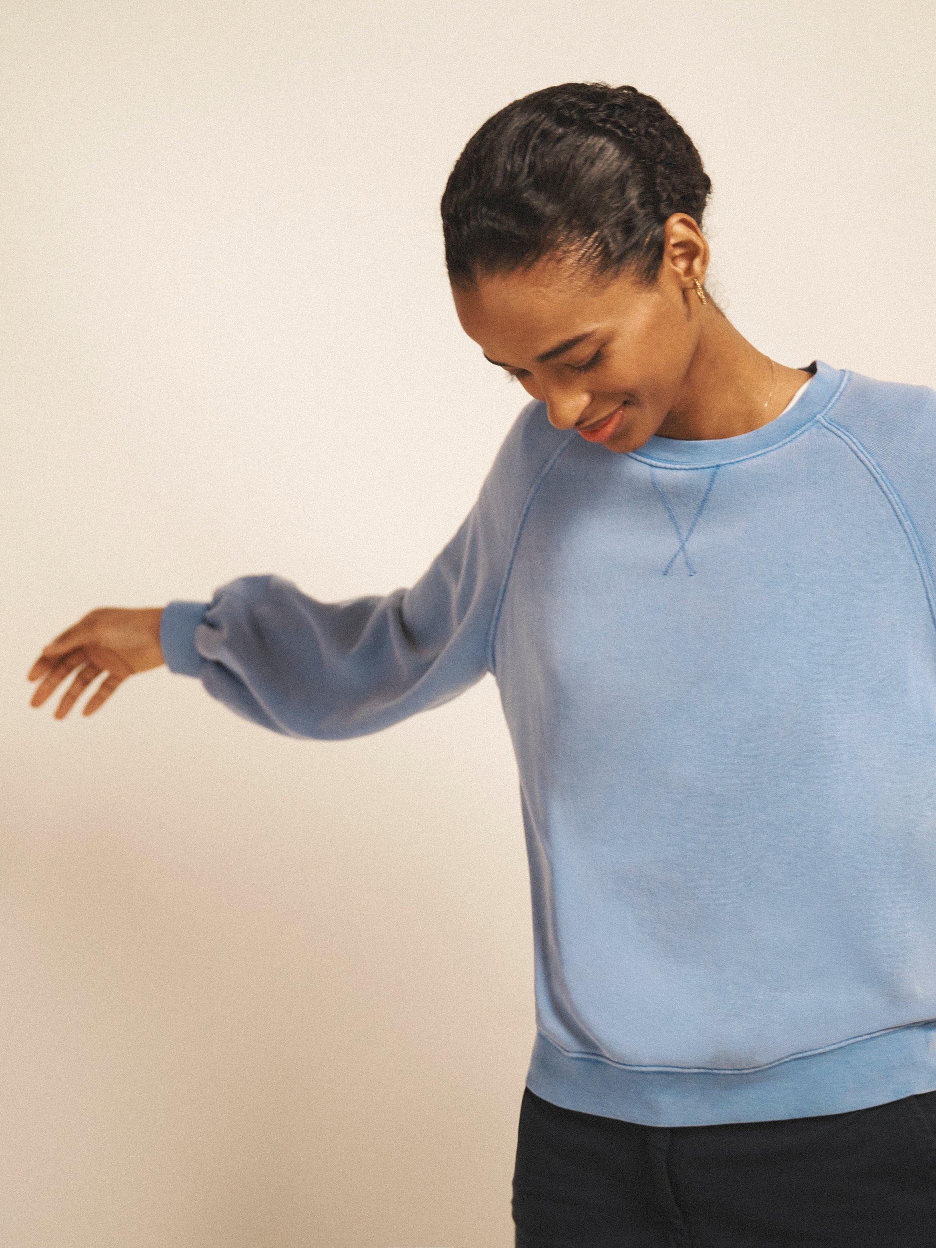 Garment-dyed for an authentic, laundered feel. Soft balloon sleeves and a centre back seam detail add a feminine twist to this authentic sweatshirt silhouette. A wardrobe essential that’s as cosy as it is versatile.