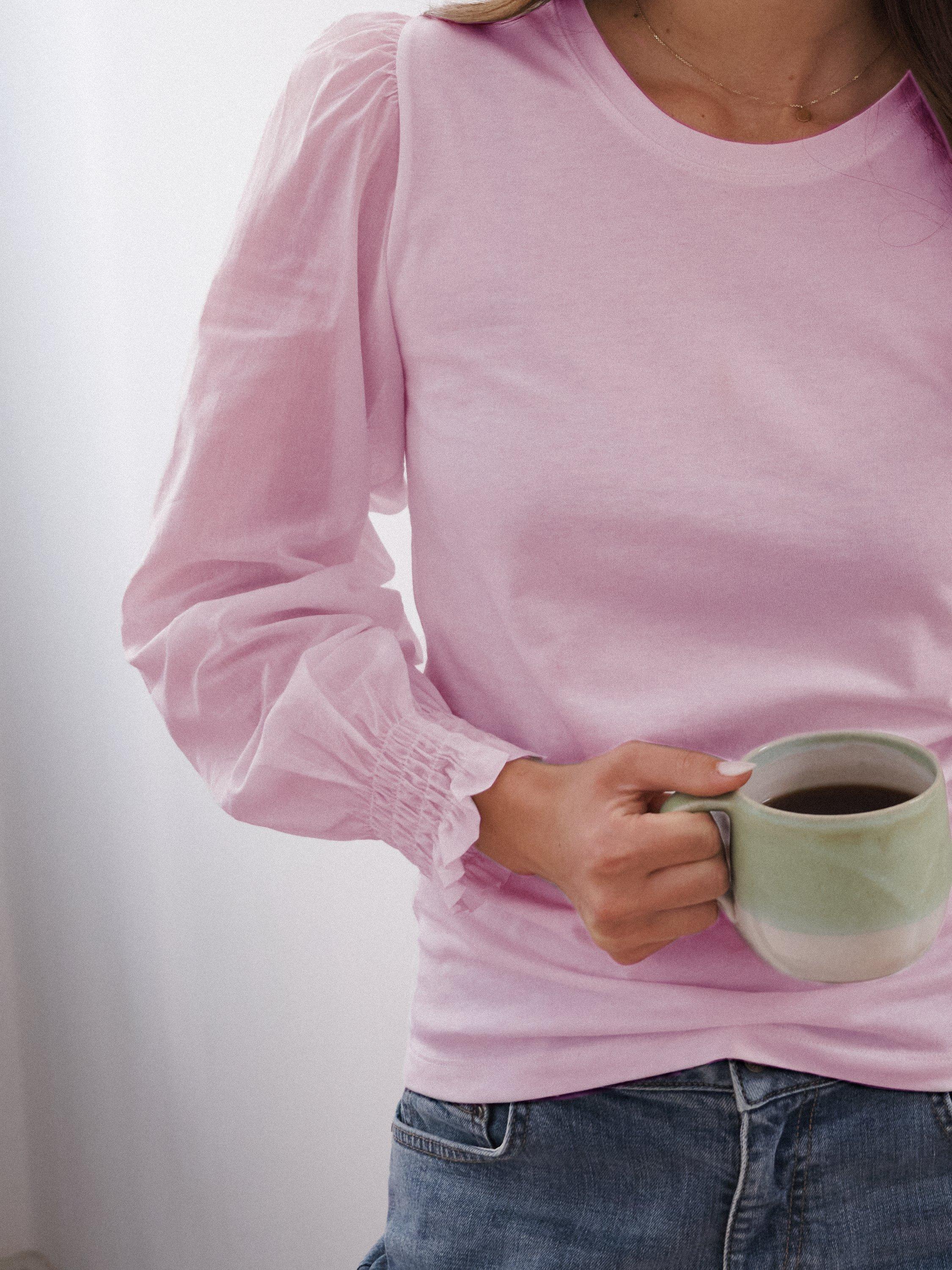 Crafted with 100% cotton, this classic t-shirt body with long cotton sleeves and delicate shirred cuffs will be a new wardrobe staple. This t-shirt will be your perfect piece whether underneath a tank, or solo.