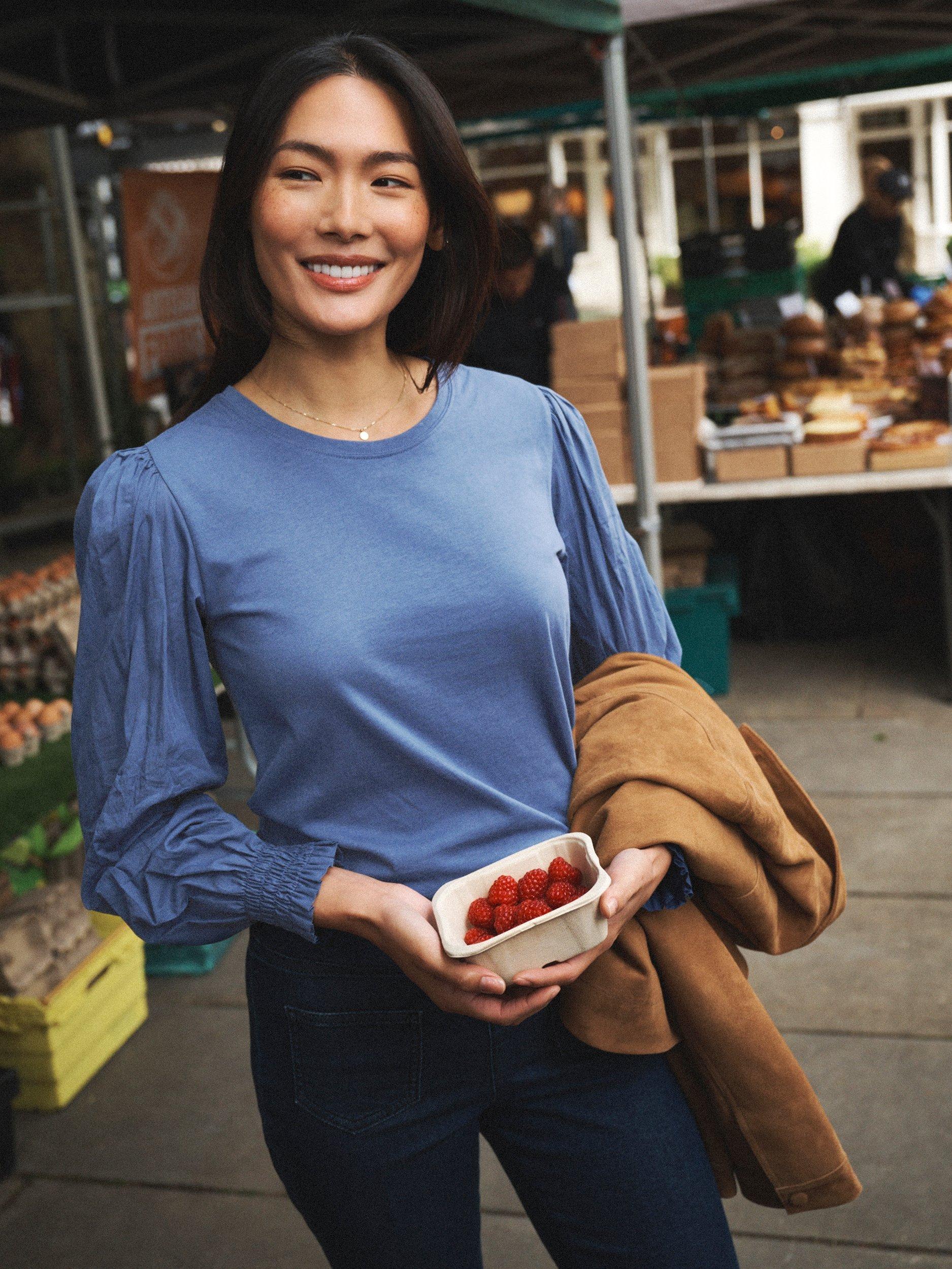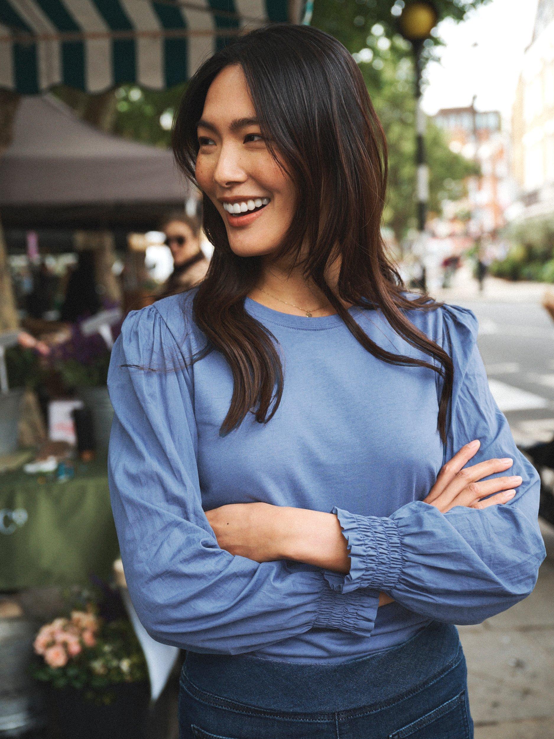 Crafted from cotton, this top features long cotton sleeves and finely shirred cuffs, making it an essential piece for your wardrobe. Whether layered under a tank top or worn on its own, Teddy offers versatile comfort and style.