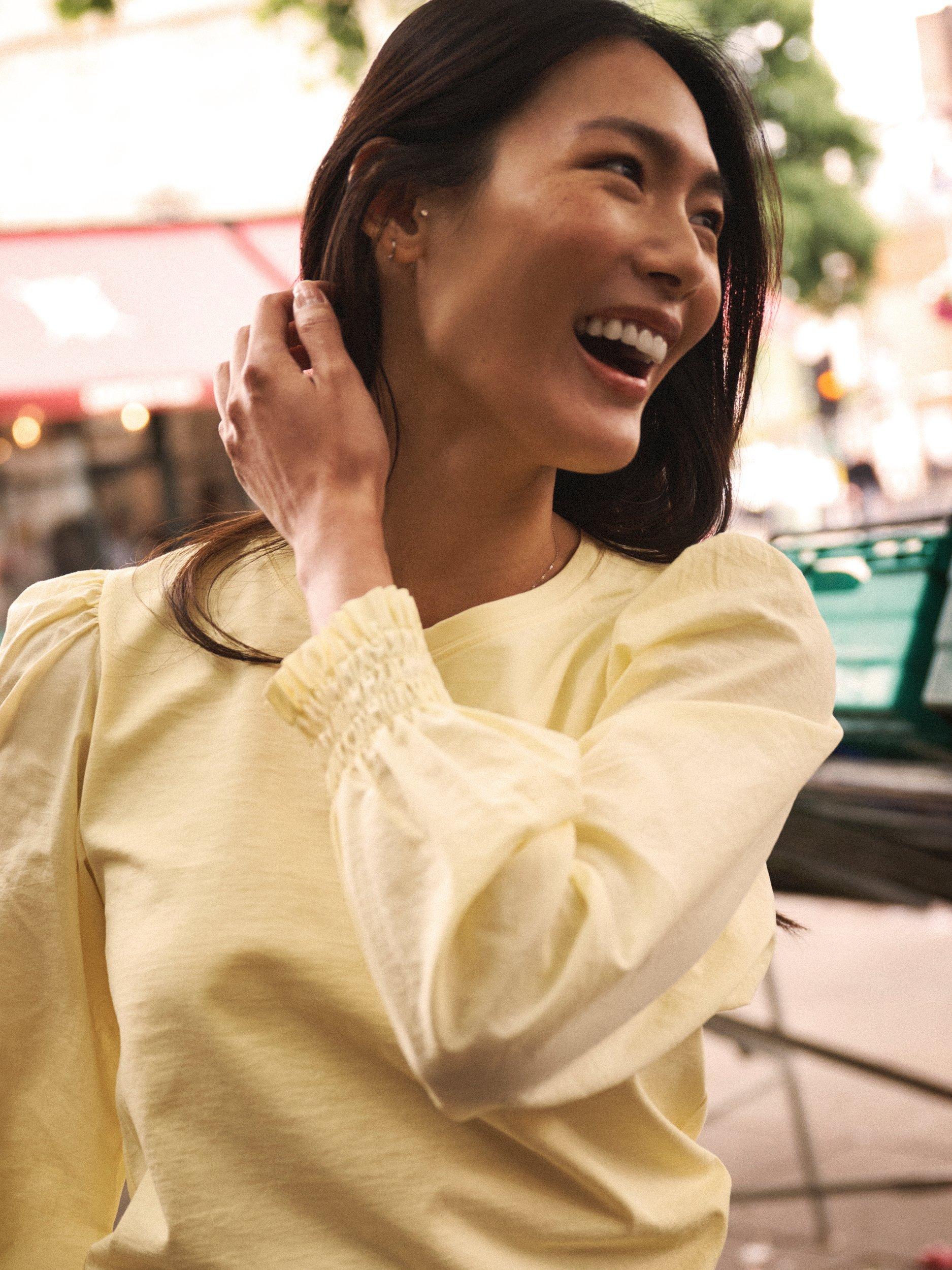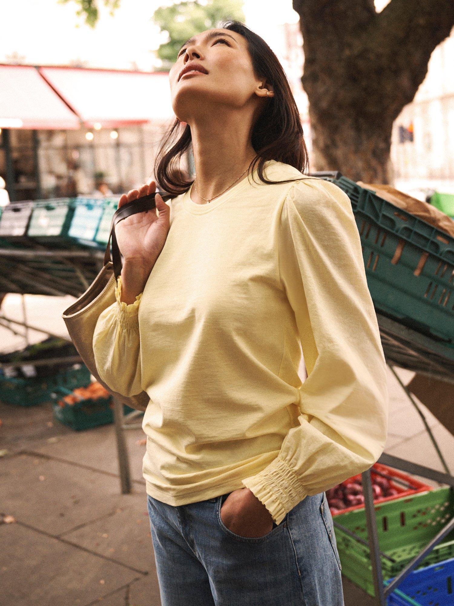 Crafted from cotton, this top features long cotton sleeves and finely shirred cuffs, making it an essential piece for your wardrobe. Whether layered under a tank top or worn on its own, Teddy offers versatile comfort and style.