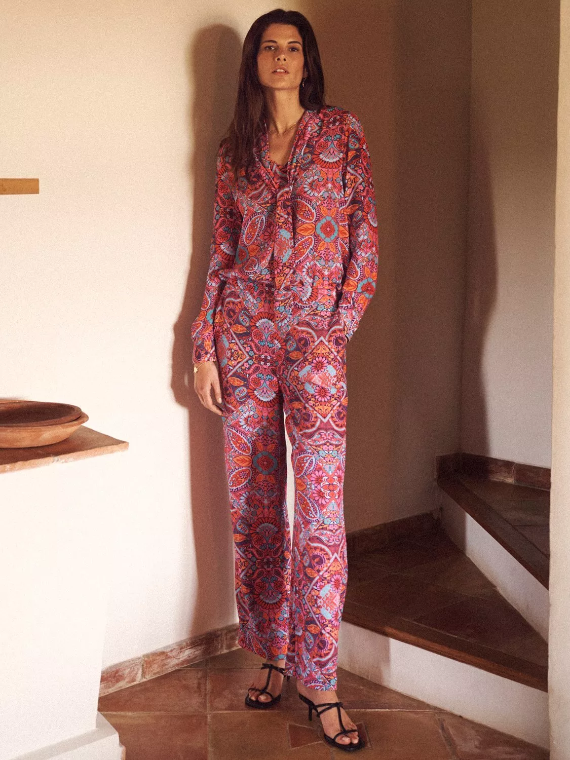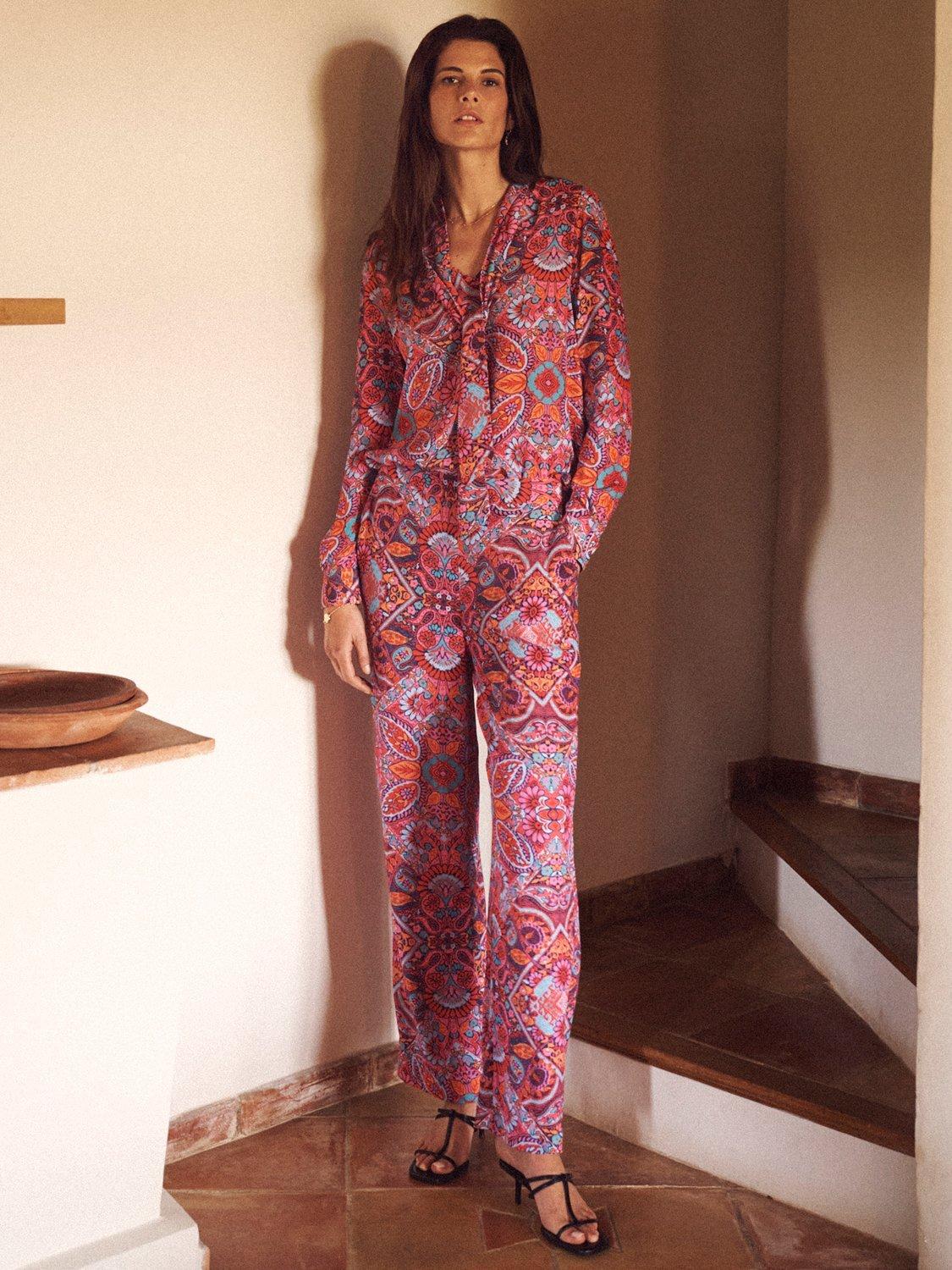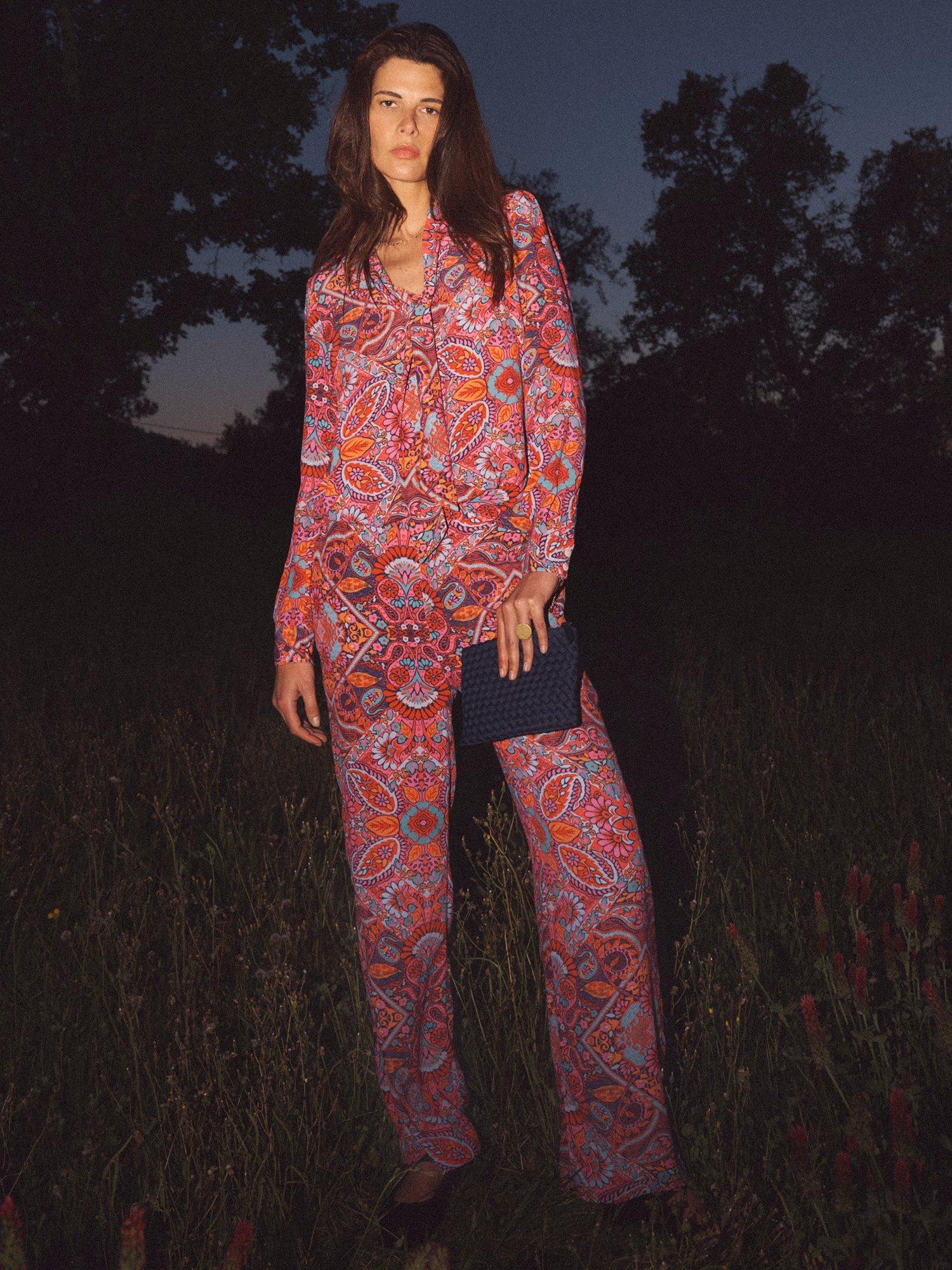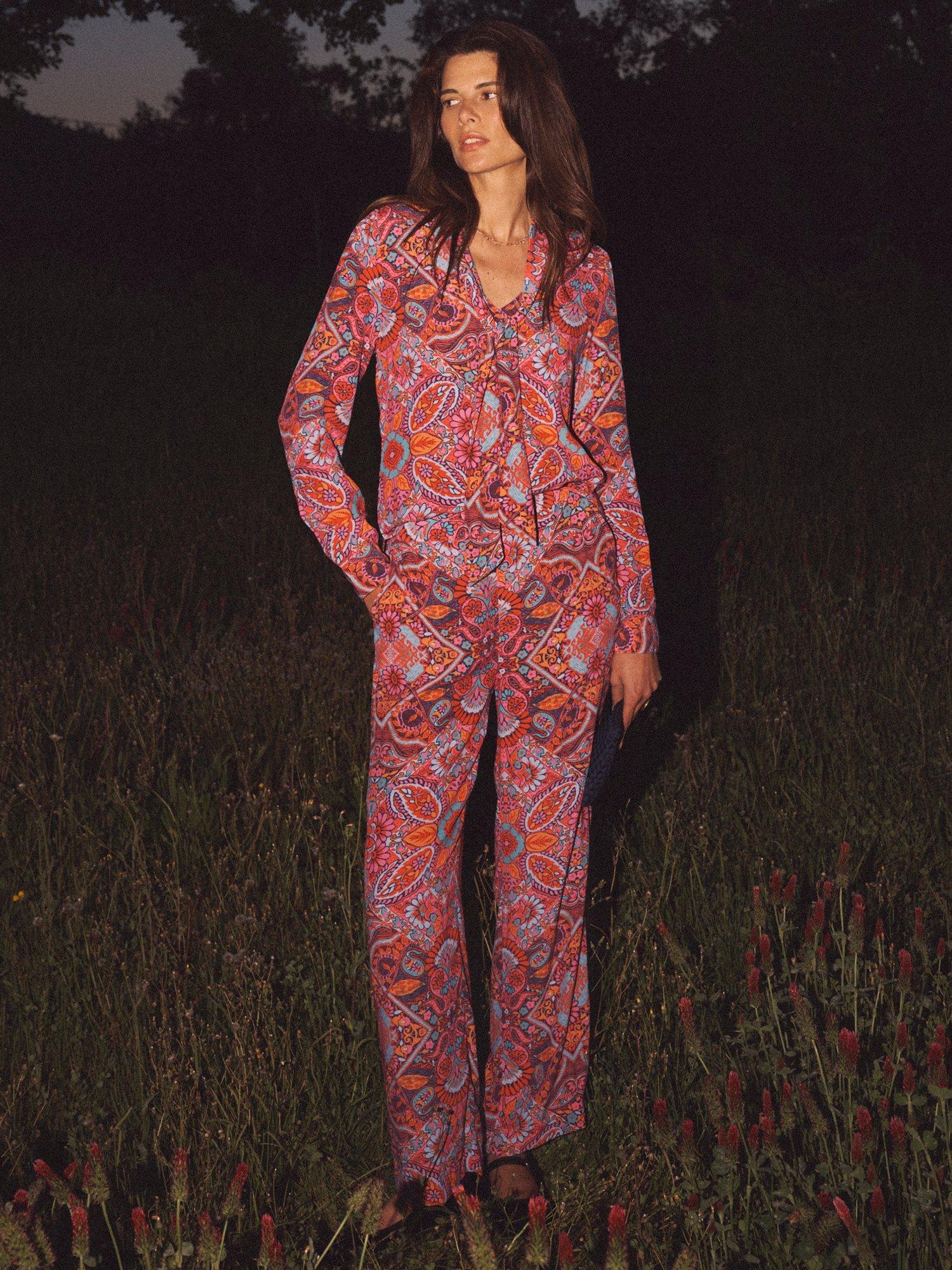 A square paisley print for Autumn, in the classic Thea shape. A palazzo pant that works as your party partner, AND a home comfort. In a wide-leg silhouette, Thea is cut from a soft viscose, has a neat flat front waistband and an elasticated back.