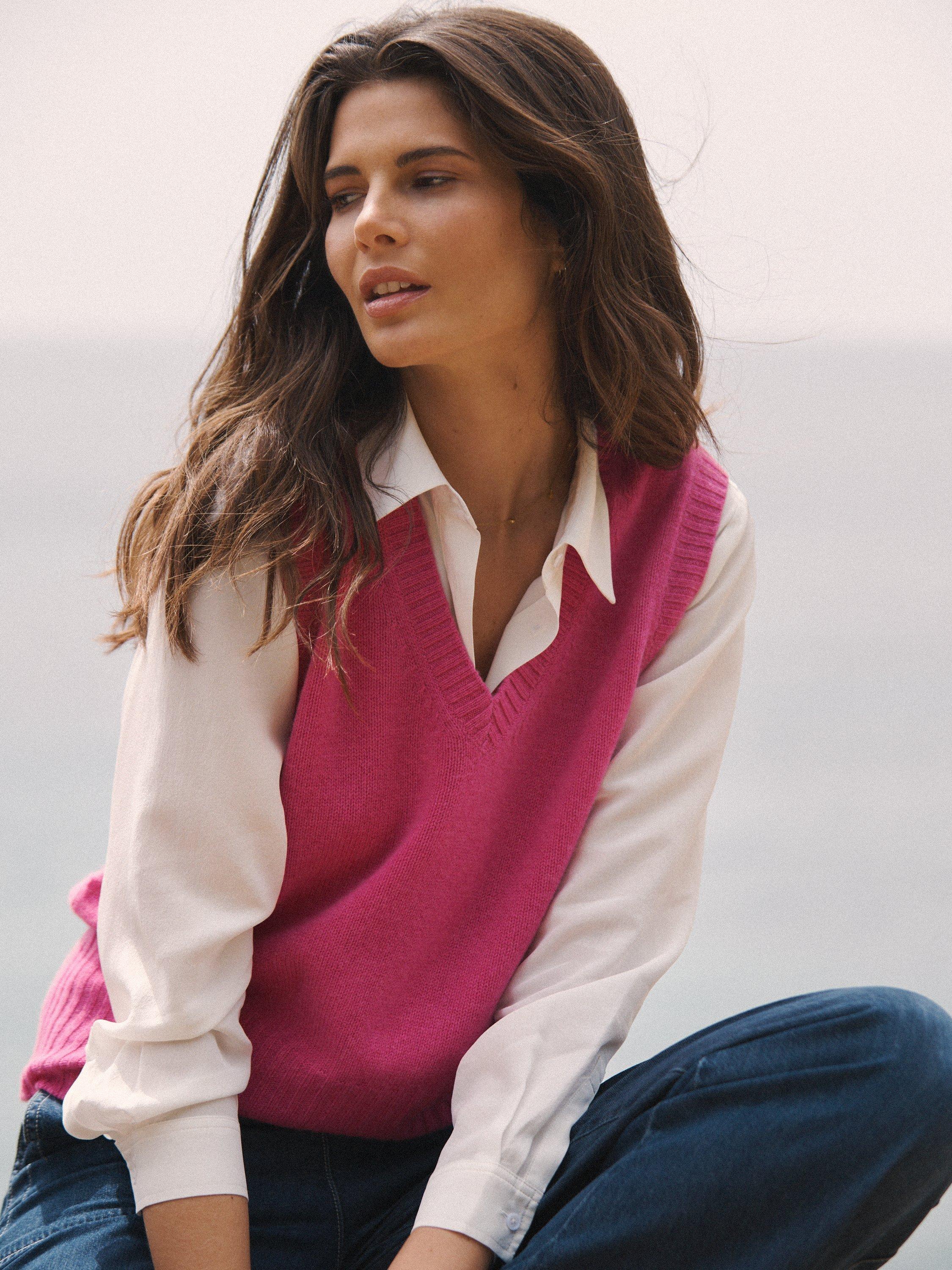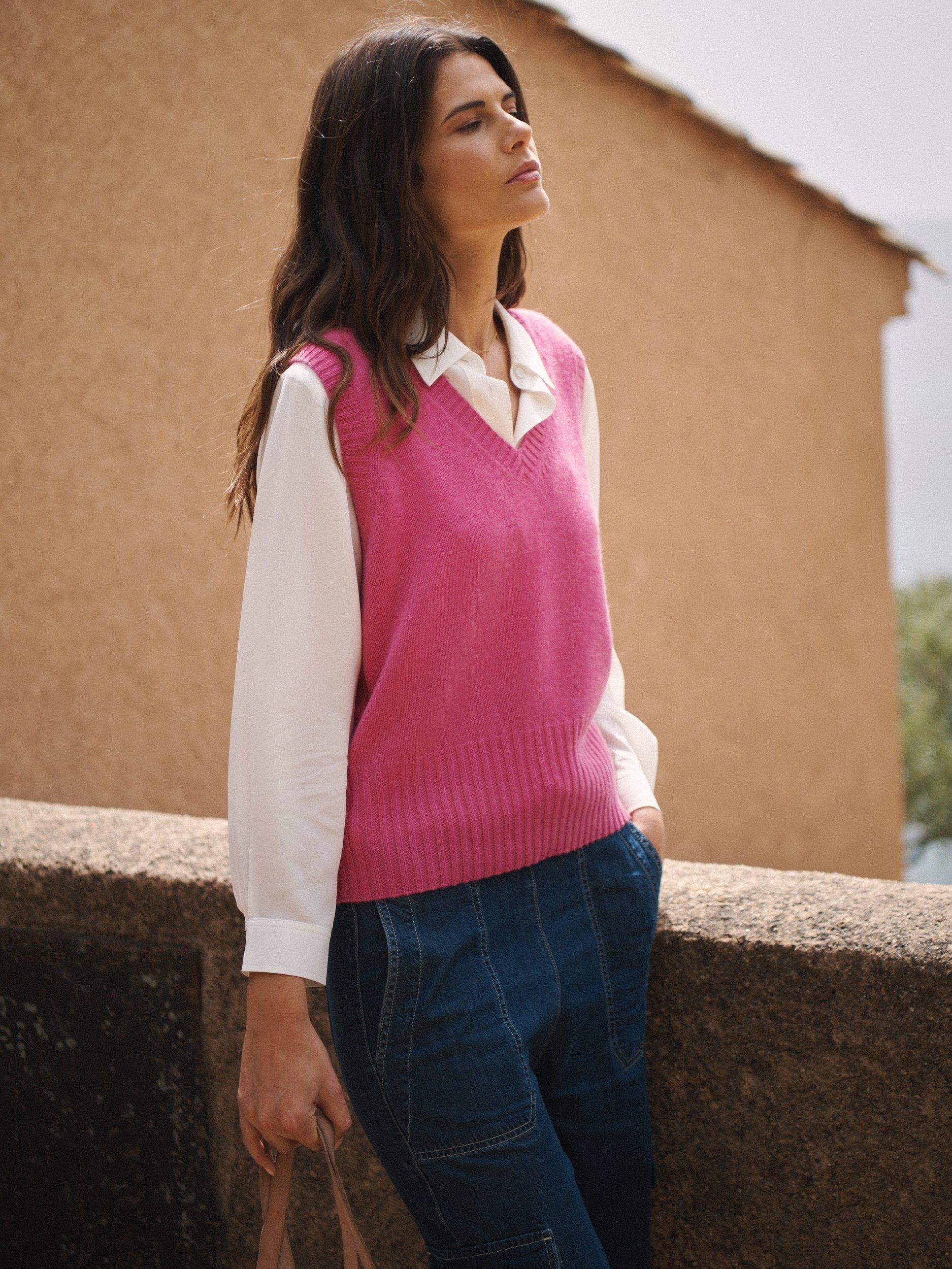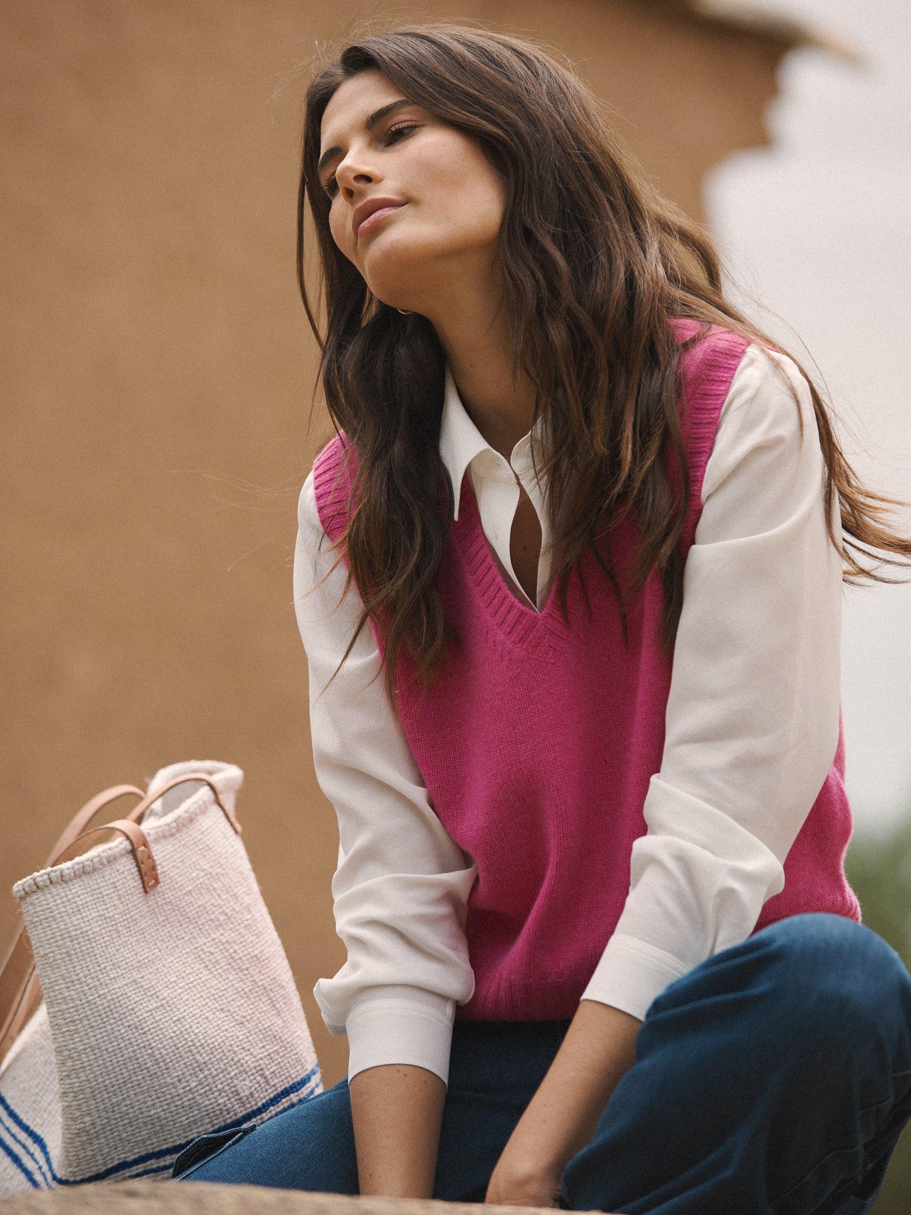 Expertly crafted from luxurious 100% cashmere, NRBY's Vee cashmere tank is the perfect combination of quiet chic and comfort. The deep ribbed hem gently shapes the silhouette, offering a soft and cosy fit.