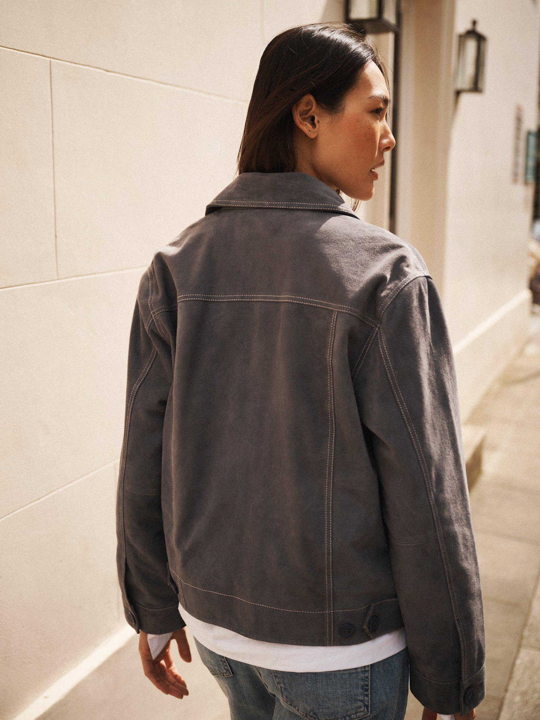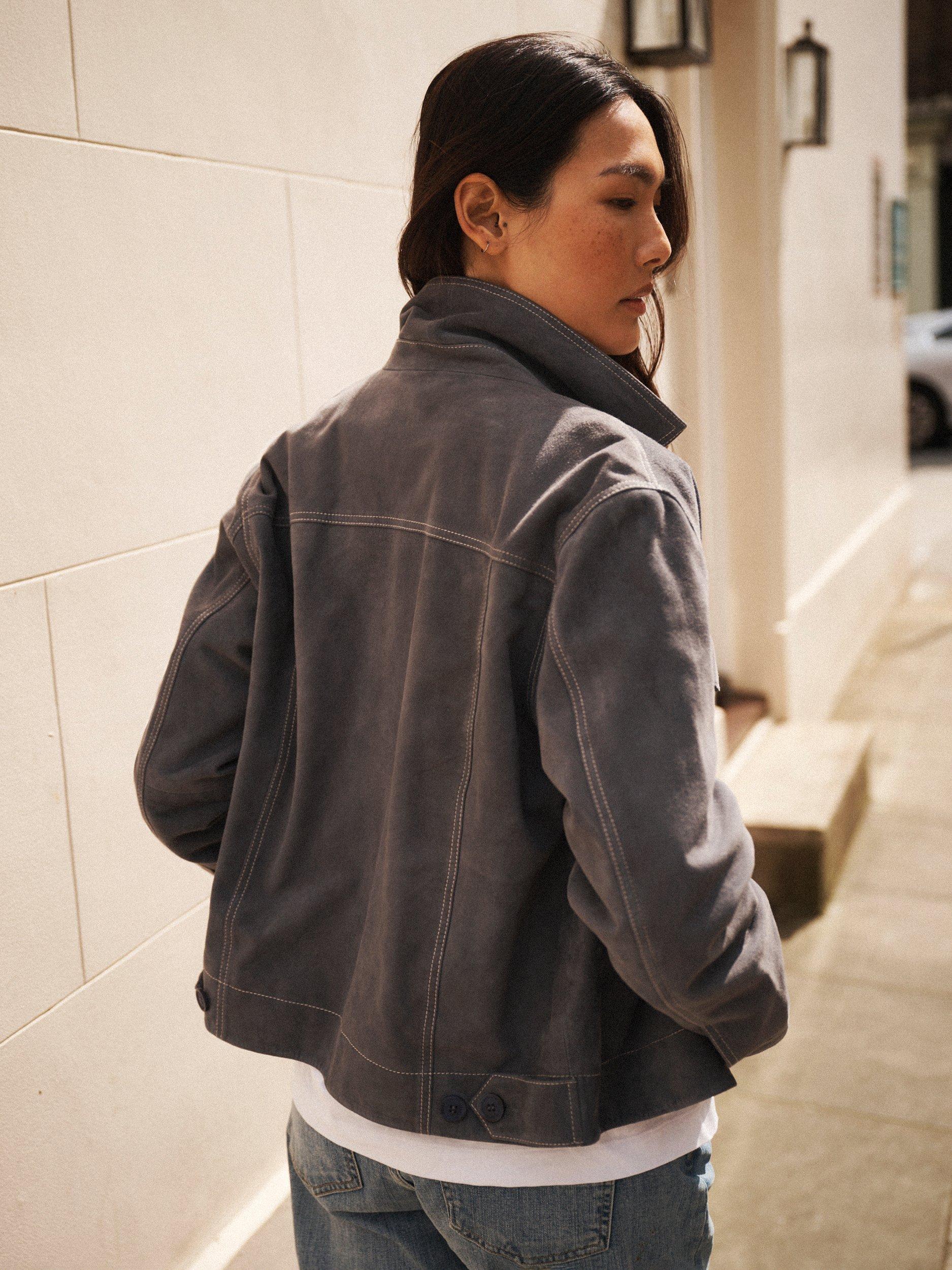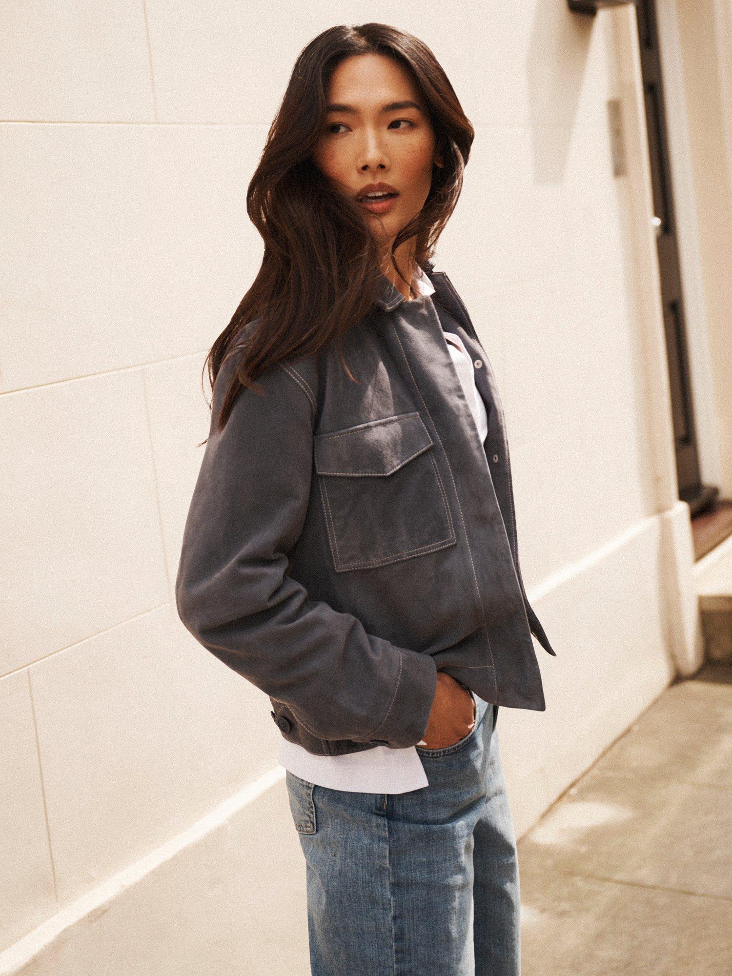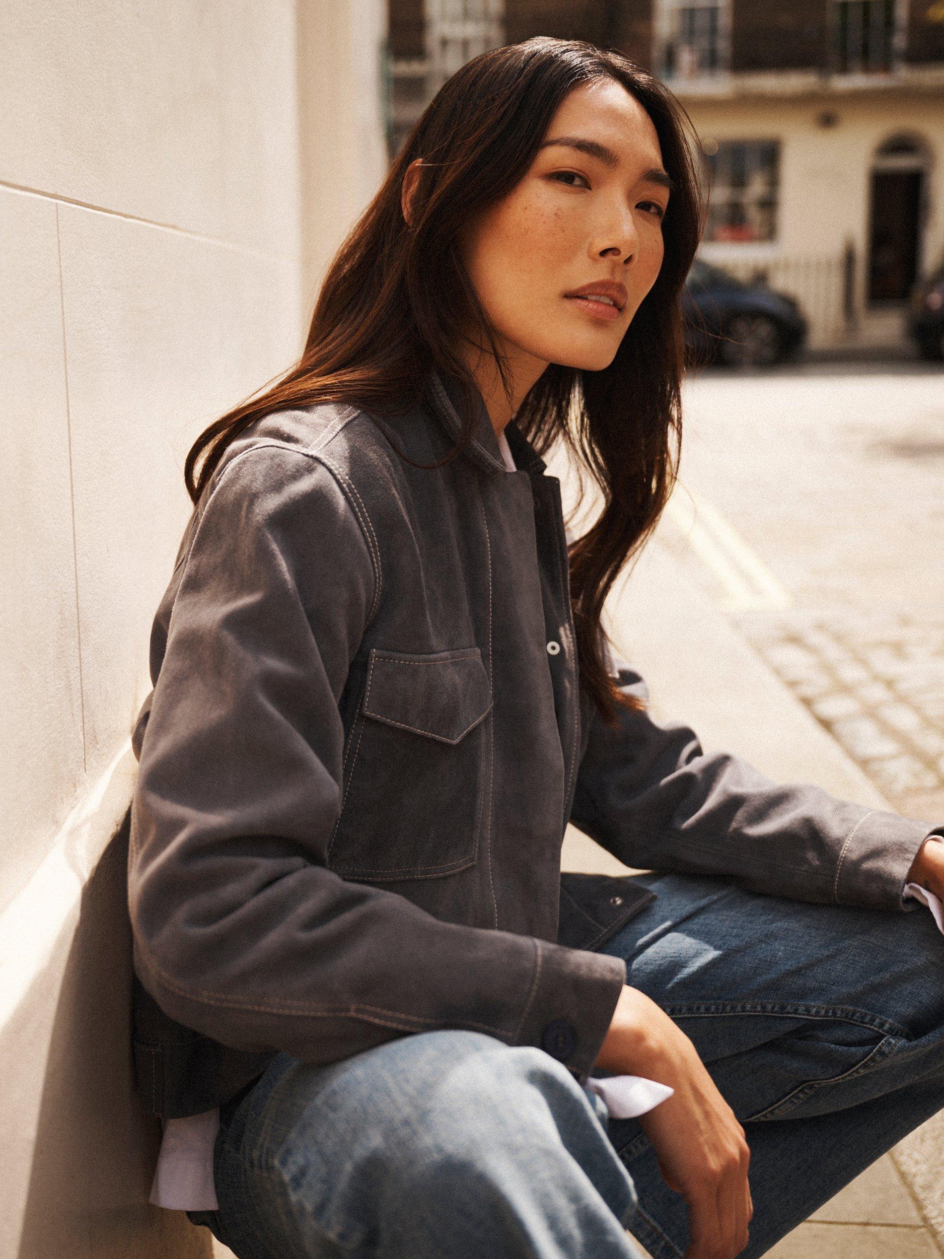 Tailored in buttery-soft suede, Vilette has contrast topstitching, practical front pockets, and a relaxed silhouette. It’s designed for everyday ease with a touch of cool.