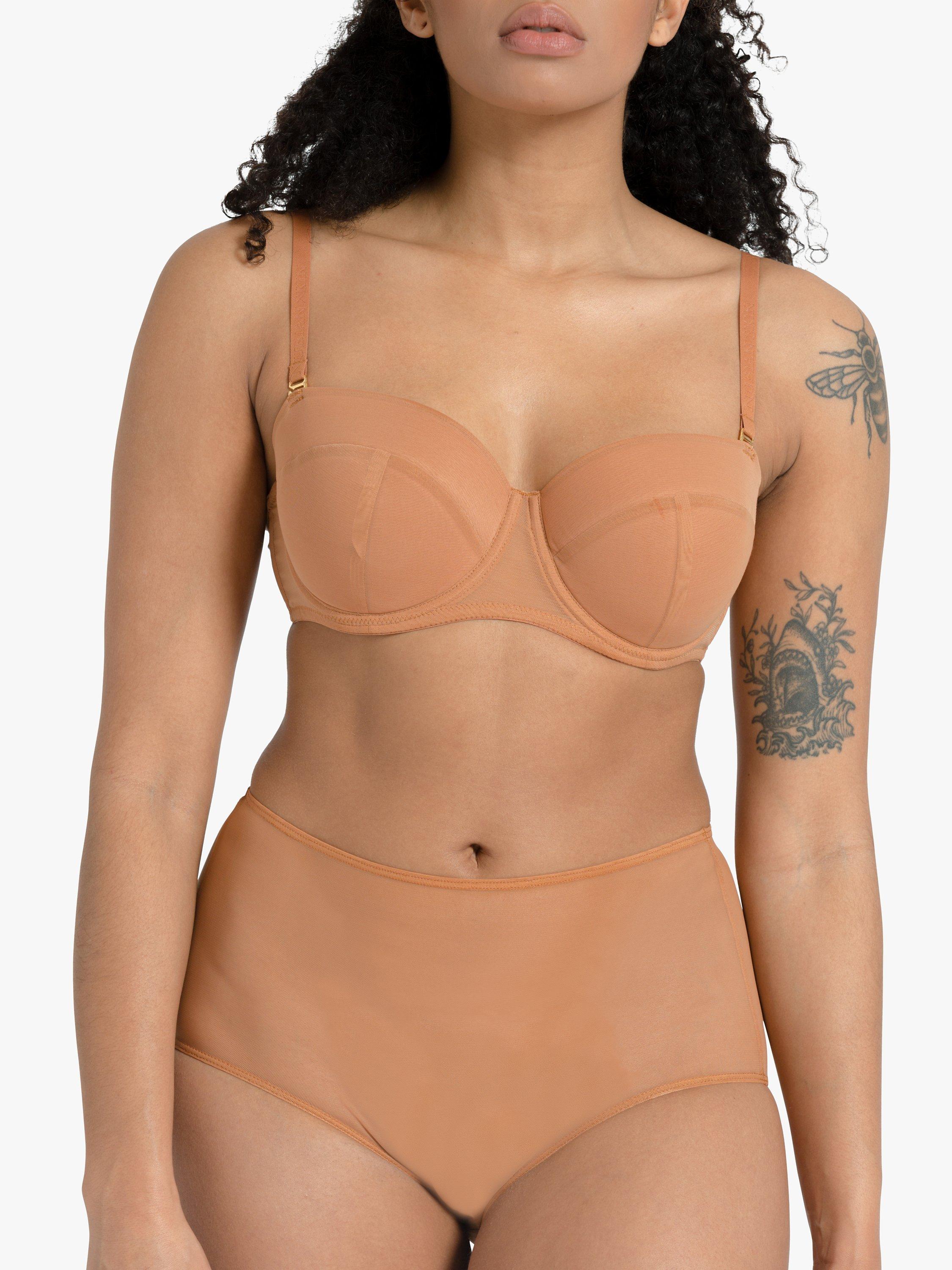 The Nubian Skin mesh multiway bra is built to support your shape and skin-tone. This bra features a light foam lining and a three-part cup with adjustable straps and hook-and-eye closures. The band is lined with silicon strips to provide a secure fit, particularly when worn as a strapless. So comfortable you'll want to wear it every day. Pair with your choice of matching briefs from the collection.