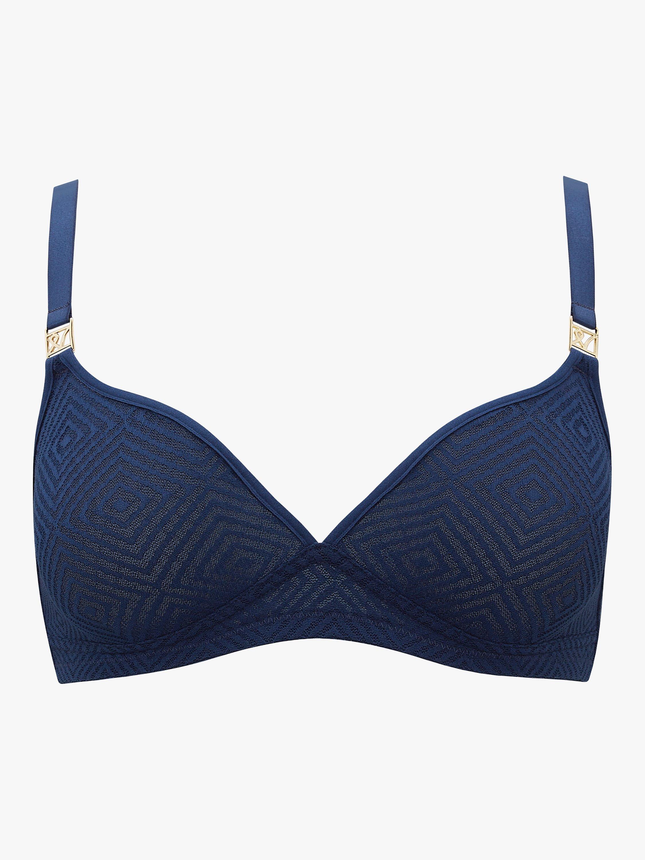 Simple, stylish, non-wired support in signature geometric lace. This iconic non-wired bralette has been created with super soft sheer recycled Italian lace. With our signature geometric pattern, inspired by Art Deco.