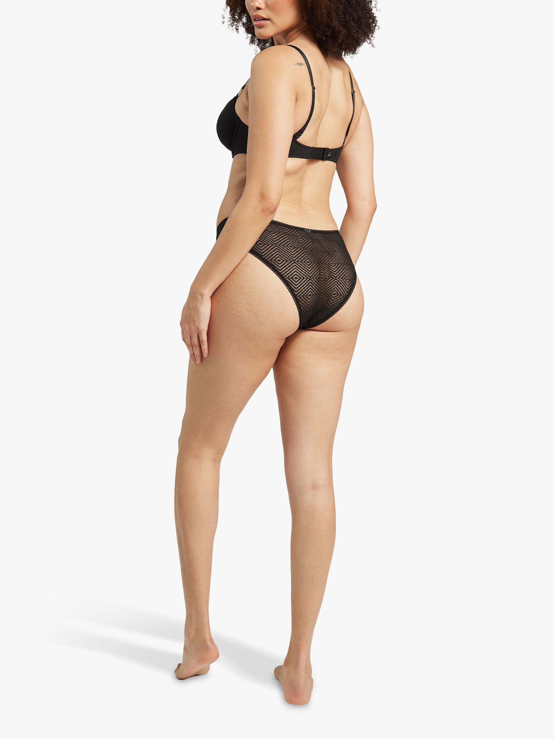 An everyday silhouette that sits high on the waist with a high leg for a flattering v-shape cut on the back. Made with soft recycled lace and in a signature geometric pattern this high-leg brief offers all-day comfort.