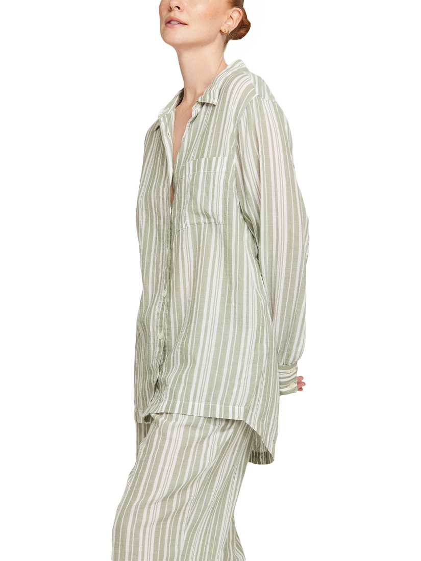 A relaxed classic silhouette crafted in 100% organic cotton with mother-of-pearl buttons and a lightweight finish. You'll never have to steal his shirt again.